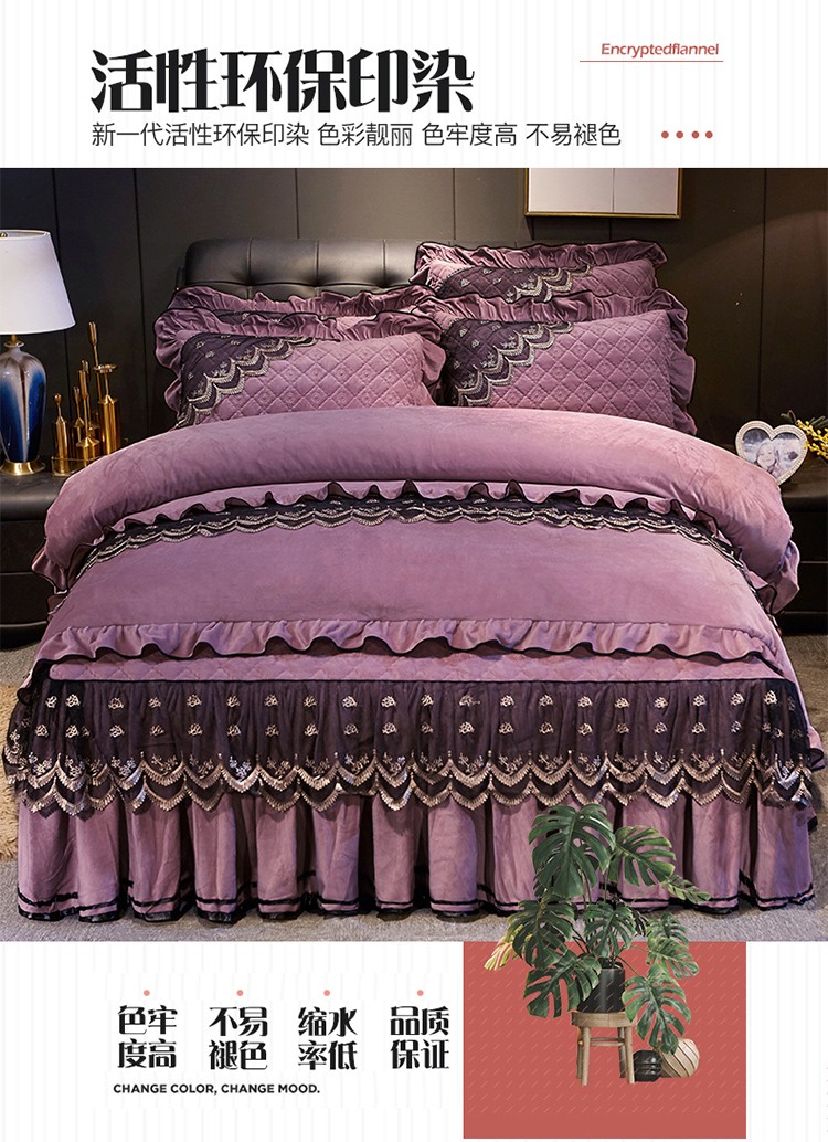 (总)网红馆(ck家纺) 2025新款亲肤舒适牛奶绒蕾丝边床裙四件套-秘密花园,秘密花园-粉色,秘密花园-卡其,秘密花园-米色,秘密花园-紫色