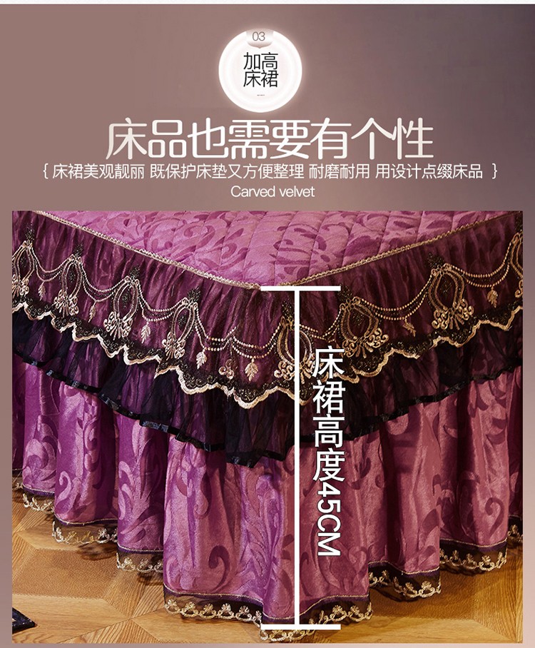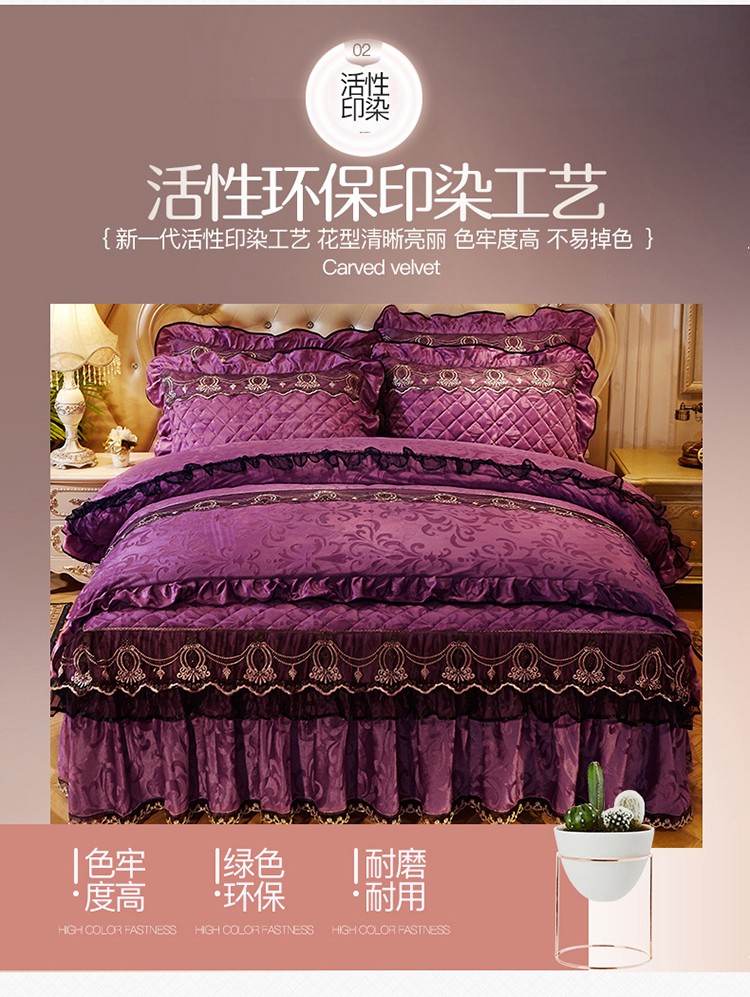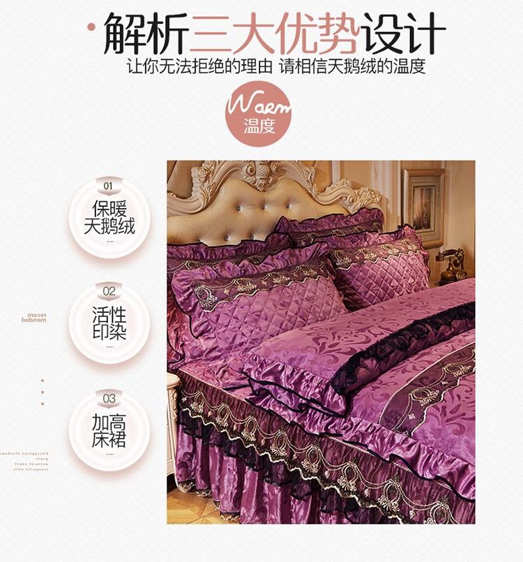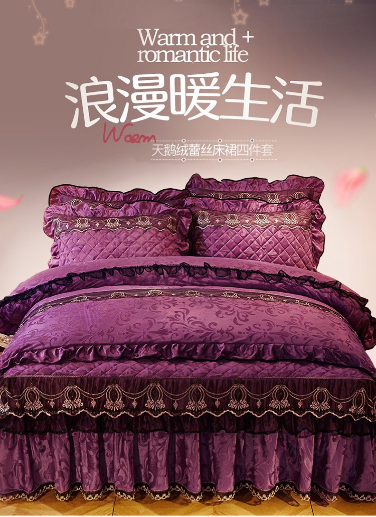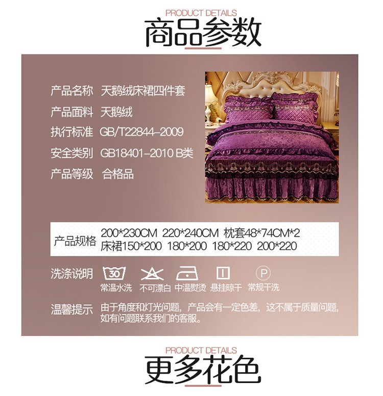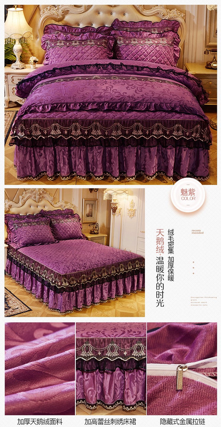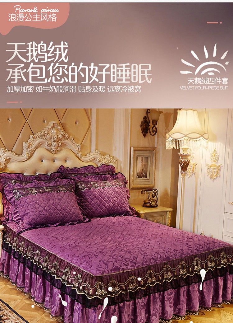 商品名称:网红馆 2025新款梦庭花开天鹅绒床裙四件套 魅紫