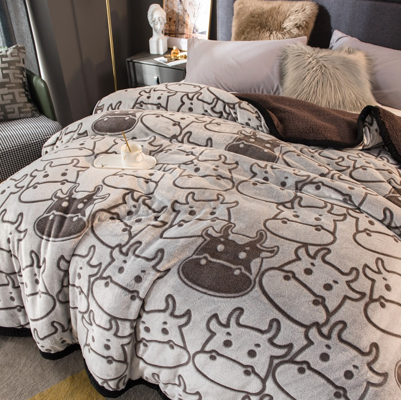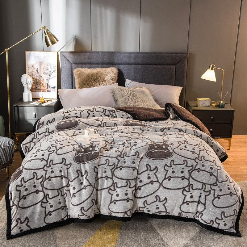 新印象 2021新款加厚复合羊羔绒毯 犇牛冲天-咖
