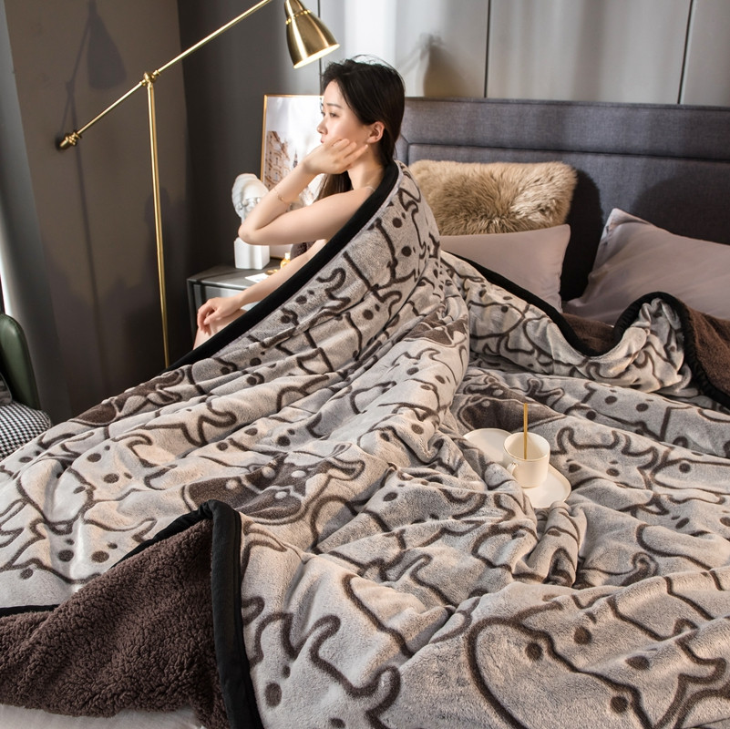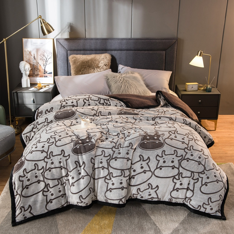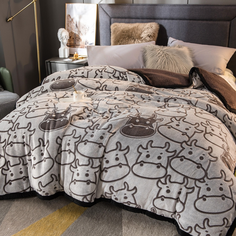 商品名称:新印象 2021新款加厚复合羊羔绒毯 犇牛冲天-咖