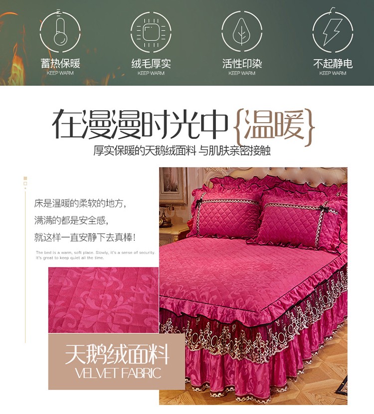 商品名称:网红馆 2025新款梦醉奢华天鹅绒床裙四件套 玫红