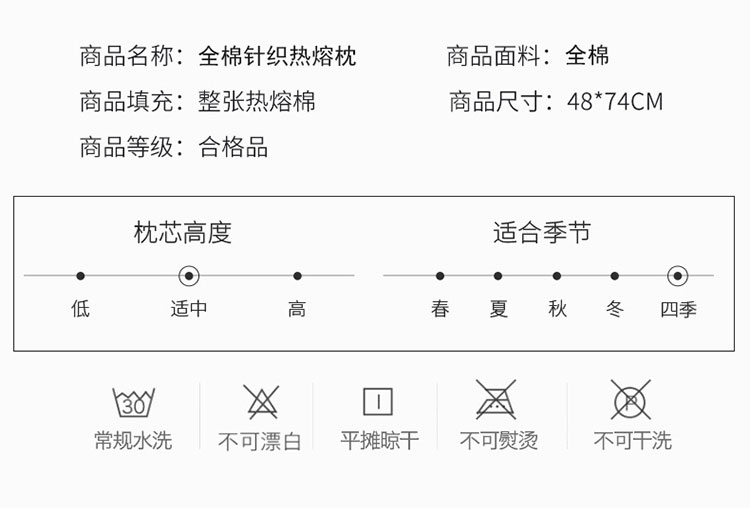当前位置: 91家纺网 > 商品网购 > 枕头/枕芯/保健枕/颈椎枕 > 普通枕芯 > 枕之坊 2021新款全棉针织热熔枕48×74cm 白色