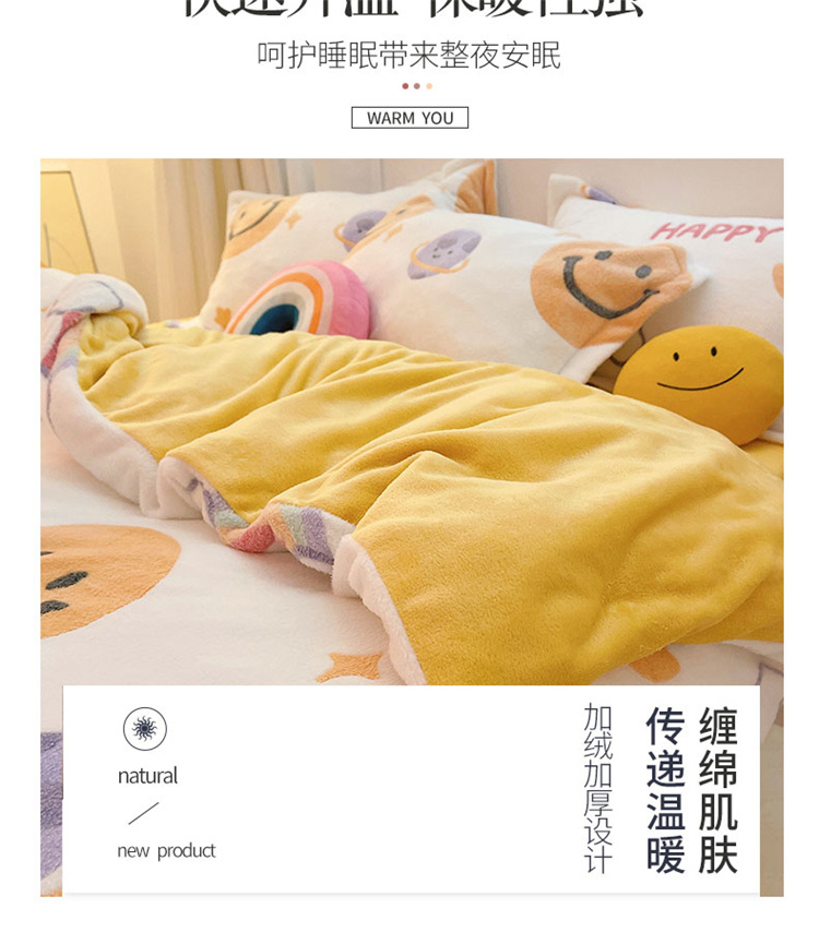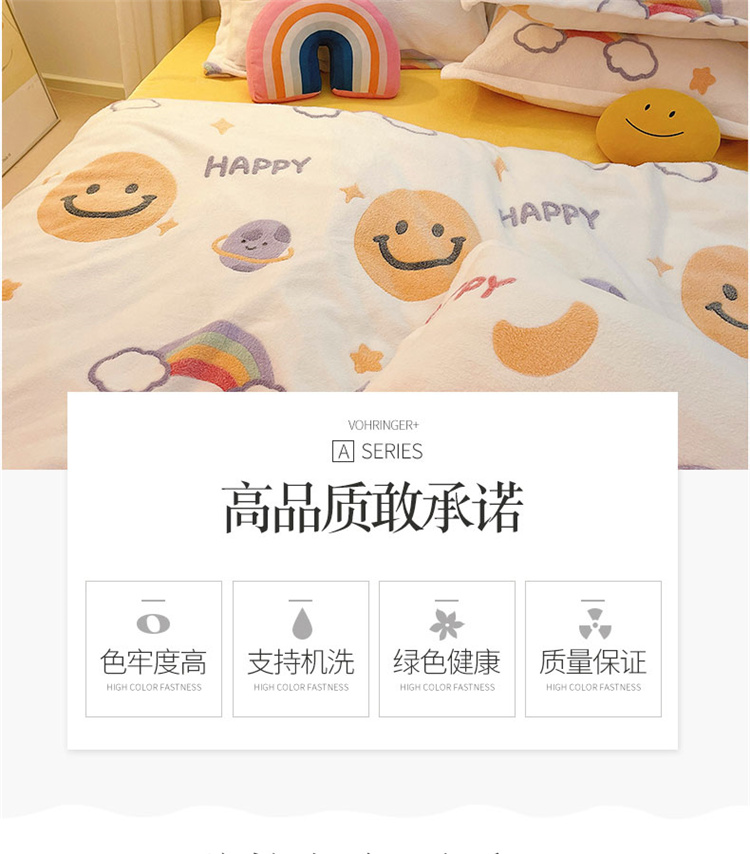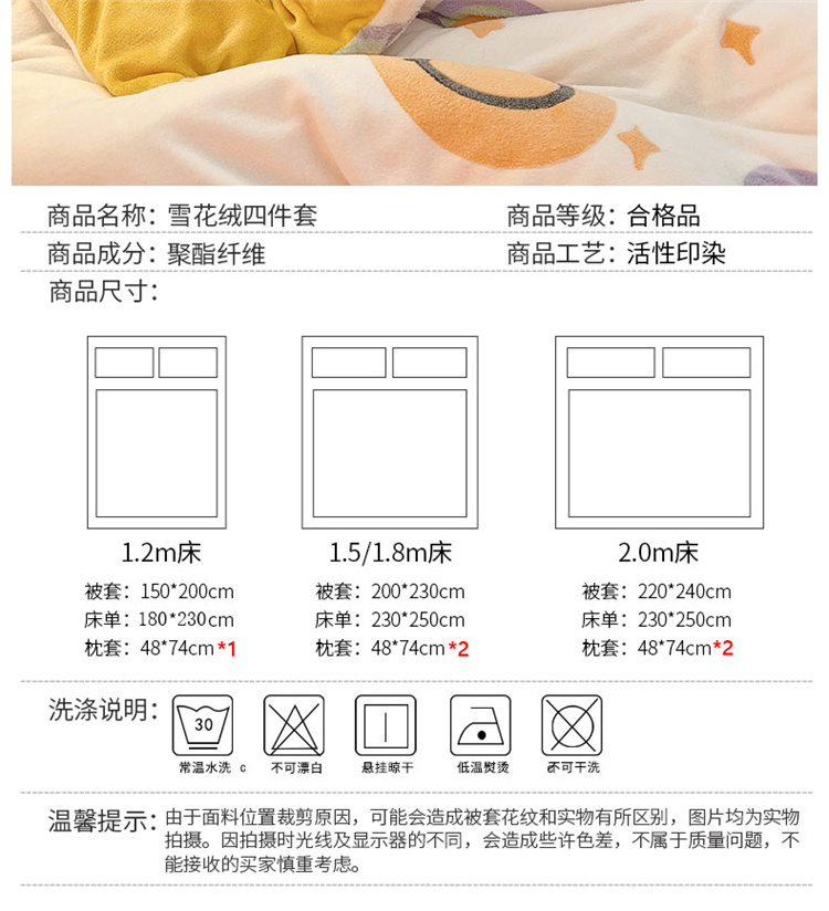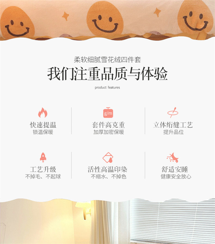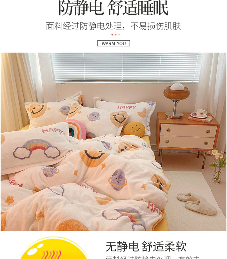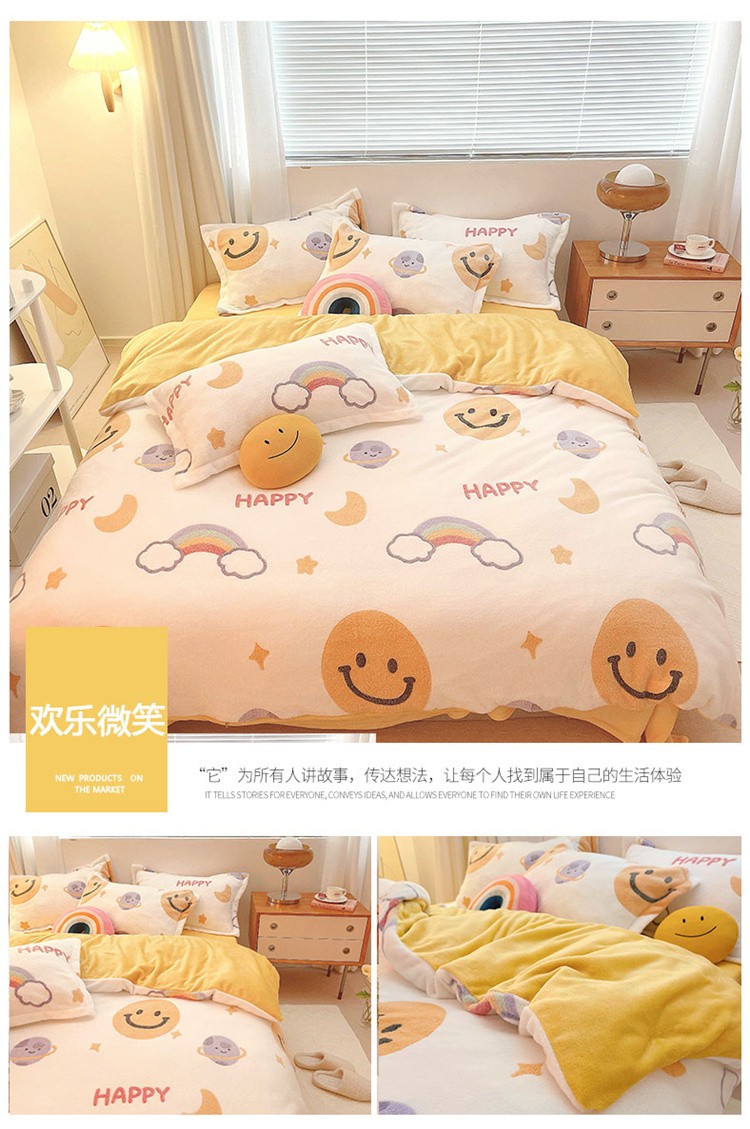 当前位置: 91家纺网 > 商品网购 > 床品套件 > 四件套 > 磨绒四件套 > 川悦生活 2021新款立体雪花绒四件套直播供货 欢乐微笑