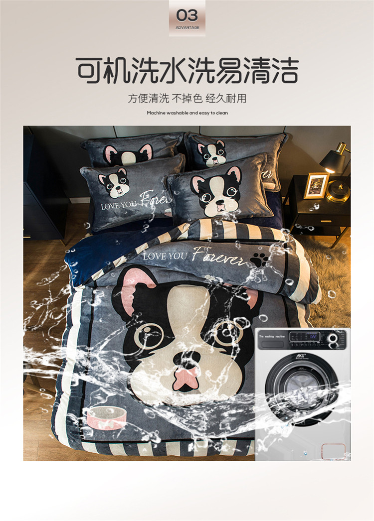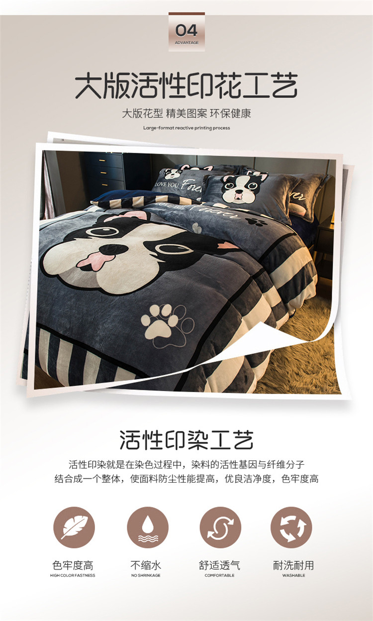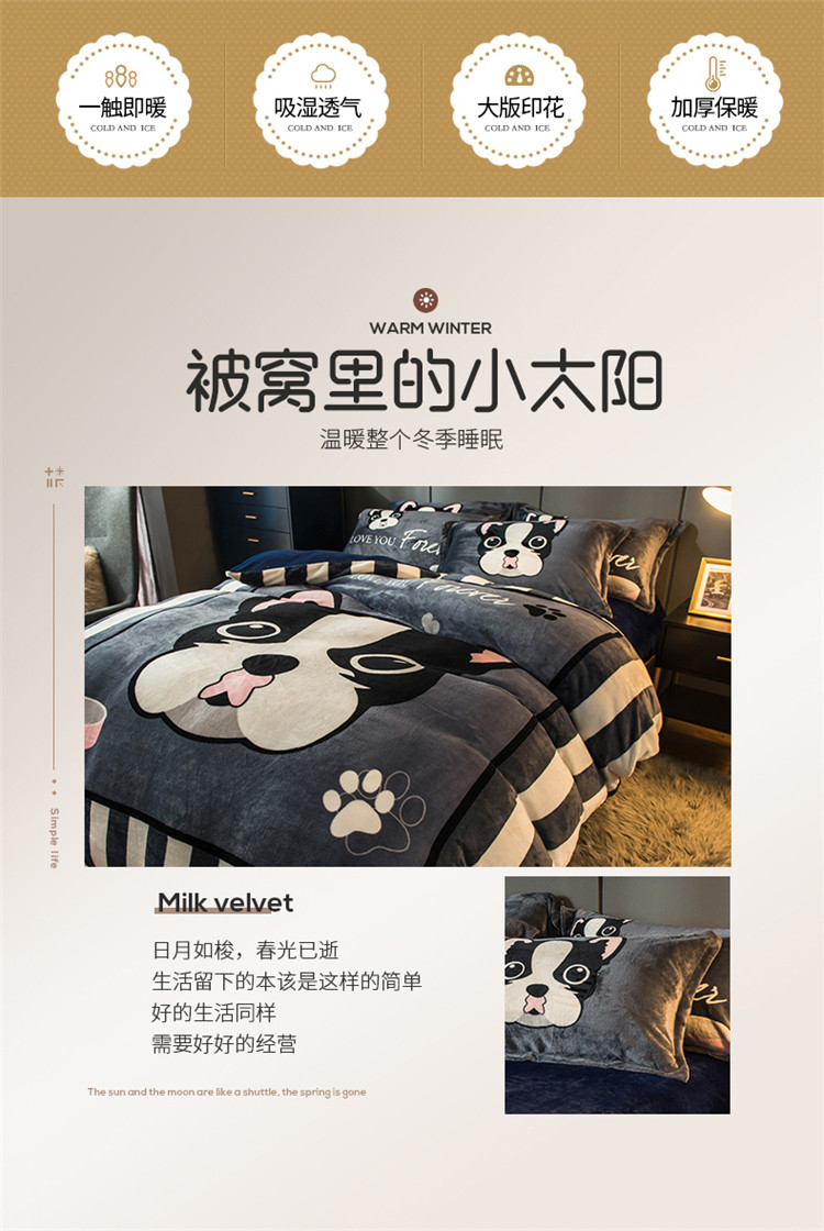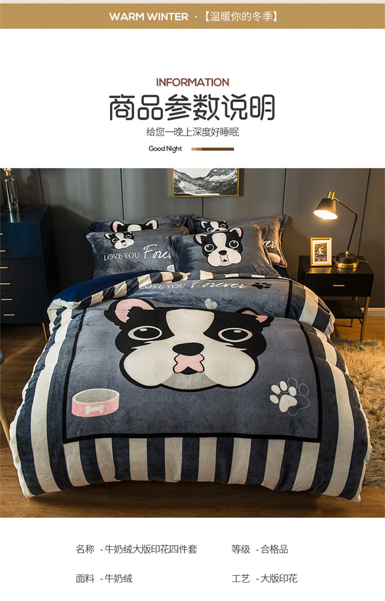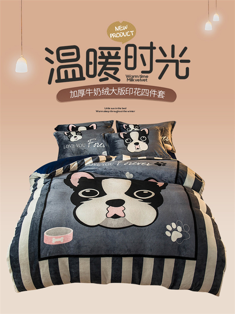商品名称:慕尚 2022新款北欧牛奶绒卡通大版四件套棚拍图 绅士狗