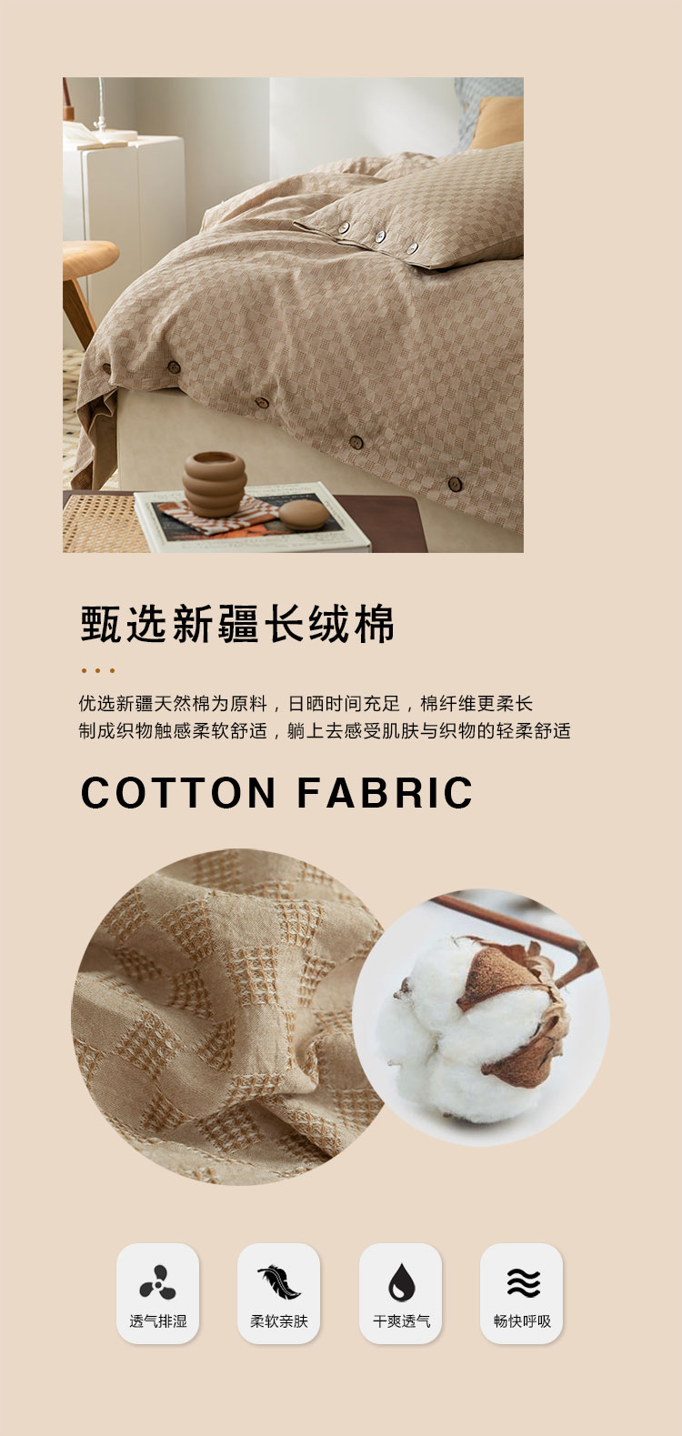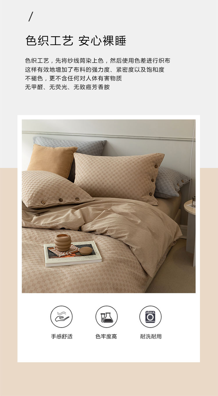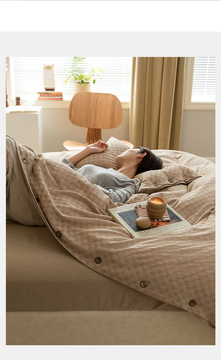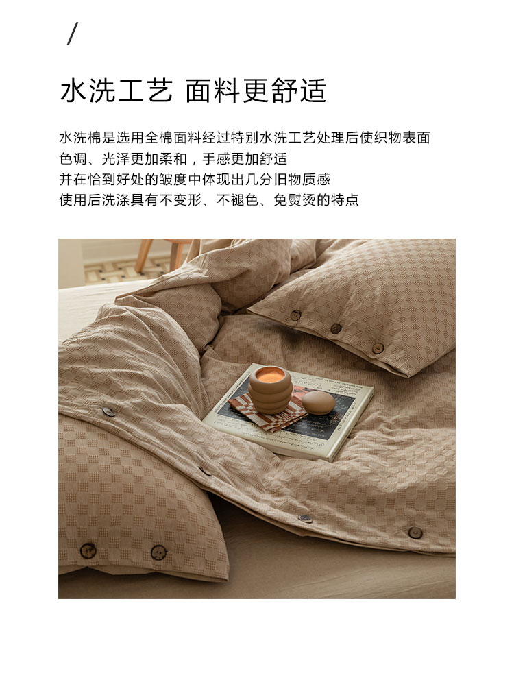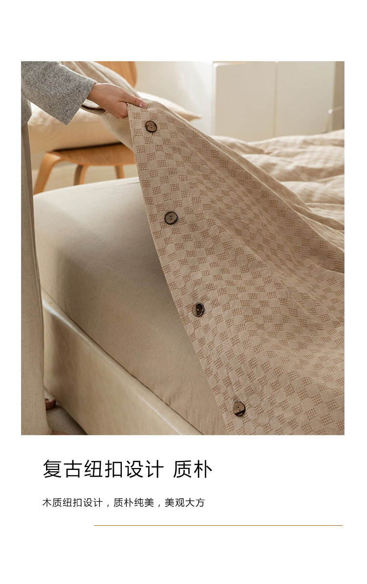 当前位置: 91家纺网 > 商品网购 > 床品套件 > 四件套 > 全棉普通四件套 > 华超针织 2021新款棋盘华夫格四件套 华夫卡其