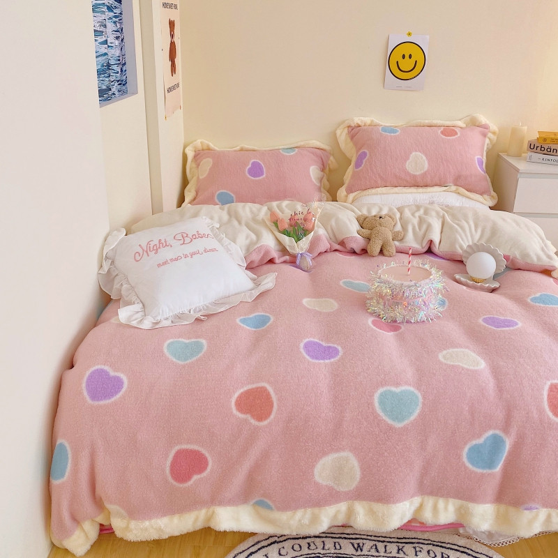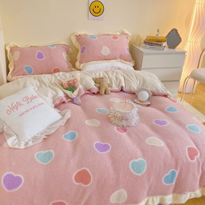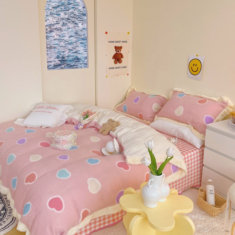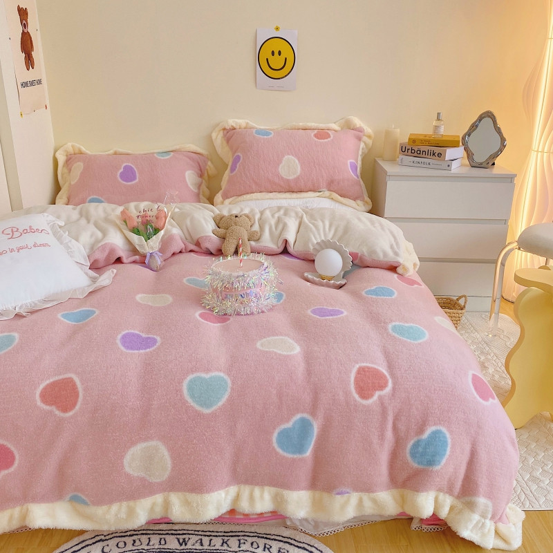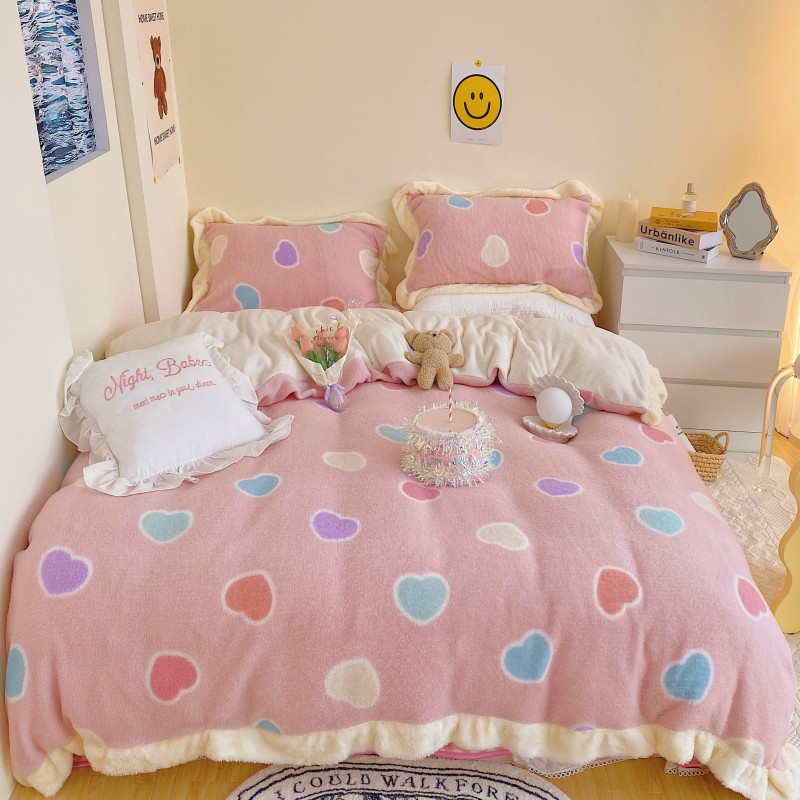 顾里家纺 新款A版泰迪羊羔绒B版牛奶绒ins风韩国四件套 少女心