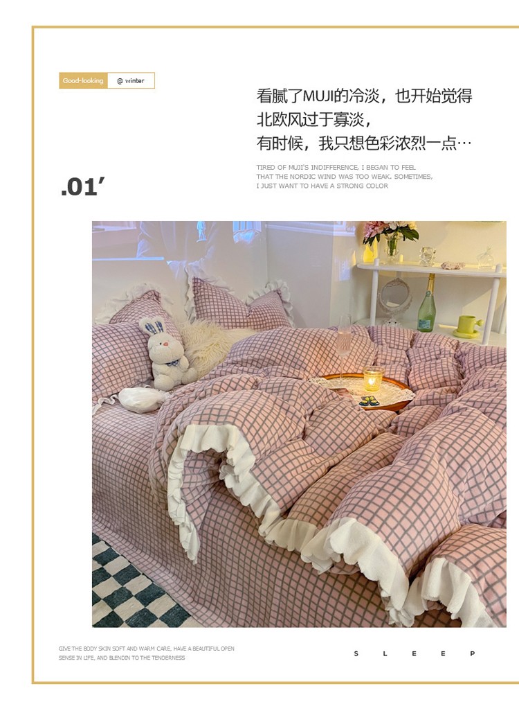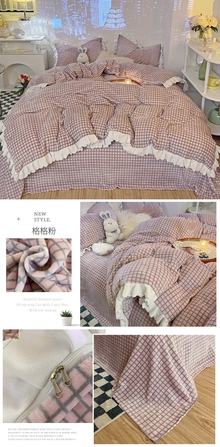 商品名称:千朵 2021新款韩版牛奶绒保暖四件套 格格粉