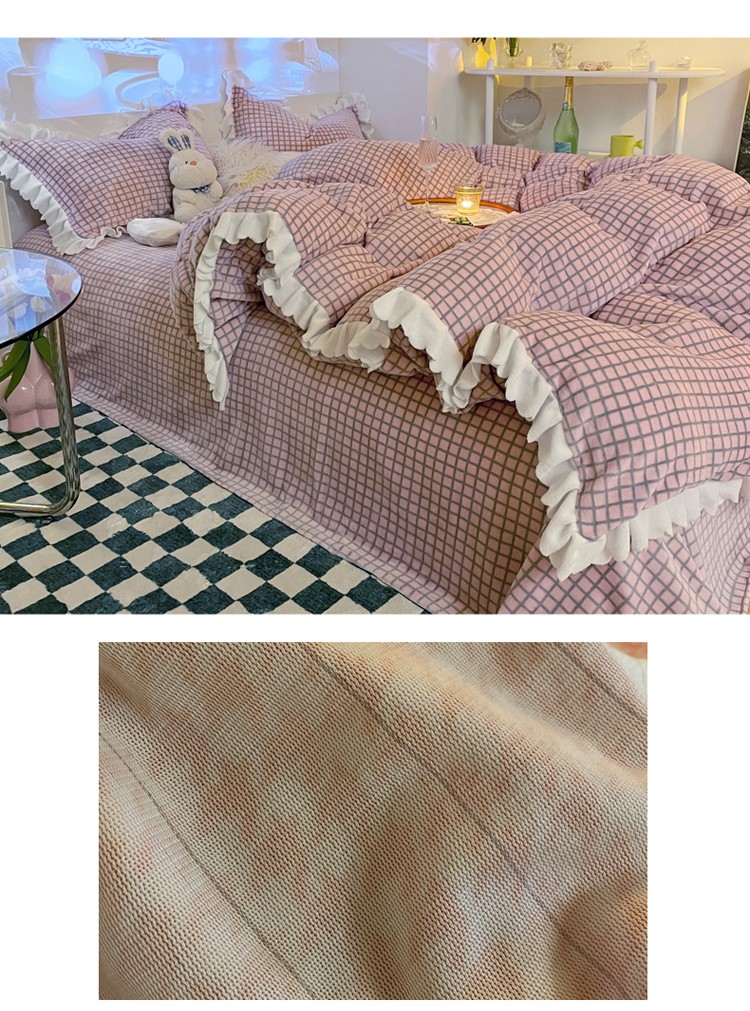 千朵 2021新款韩版牛奶绒保暖四件套 格格粉