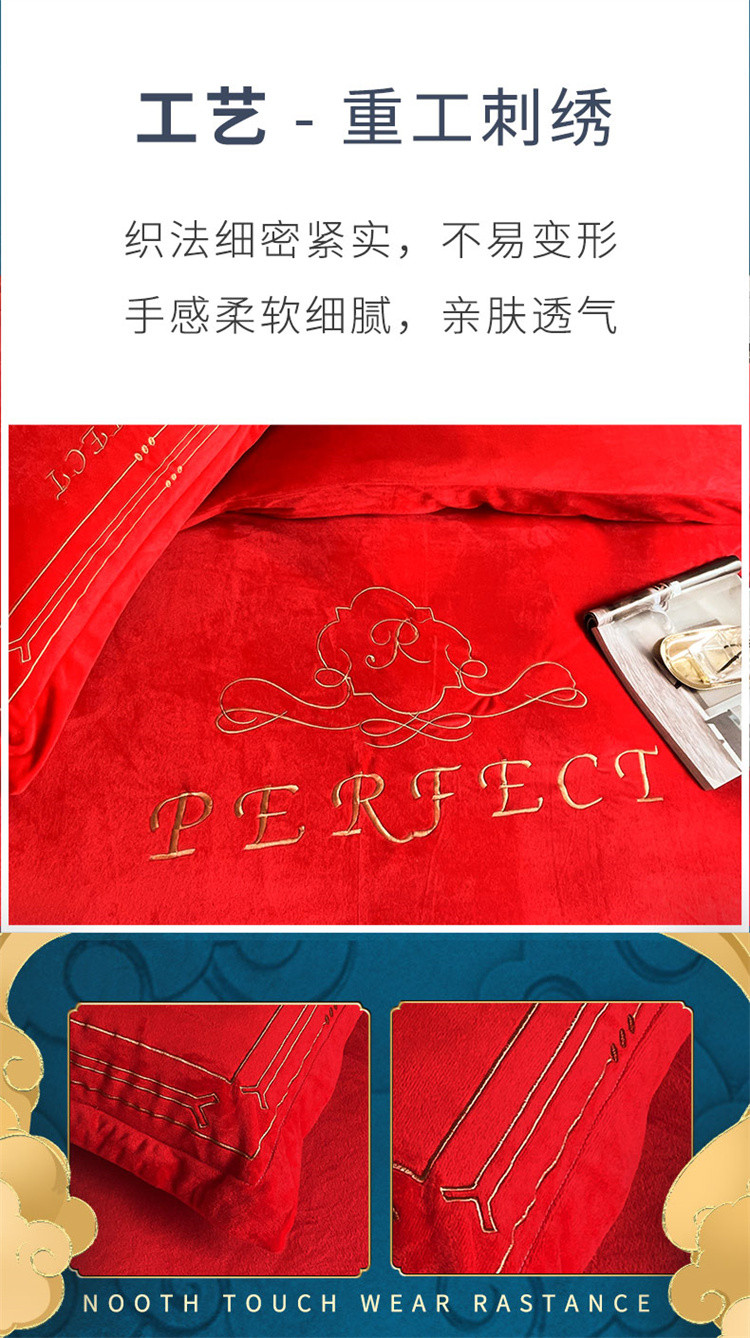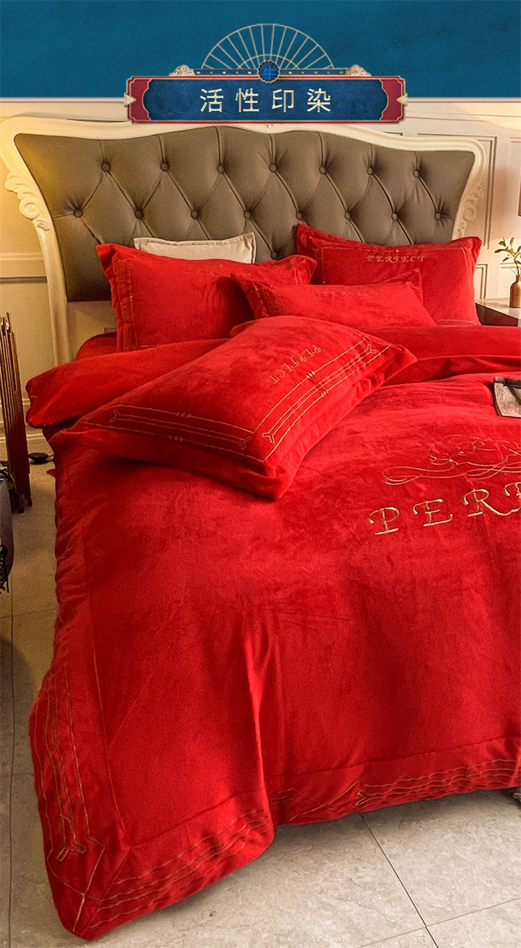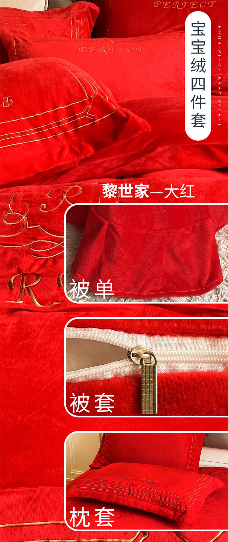 铠畅 2021新款巴黎世家宝宝绒刺绣四件套 黎世家大红