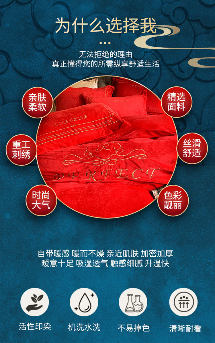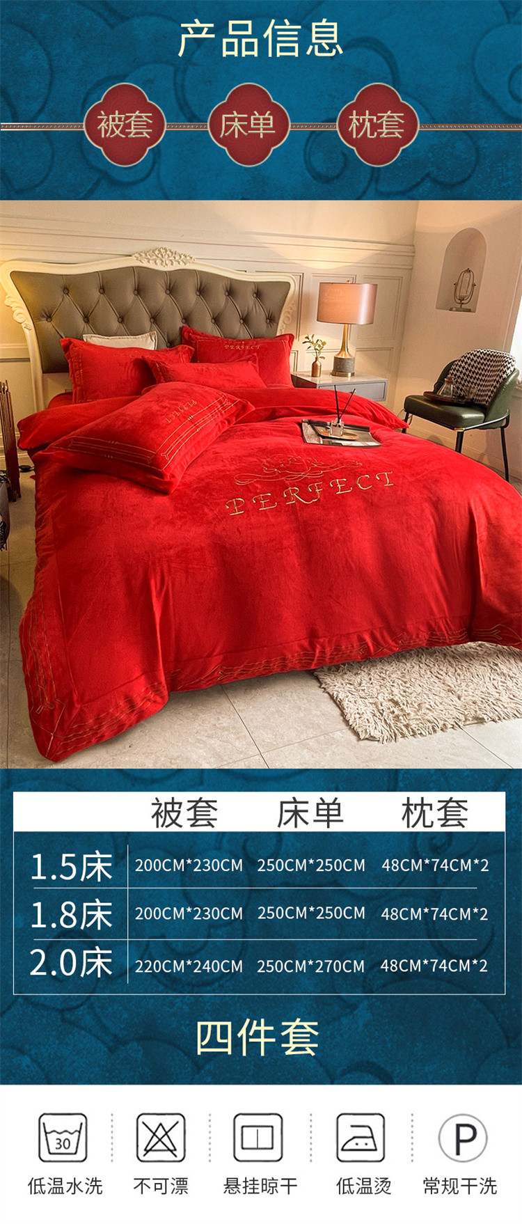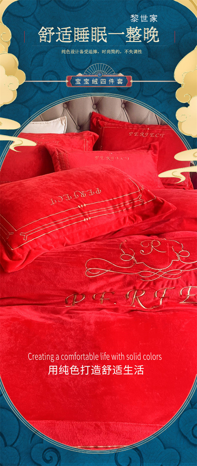 铠畅 2021新款巴黎世家宝宝绒刺绣四件套 黎世家大红