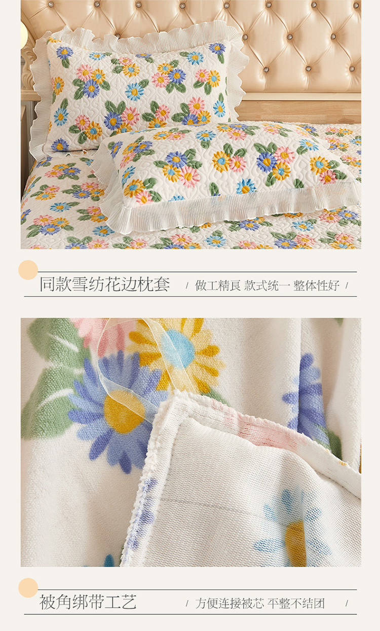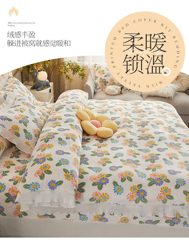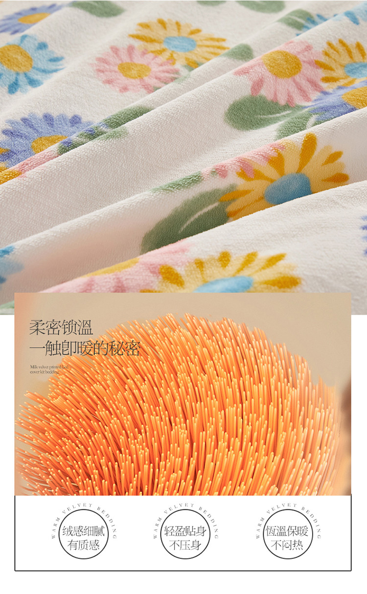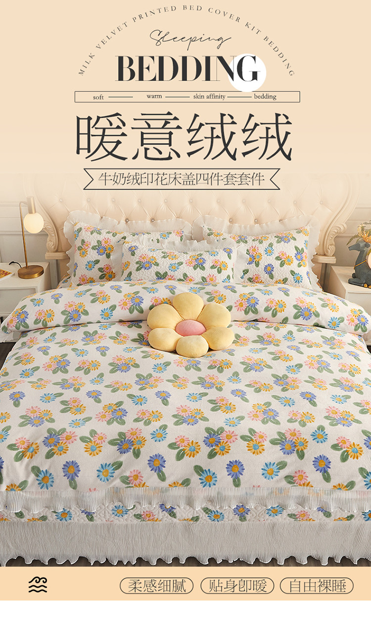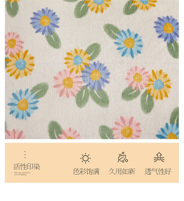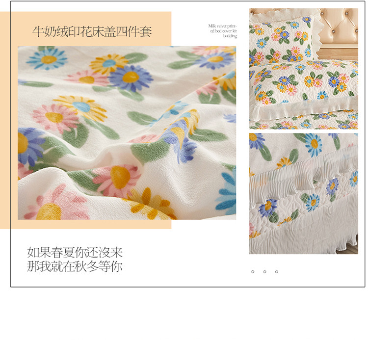 • 91家纺网 家纺一手货源 找家纺 宜凡 2021新款牛奶绒小清新床盖四件套 假日缤纷