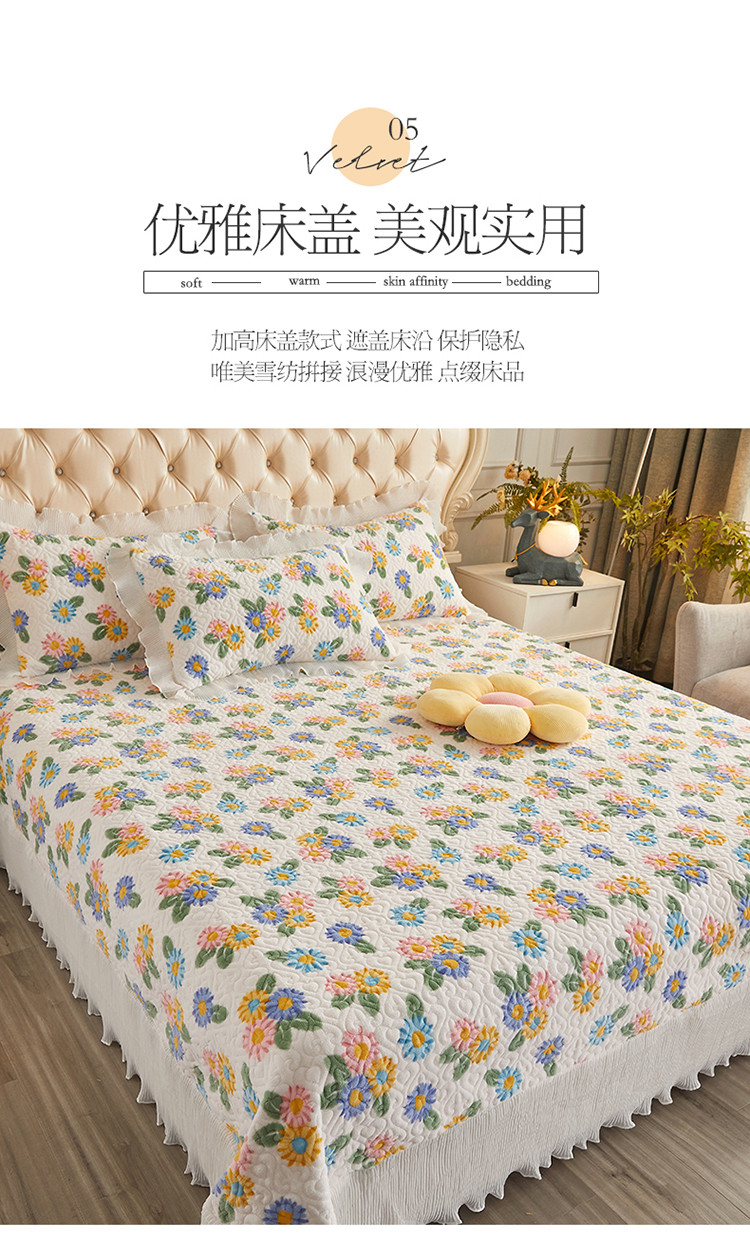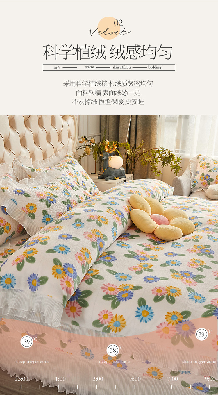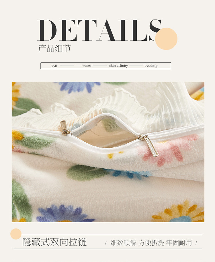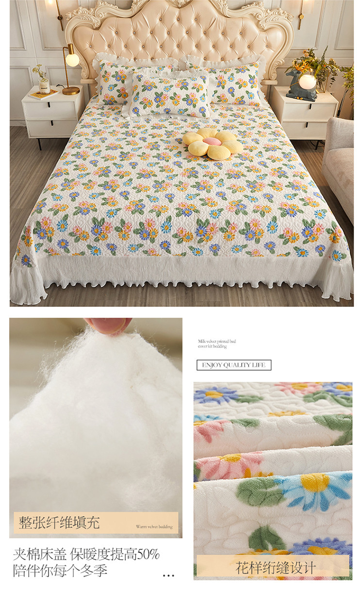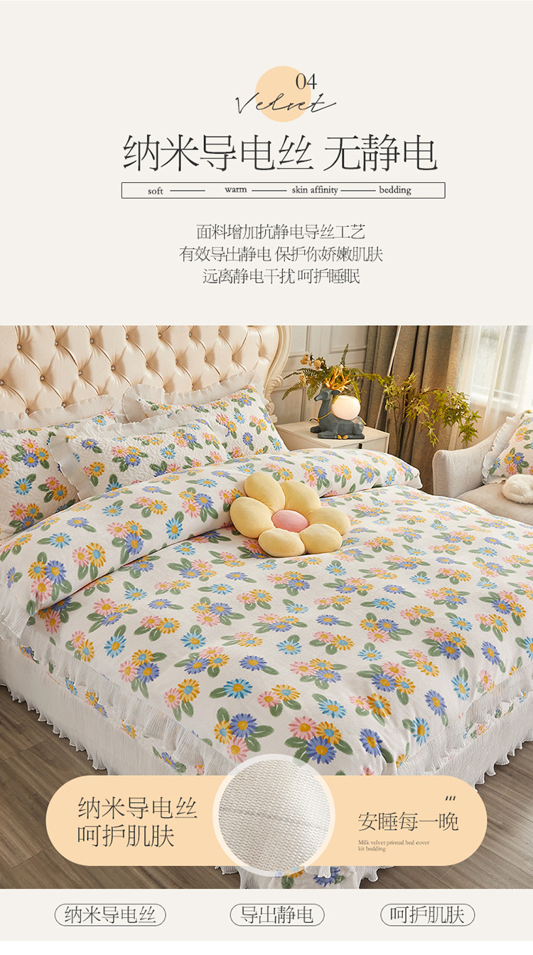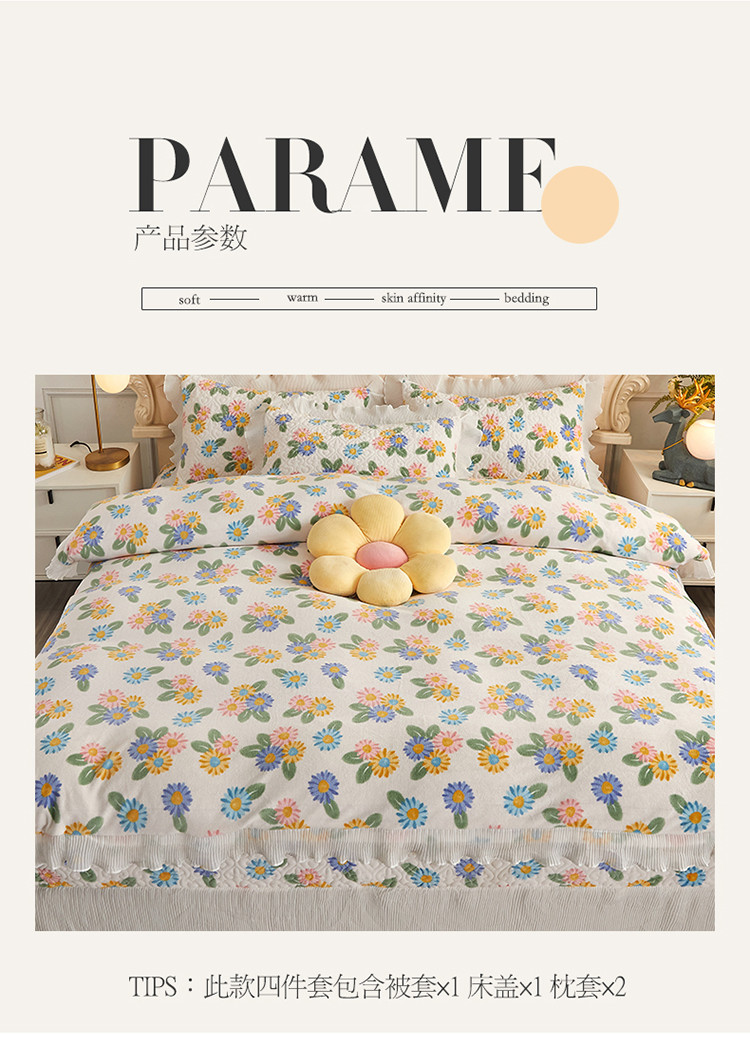 • 91家纺网 家纺一手货源 找家纺 宜凡 2021新款牛奶绒小清新床盖四件套 假日缤纷