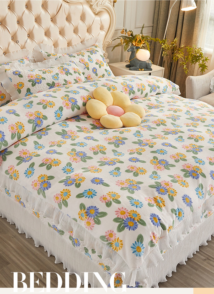 宜凡 2021新款牛奶绒小清新床盖四件套 假日缤纷