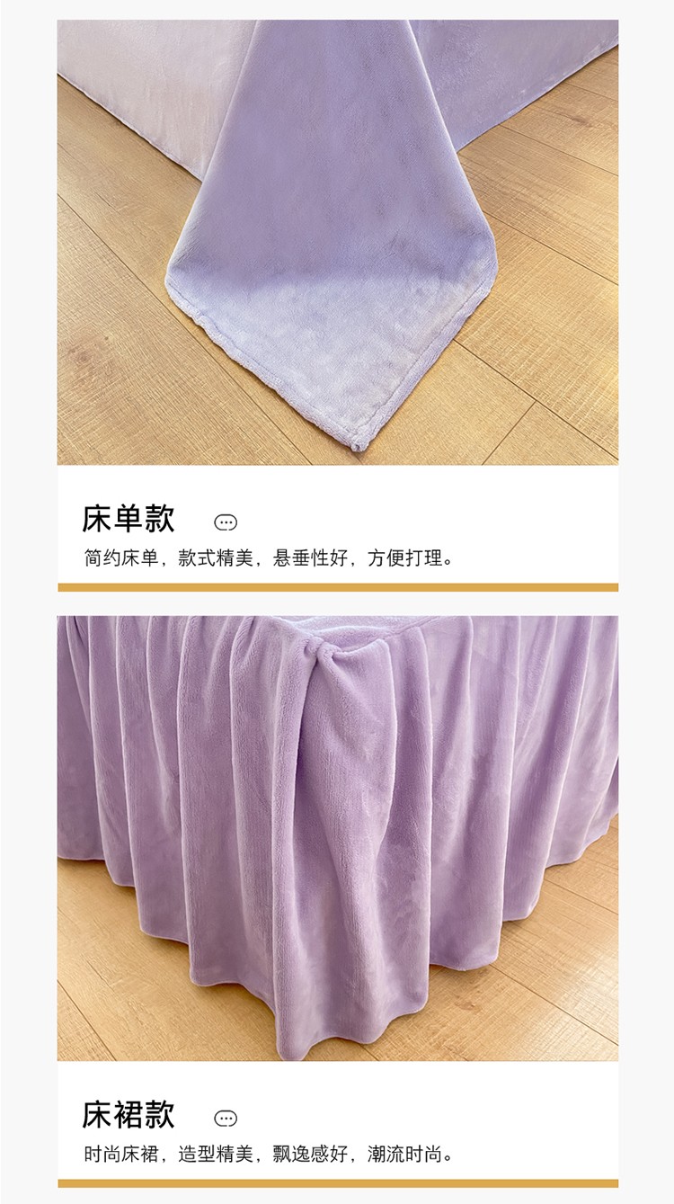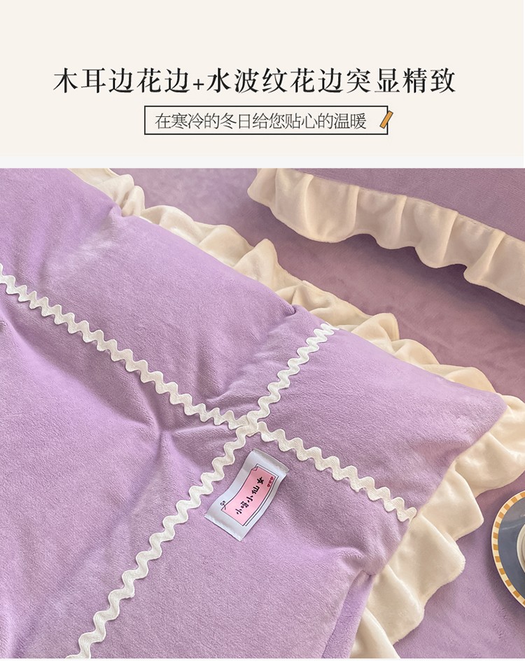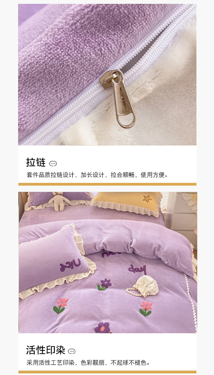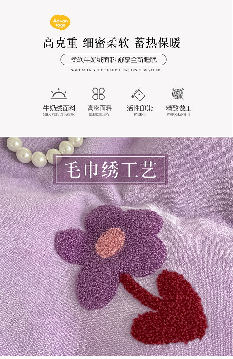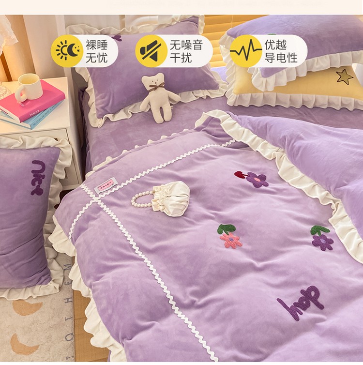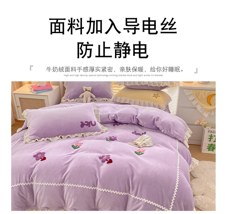 金爱家2021新款230克毛巾绣牛奶绒花边四件套 小花花-香芋紫