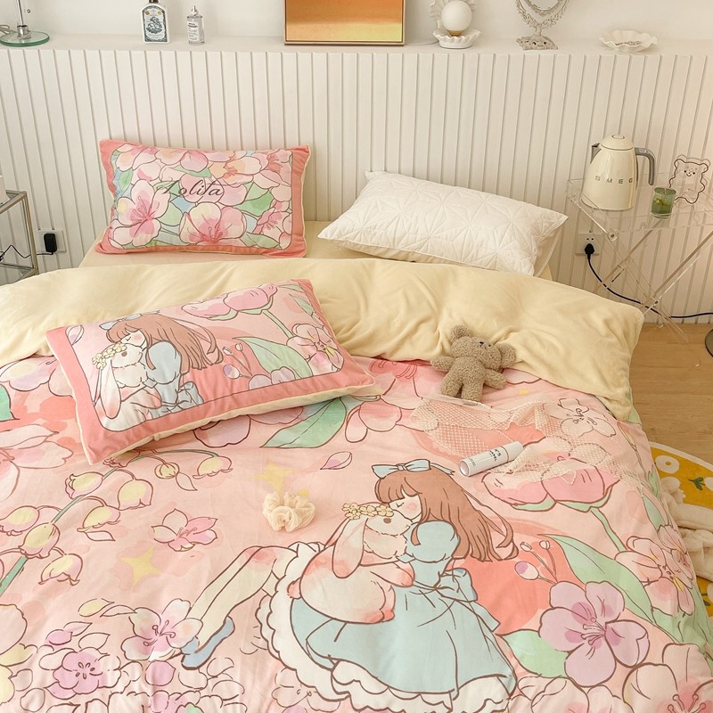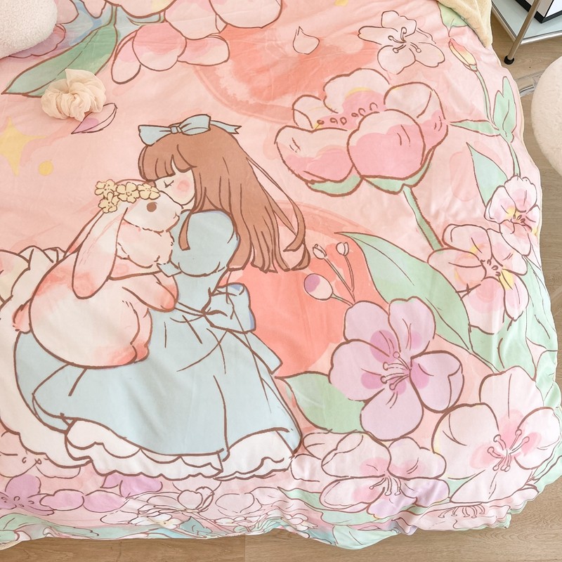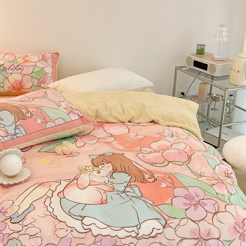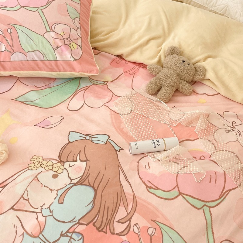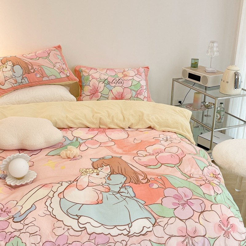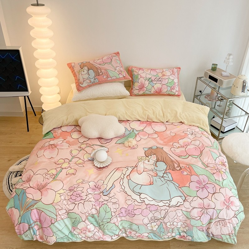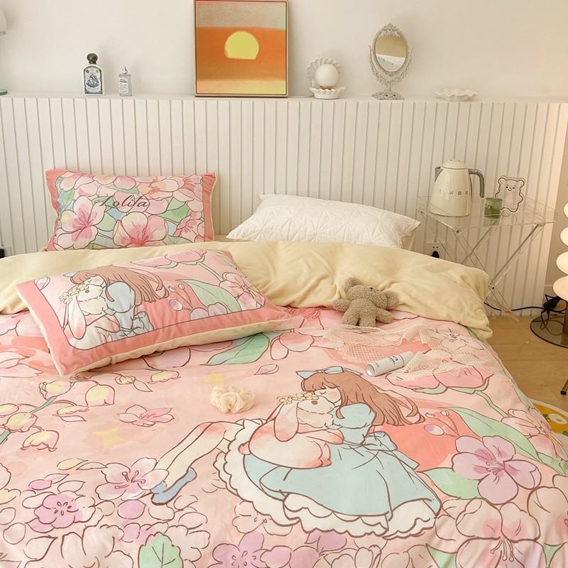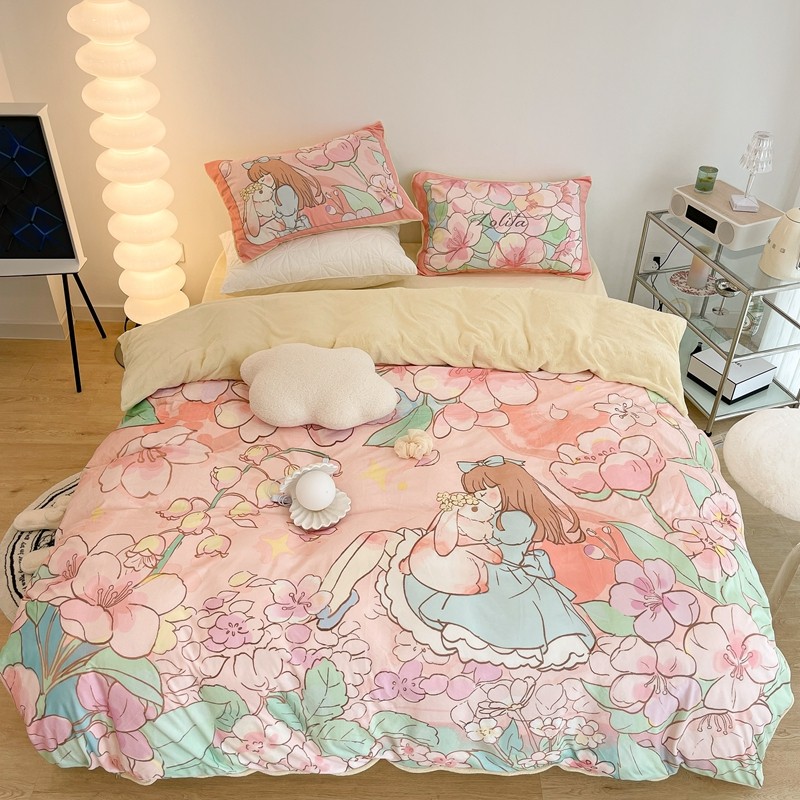 (总)昔可家纺 2024新款印花牛奶绒四件套系列-洛丽塔风,萝莉小兔,小熊烘焙屋,小熊玩偶屋