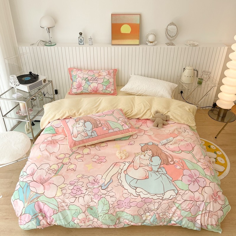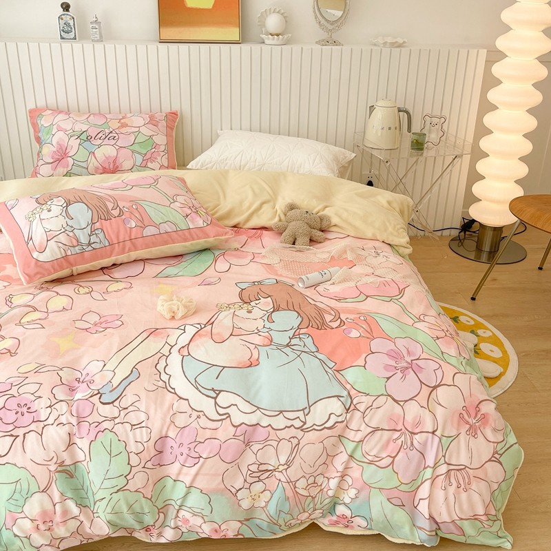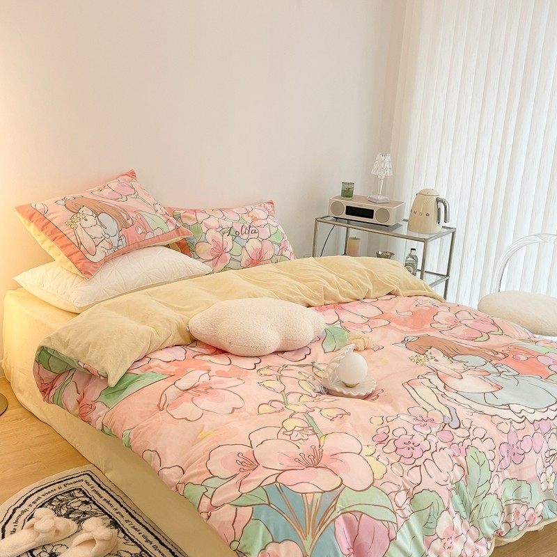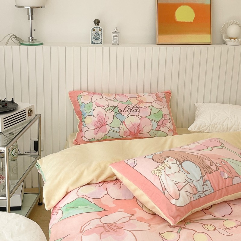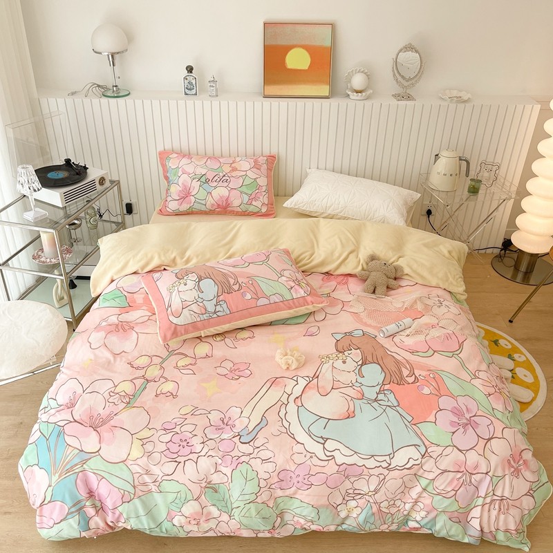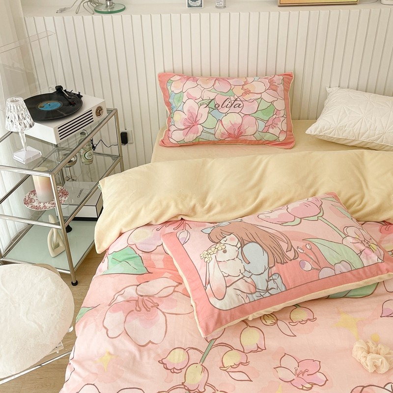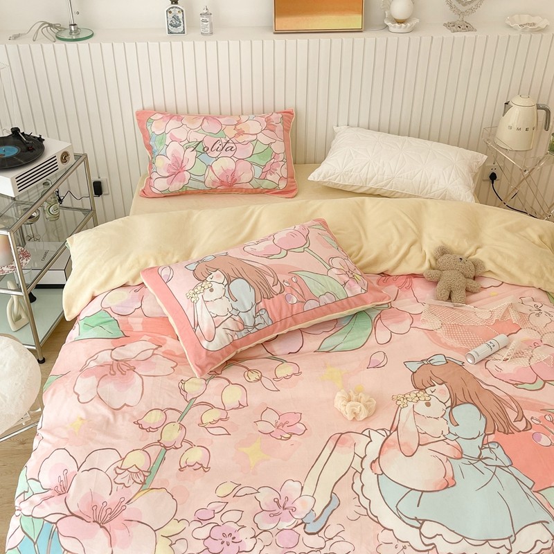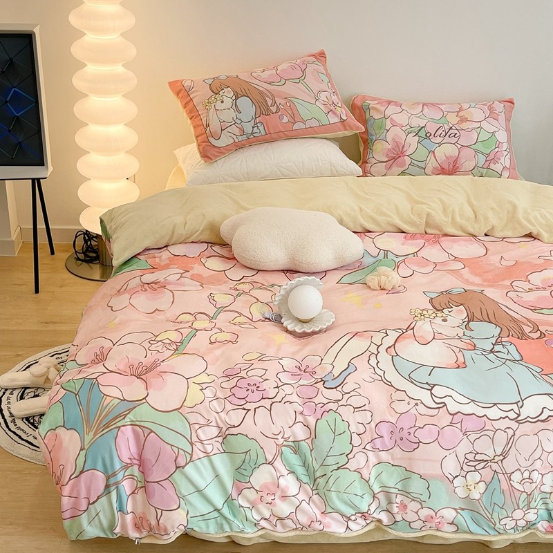 (总)昔可家纺 2024新款印花牛奶绒四件套系列-洛丽塔风,萝莉小兔,小熊烘焙屋,小熊玩偶屋