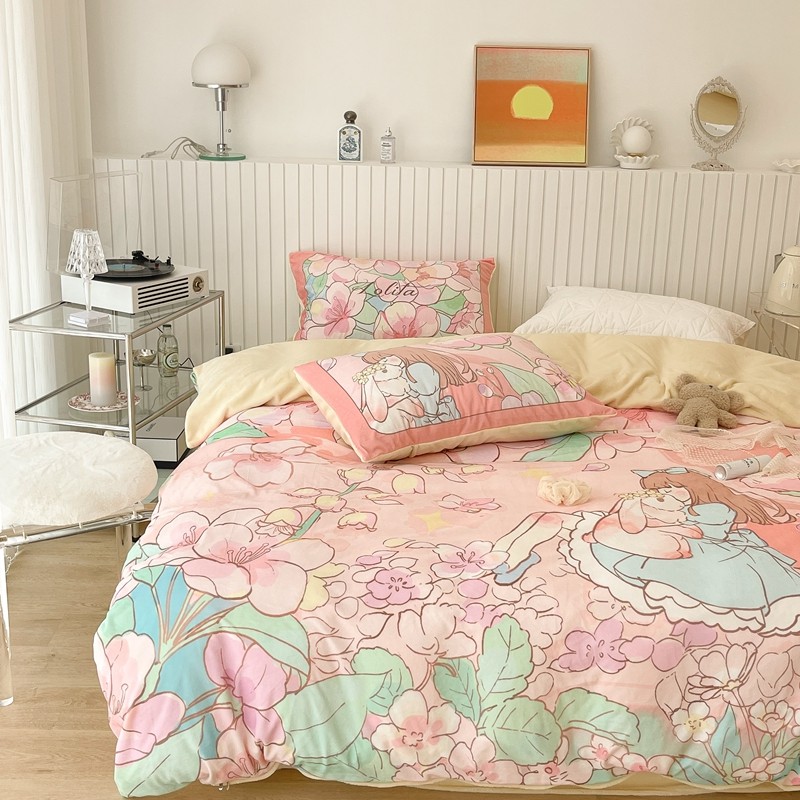 (总)昔可家纺 2023新款全棉四件套-第六批,芭蕾少女,粉粉花,花花小鹿,绿野小兔,玫瑰猫咪,梦镜小兔,黑色泼墨