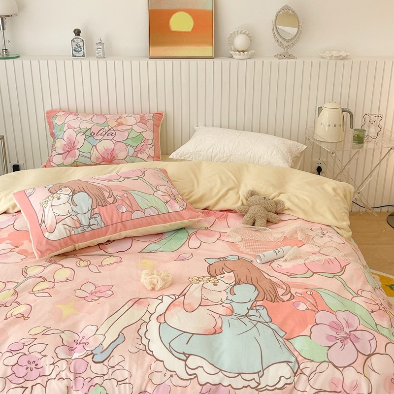 昔可家纺 2021新款大版宝宝牛奶绒四件套 梦境少女