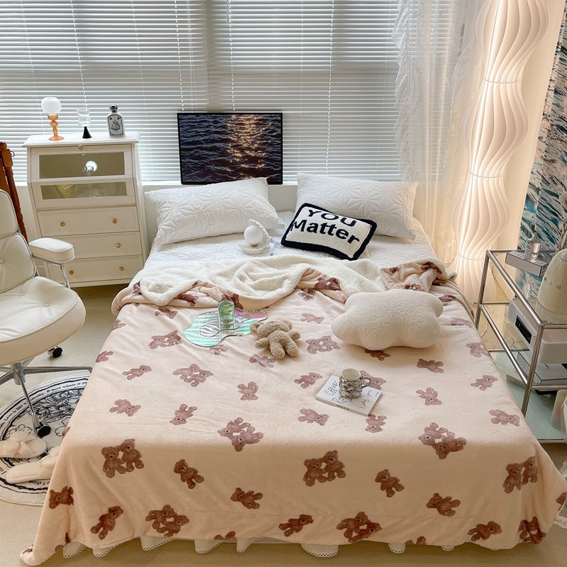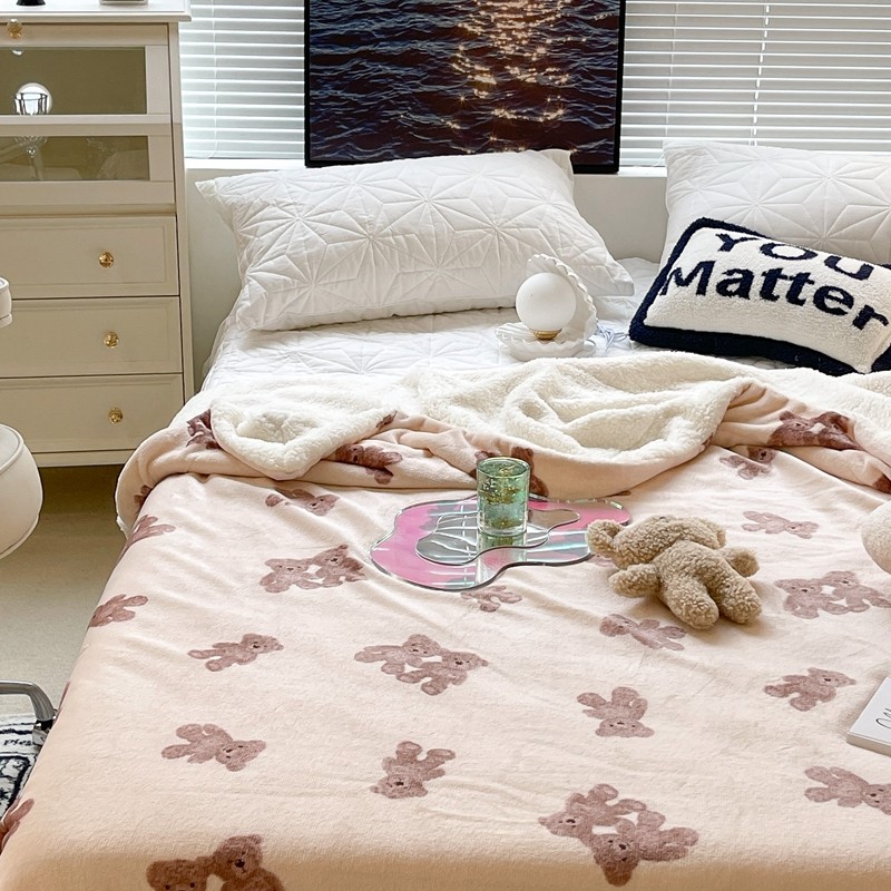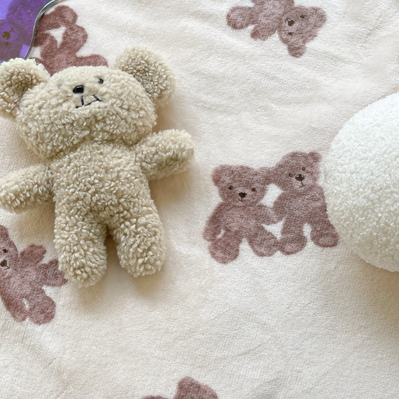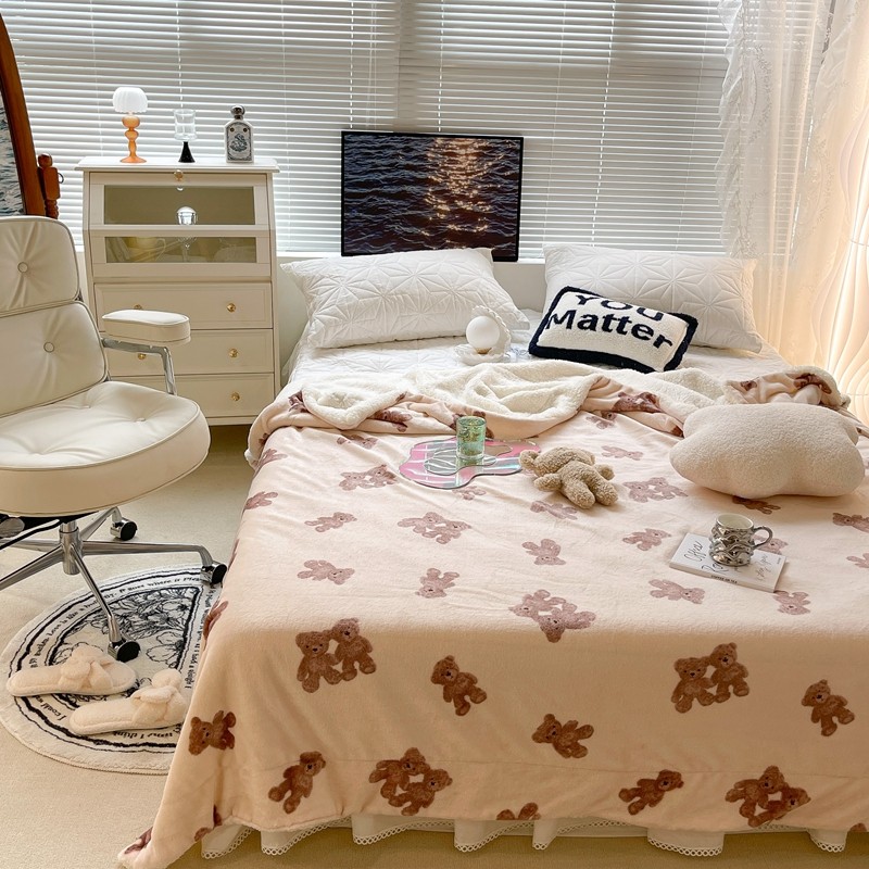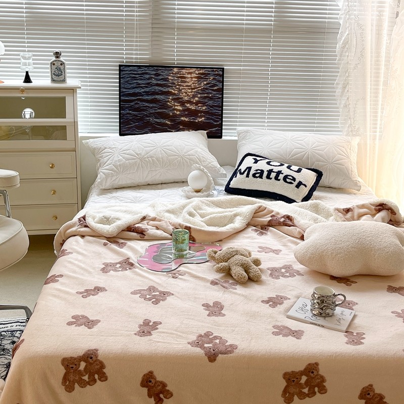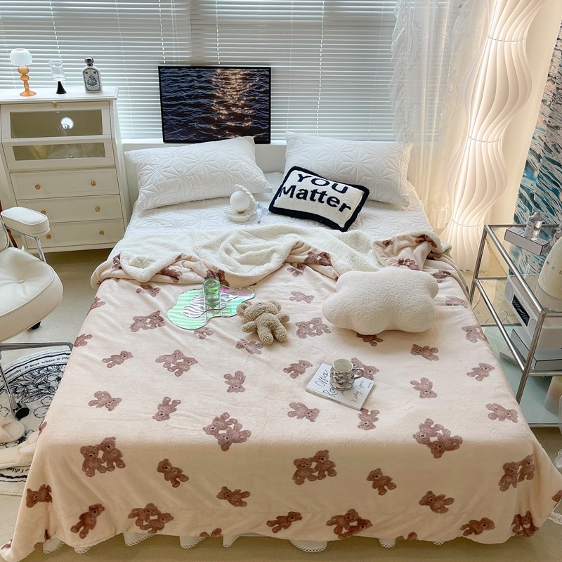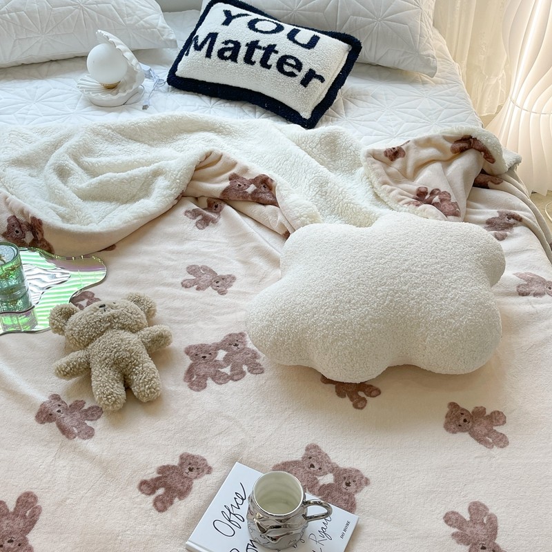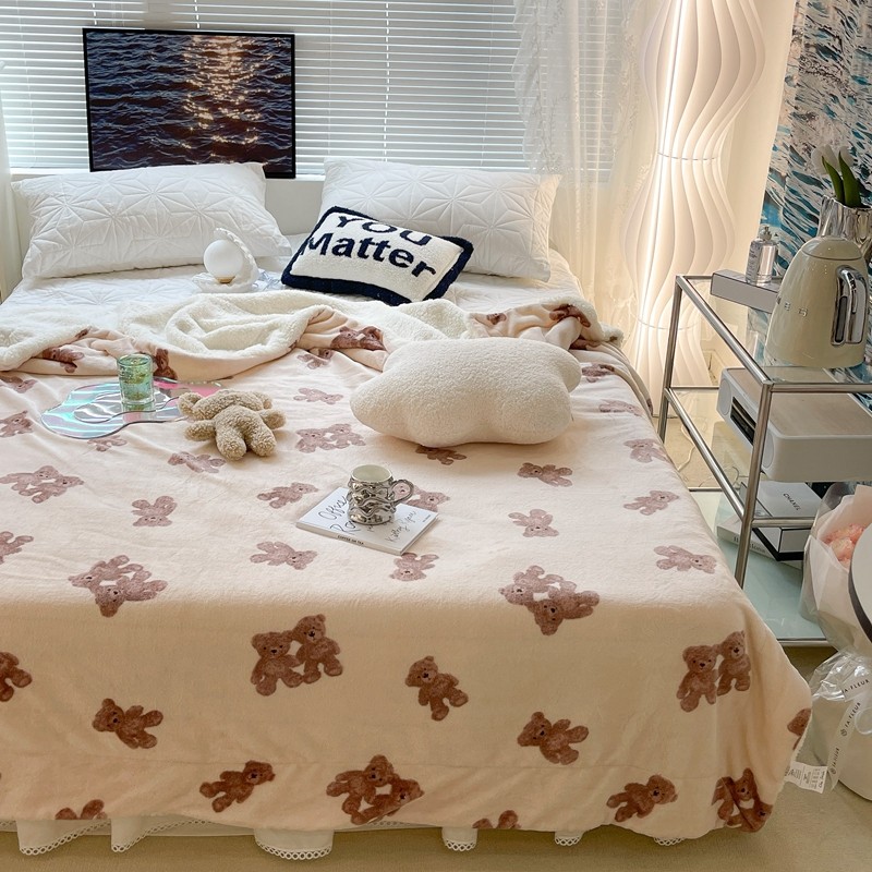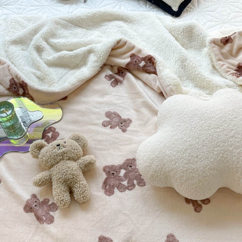 昔可家纺 2021新款牛奶羊羔绒印花毯 泰迪比熊
