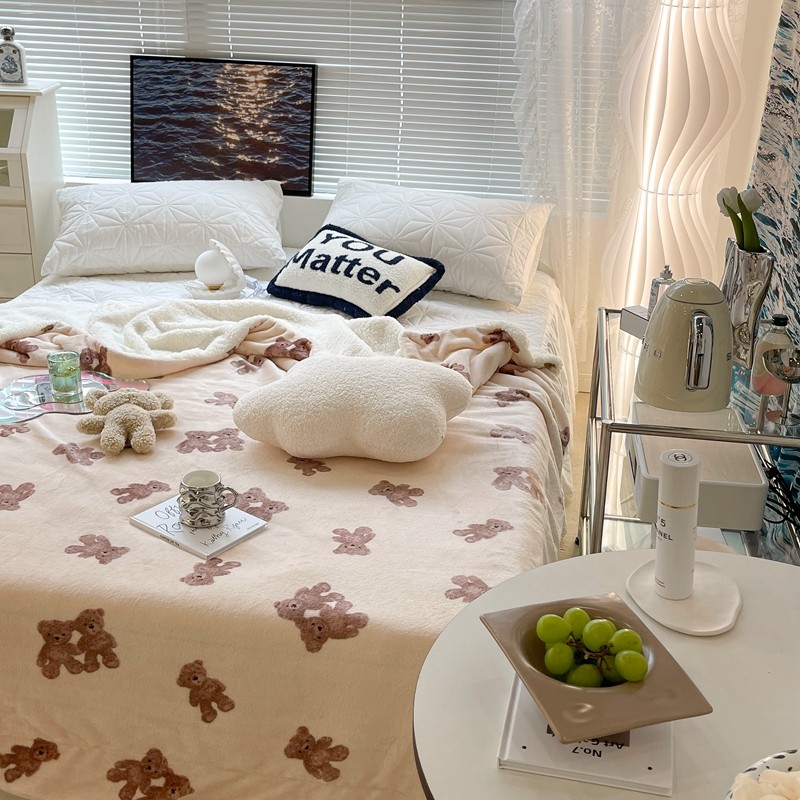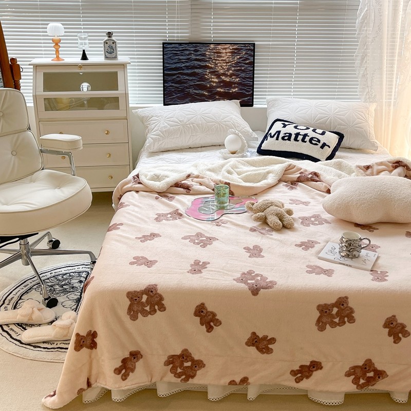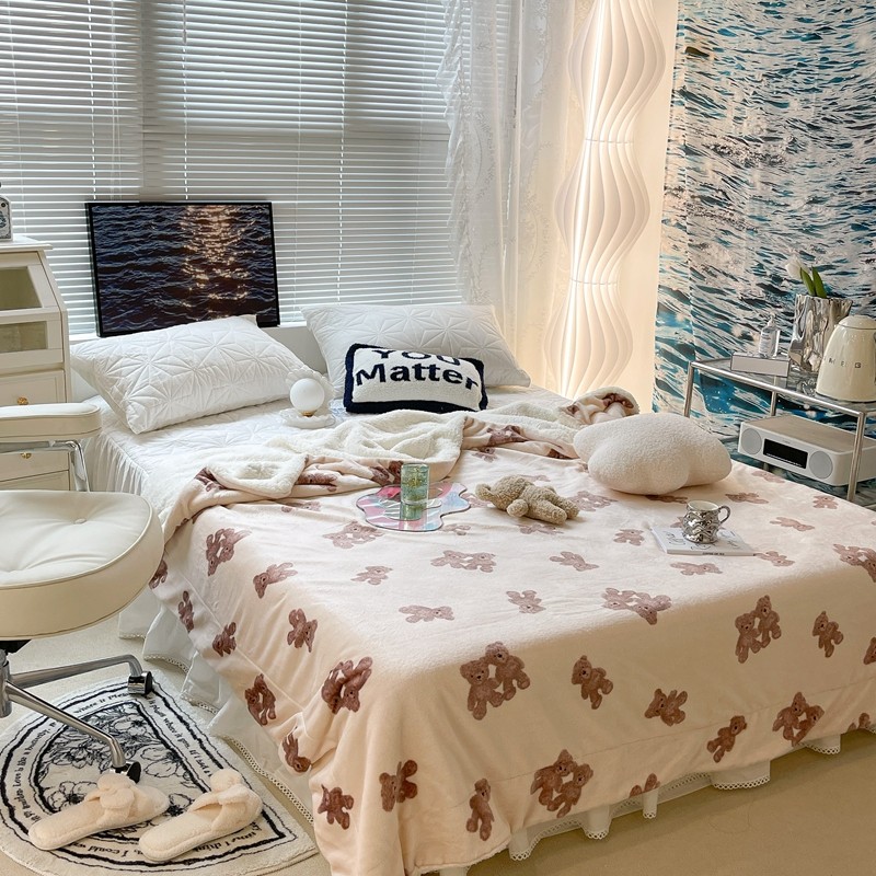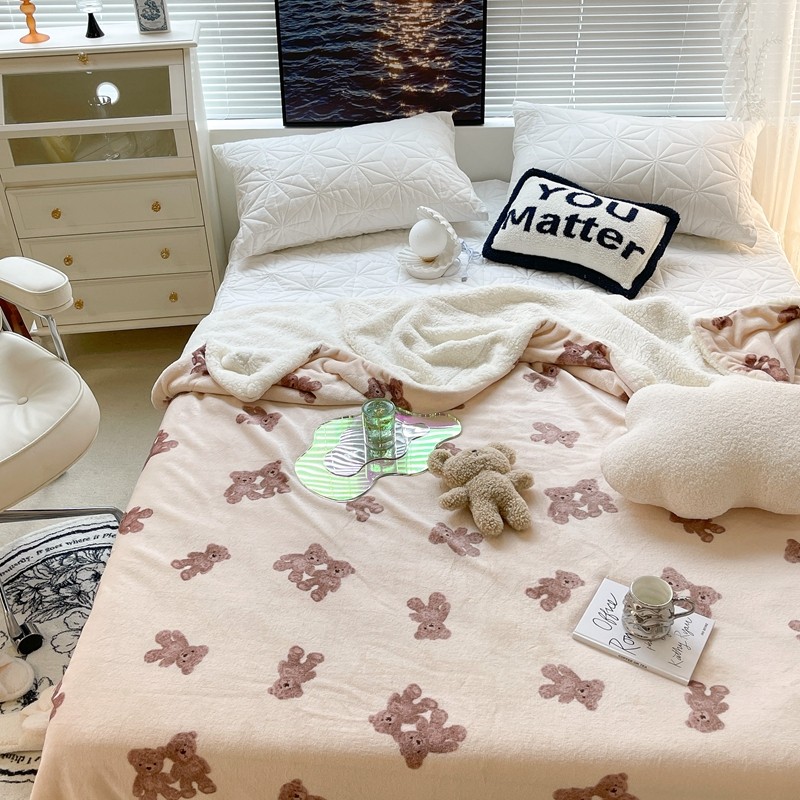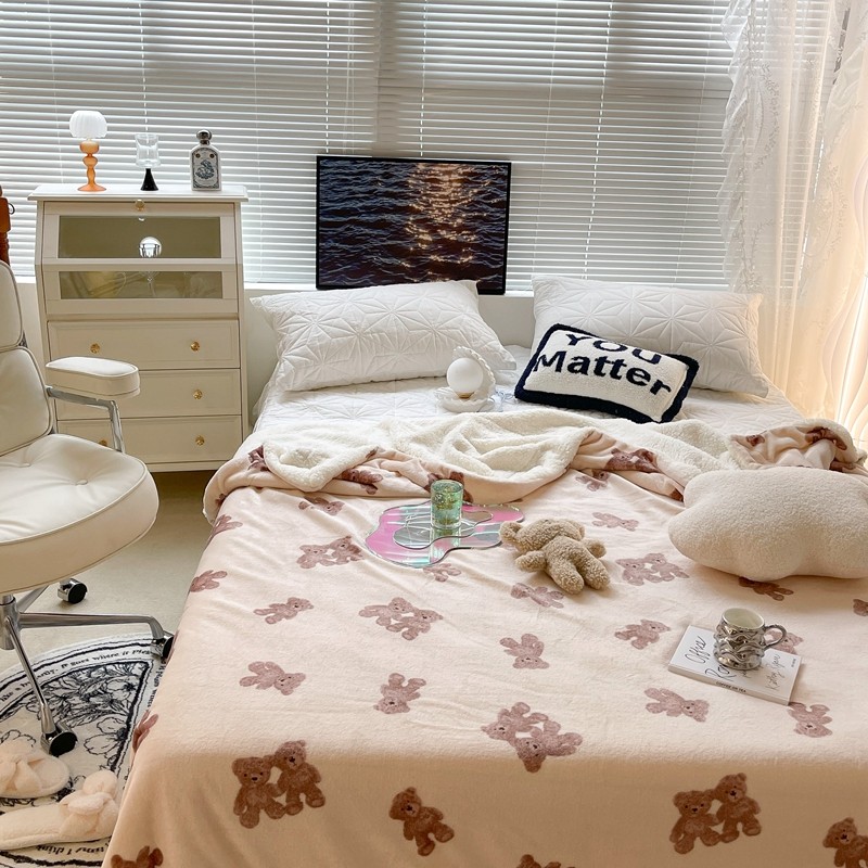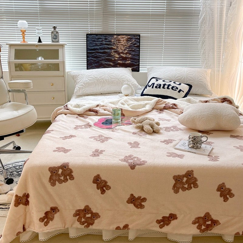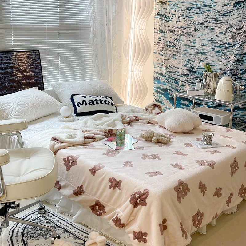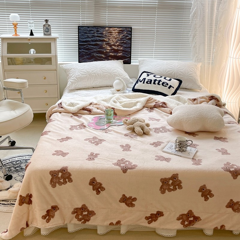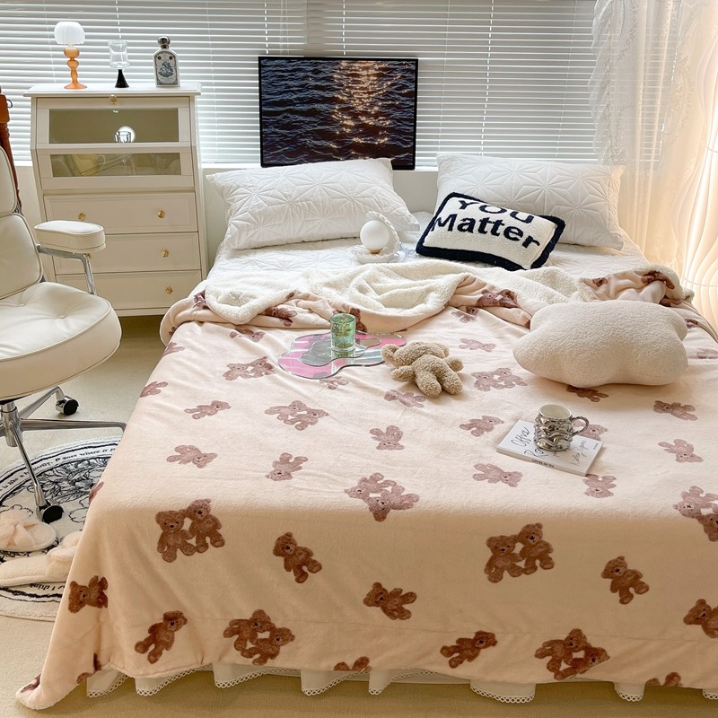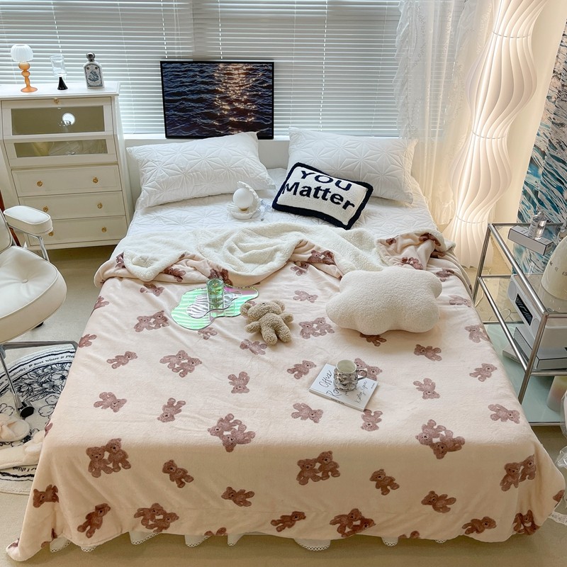 昔可家纺 2021新款牛奶羊羔绒印花毯 泰迪比熊