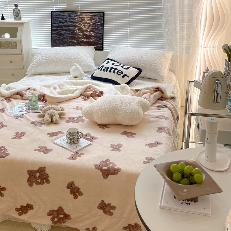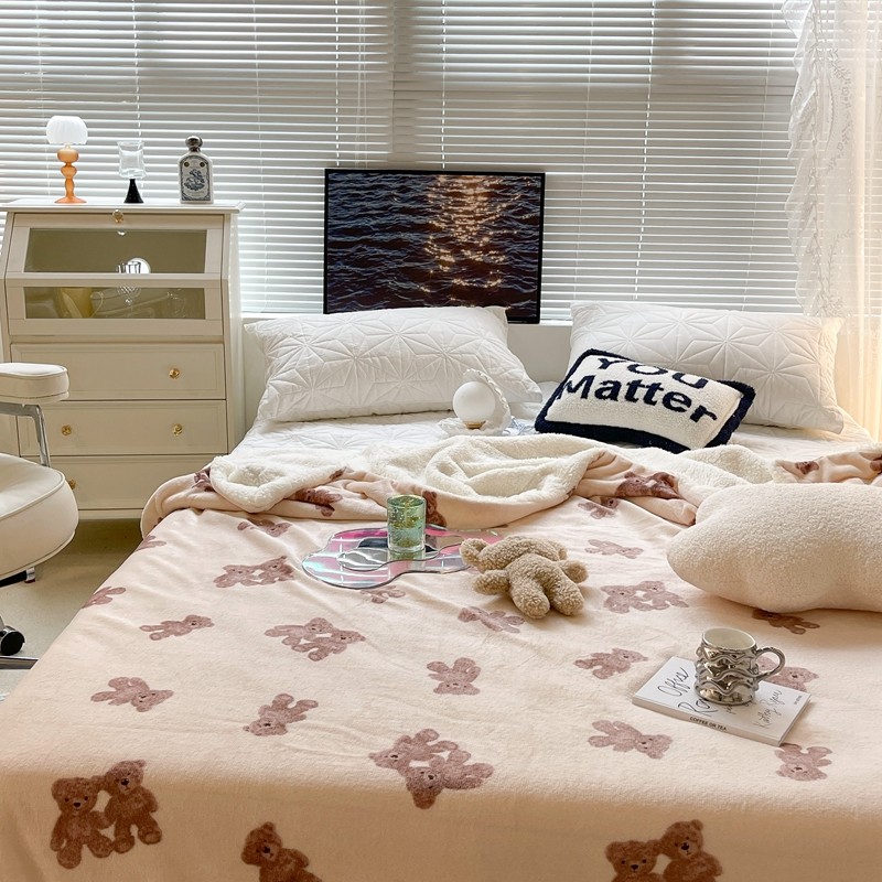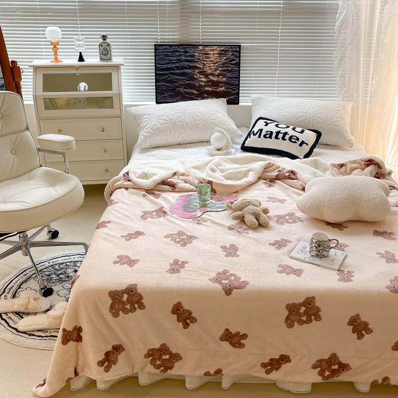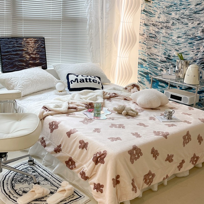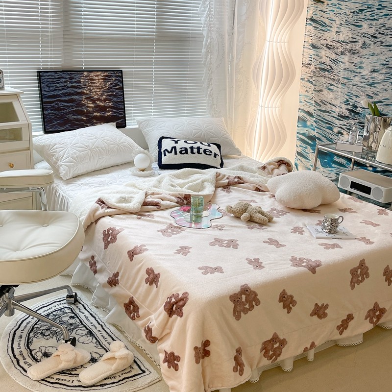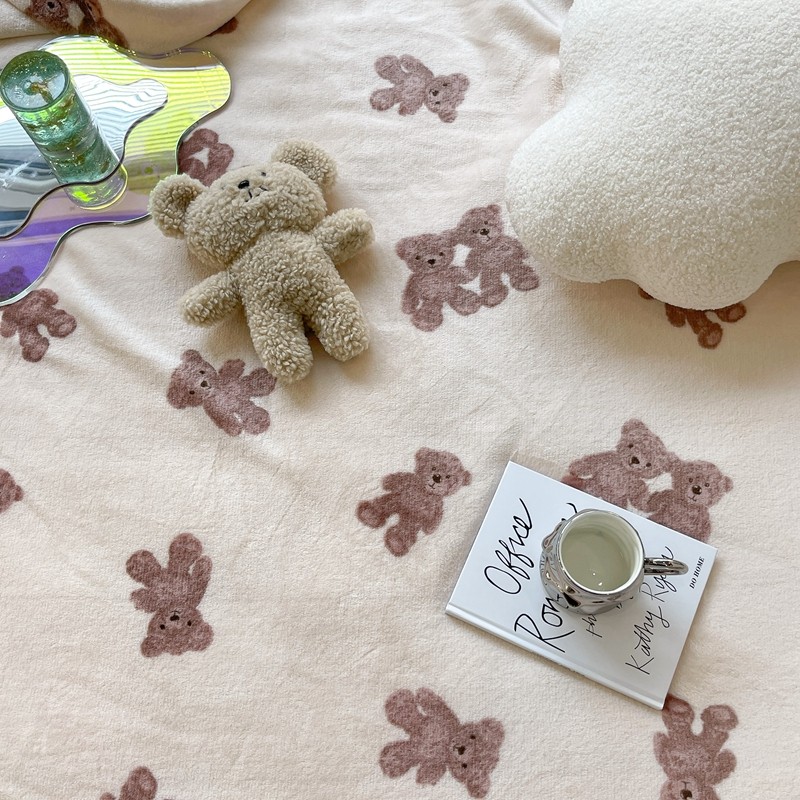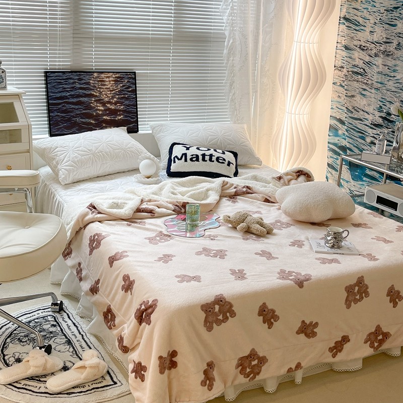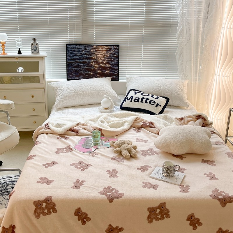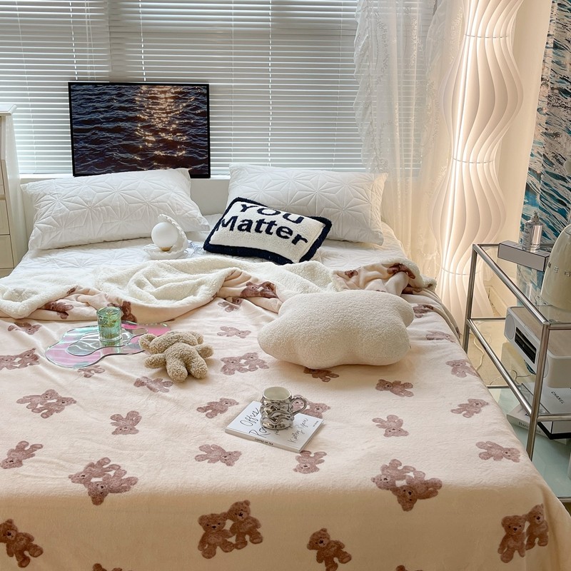 昔可家纺 2021新款牛奶羊羔绒印花毯 泰迪比熊