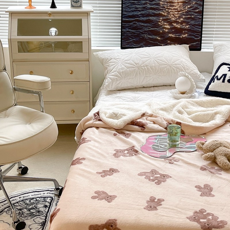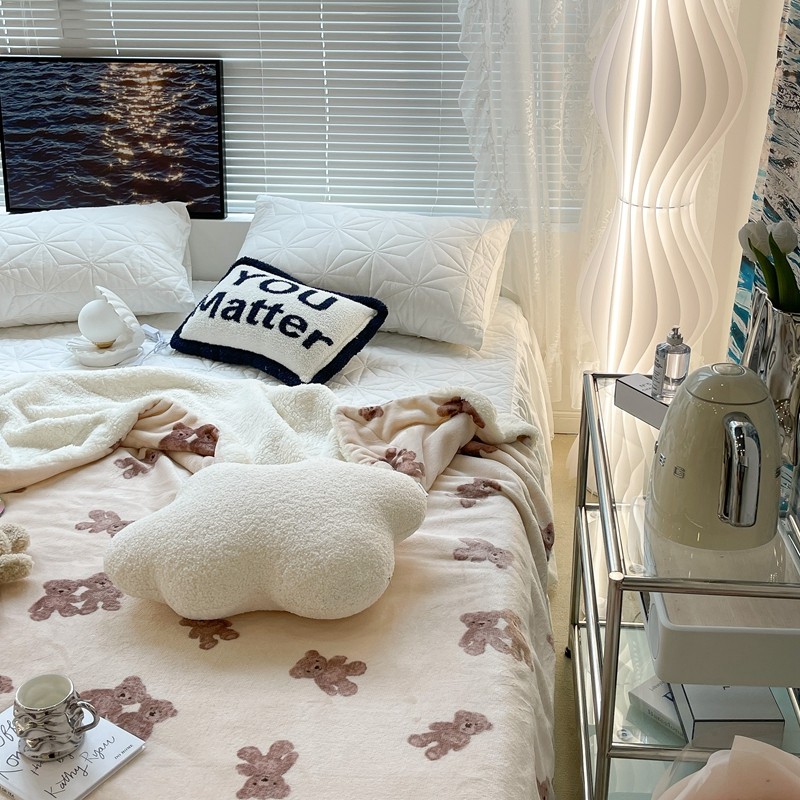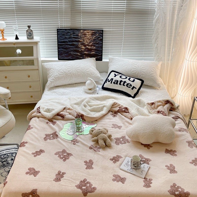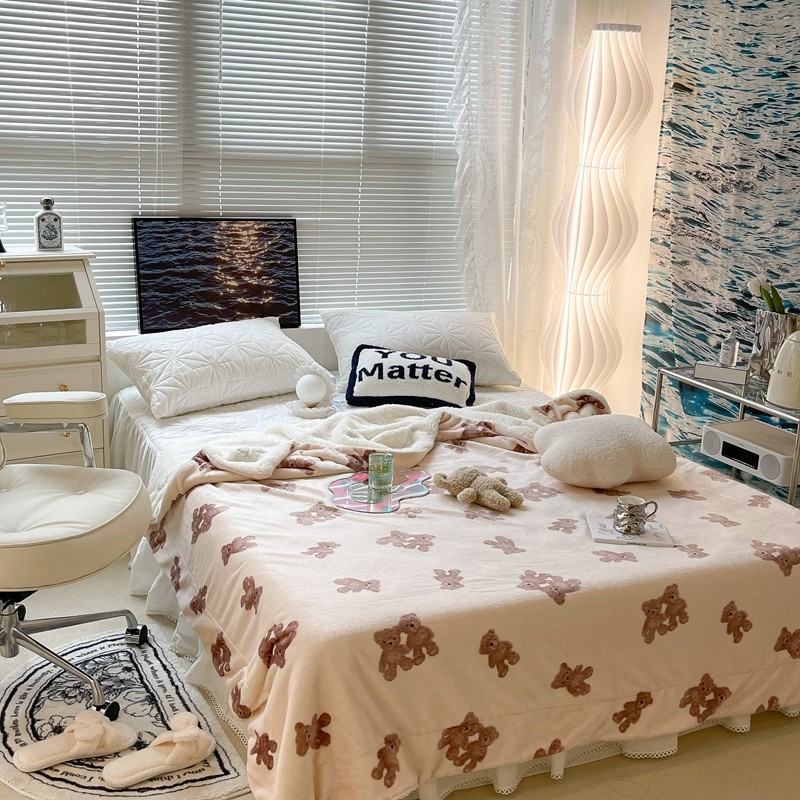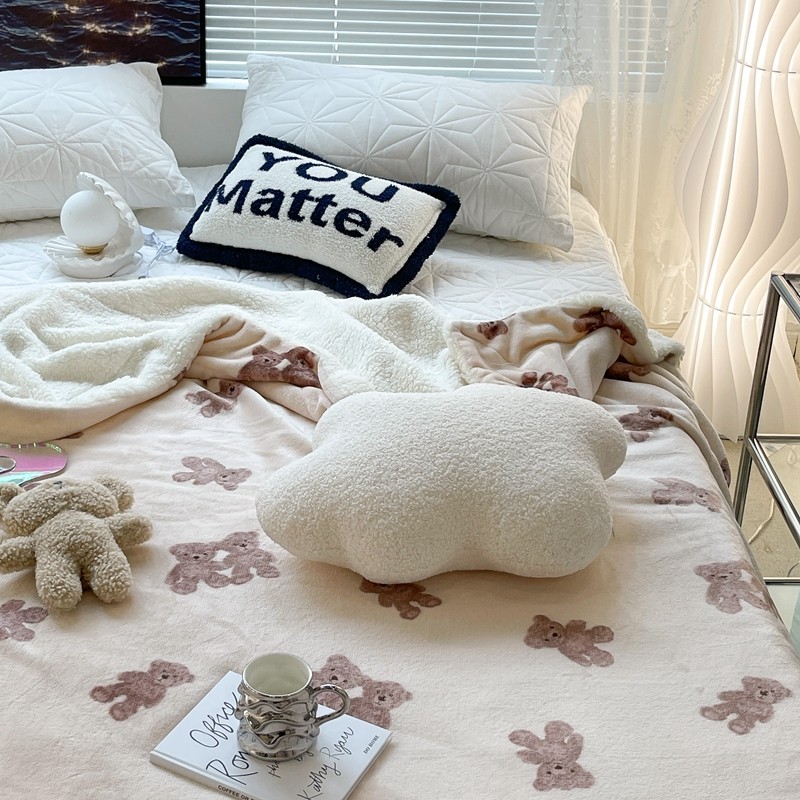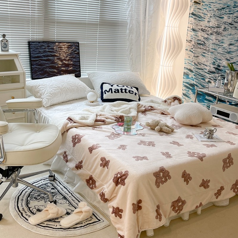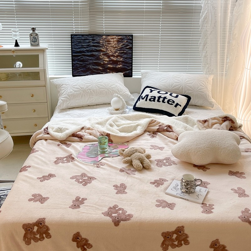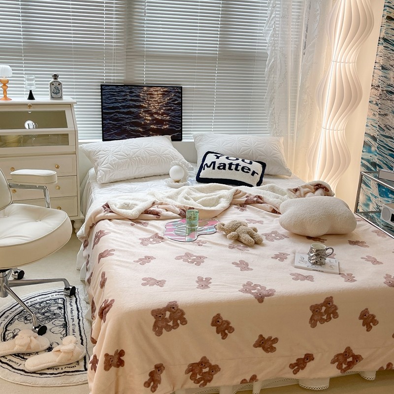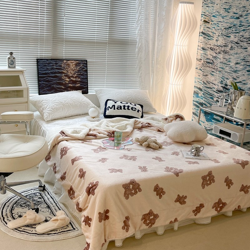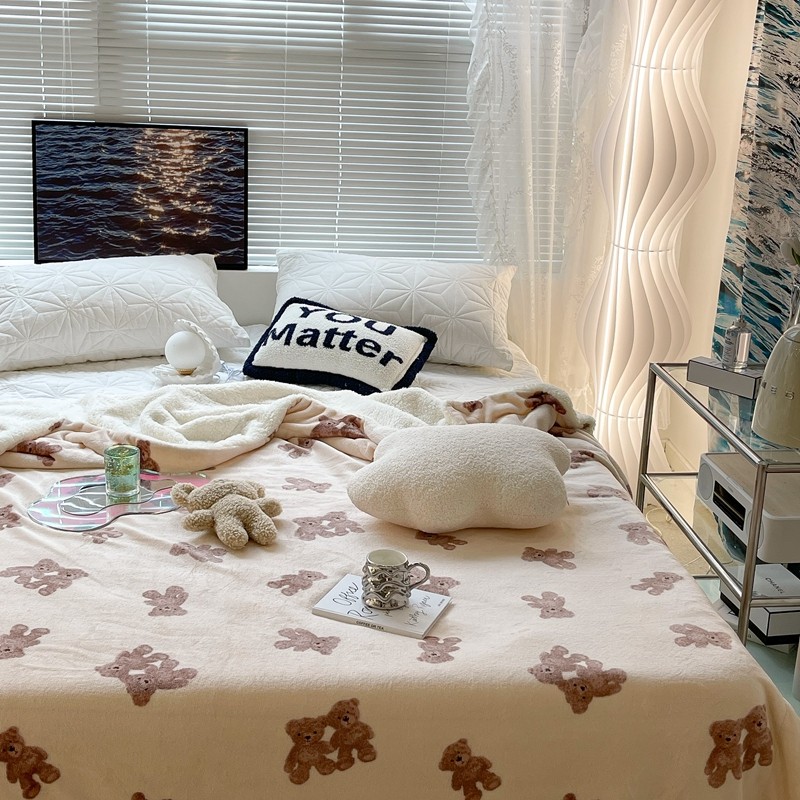 昔可家纺 2021新款牛奶羊羔绒印花毯 泰迪比熊