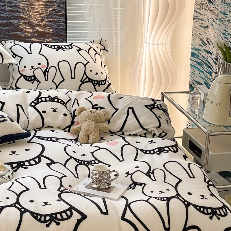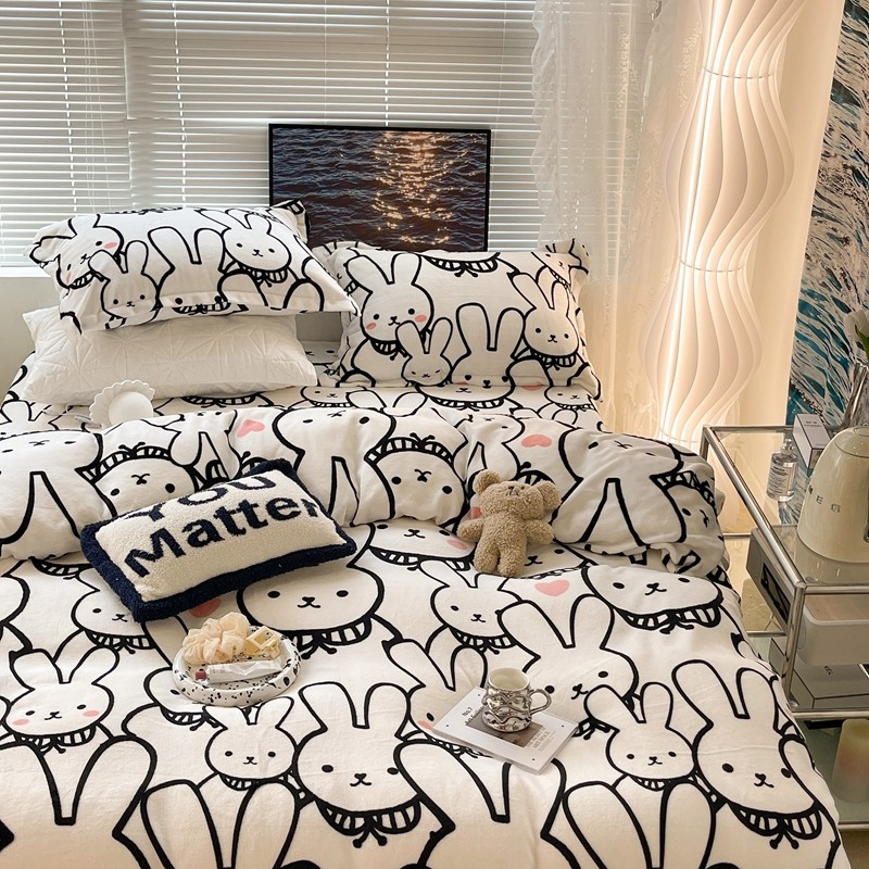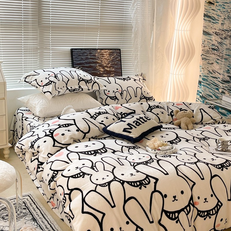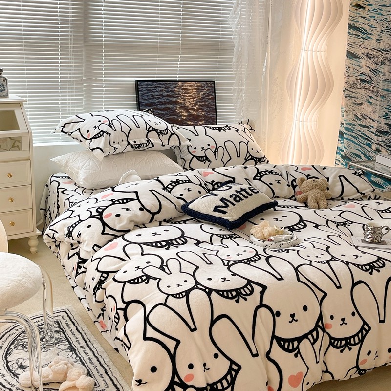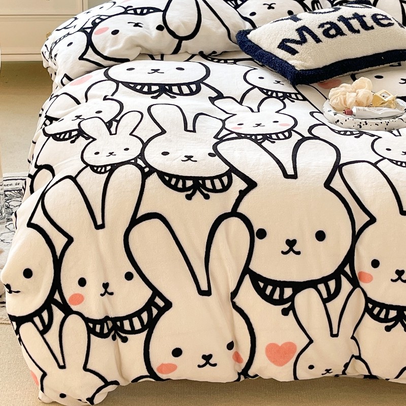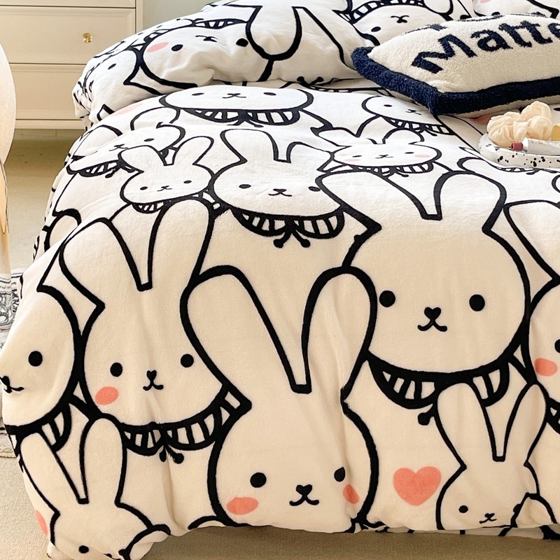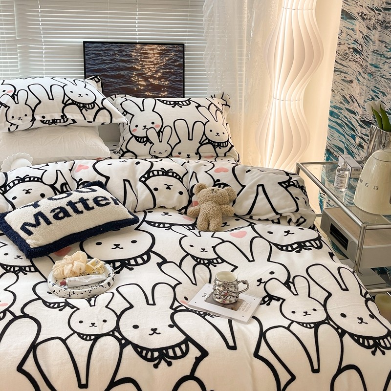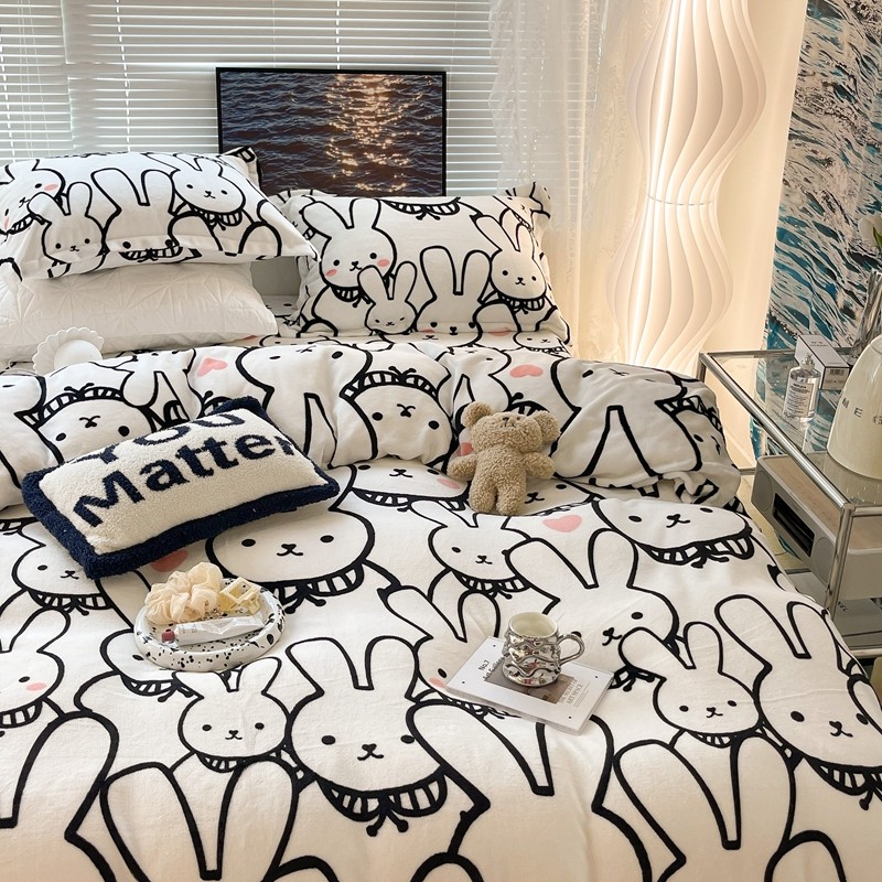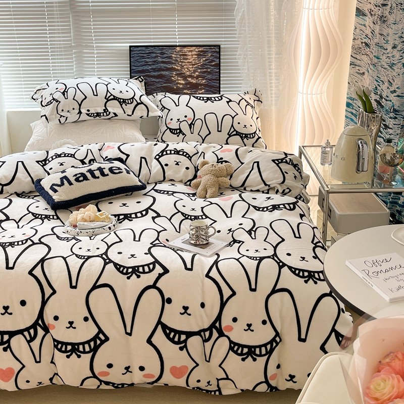 昔可家纺 2021新款牛奶绒四件套-一批 简笔兔兔