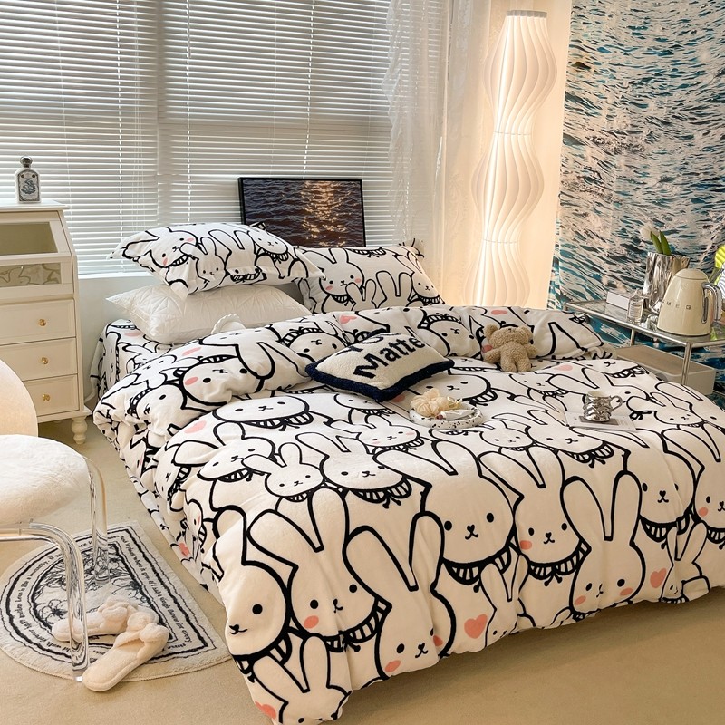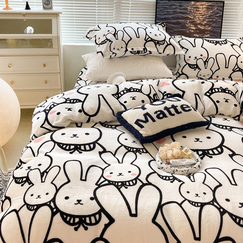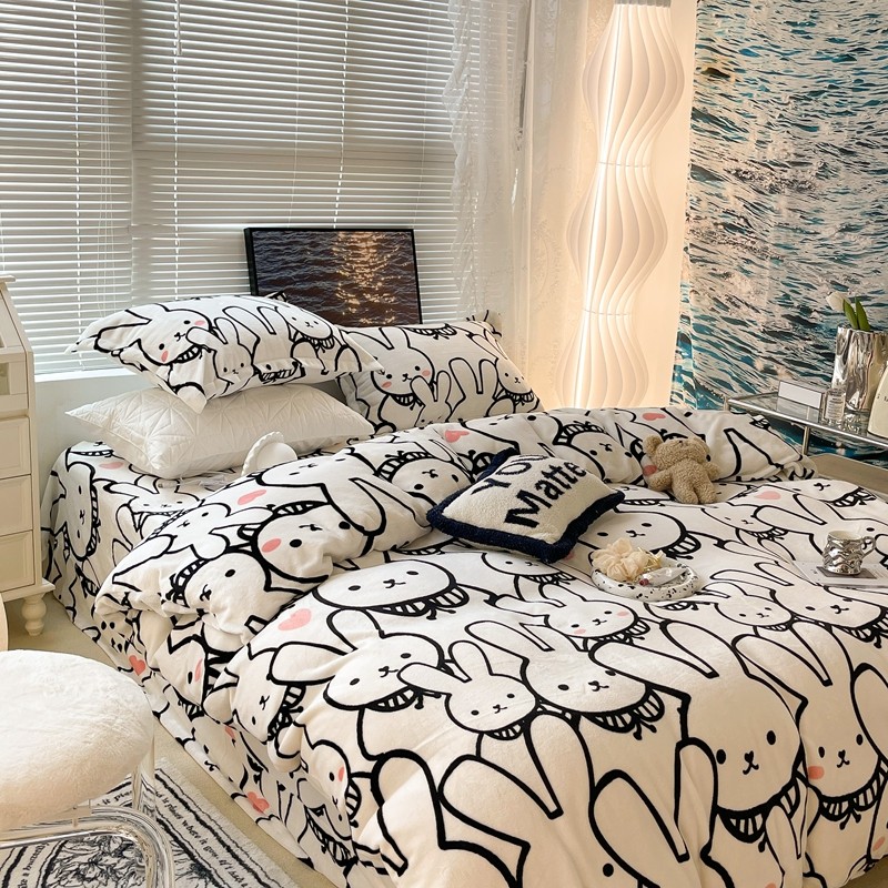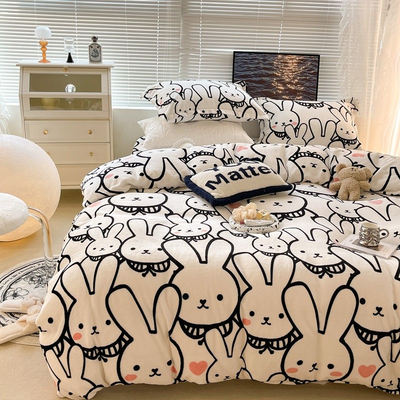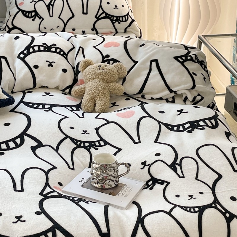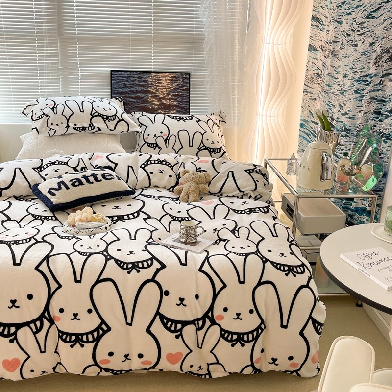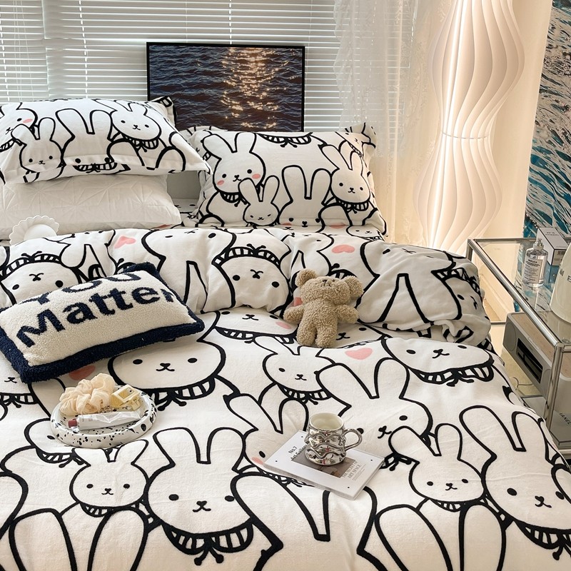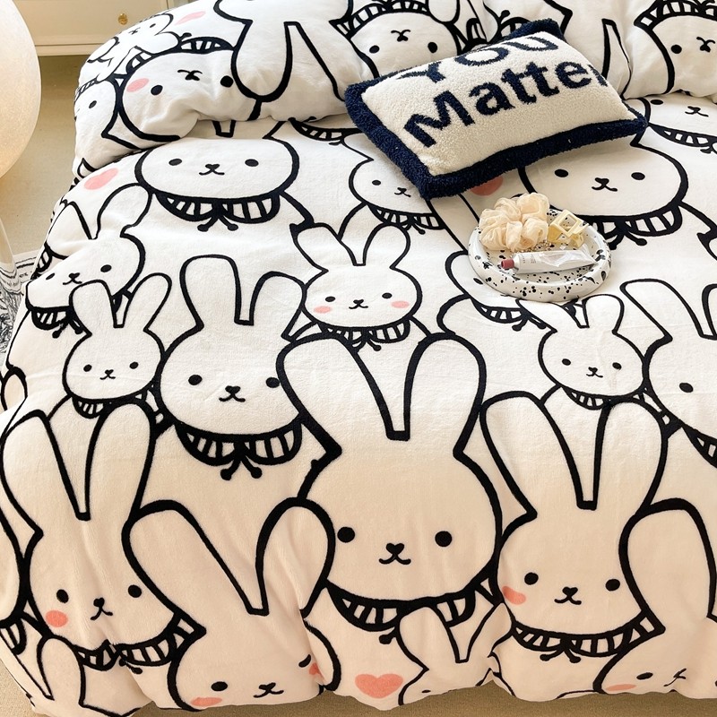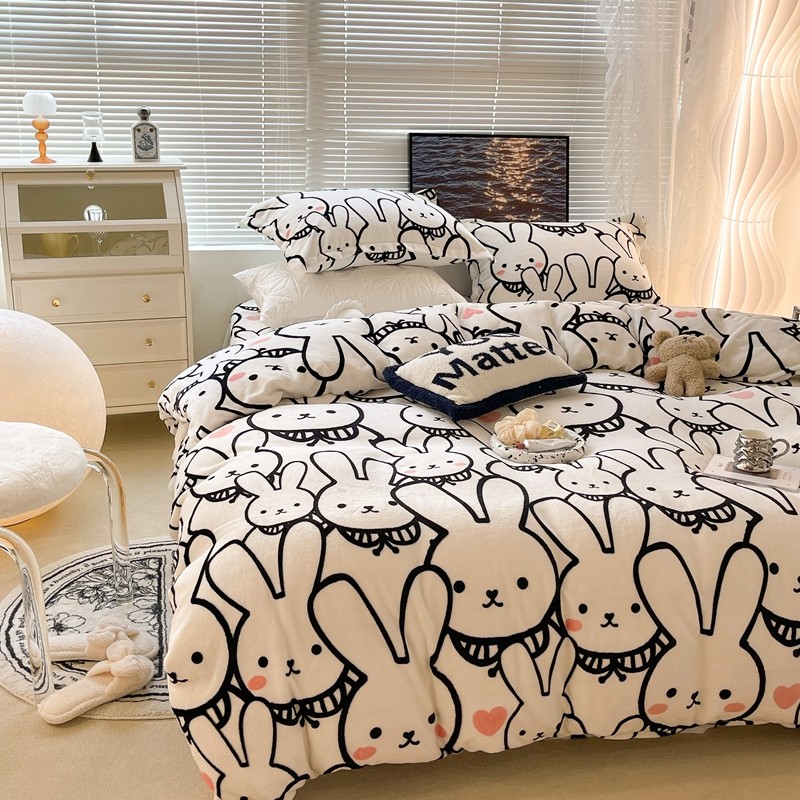 昔可家纺 2021新款牛奶绒四件套-一批 简笔兔兔