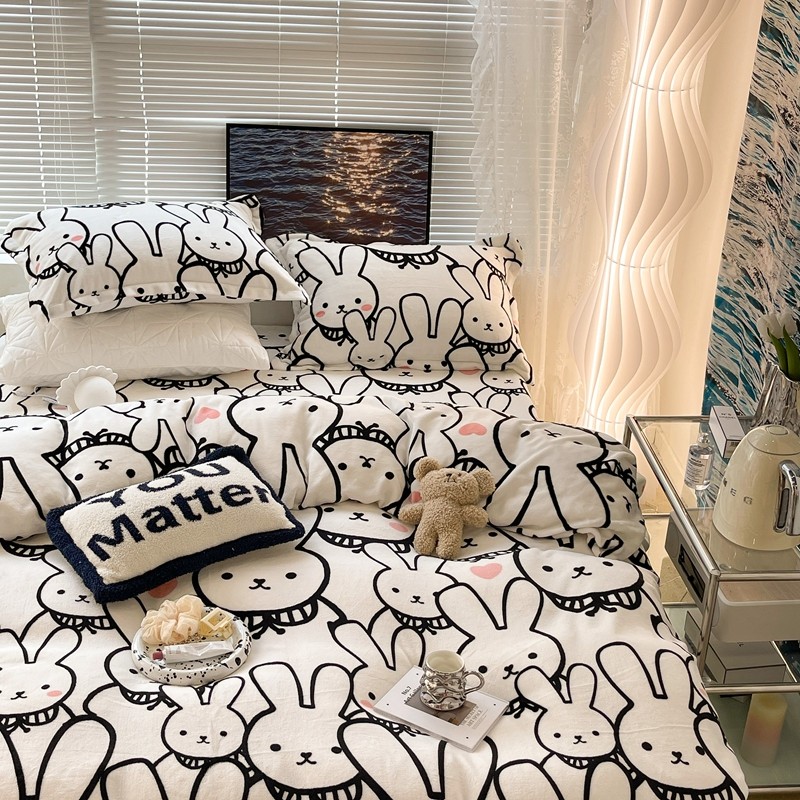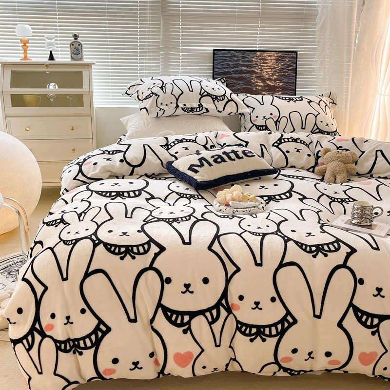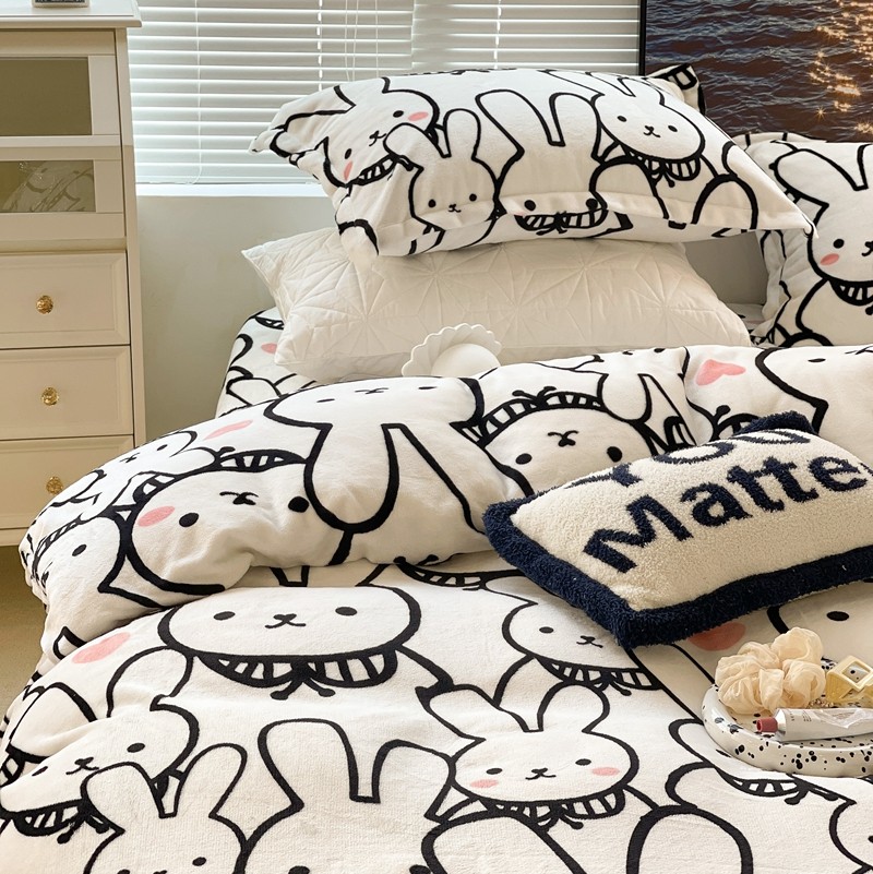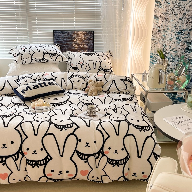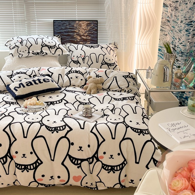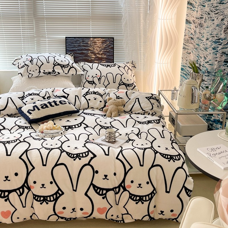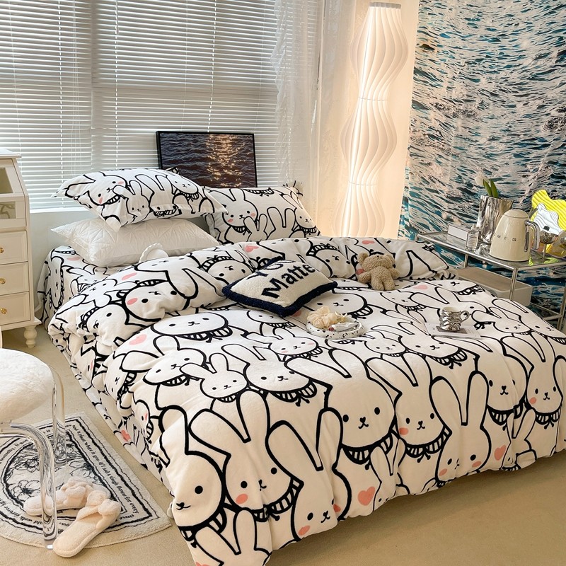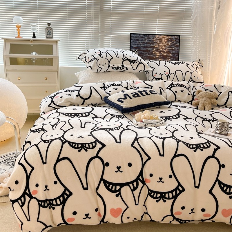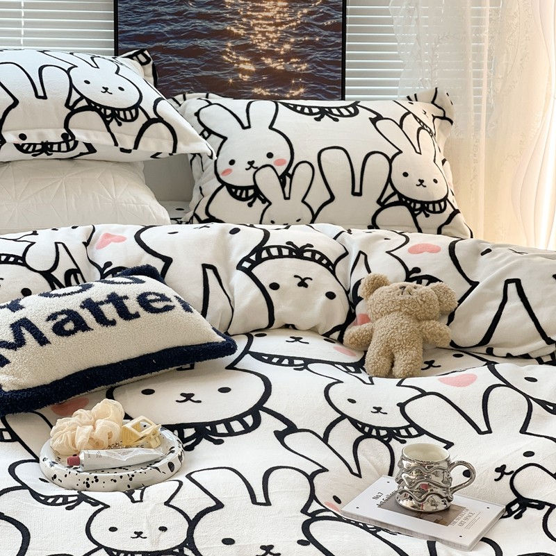 昔可家纺 2021新款牛奶绒四件套-一批 简笔兔兔