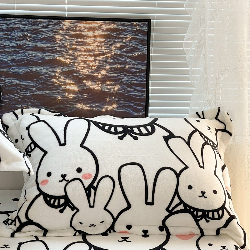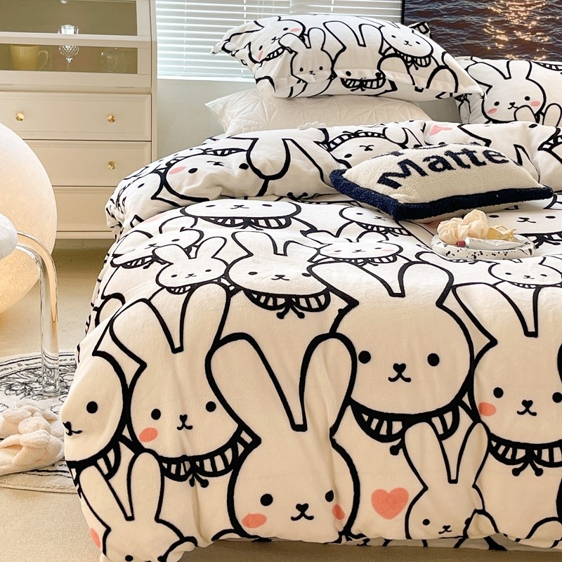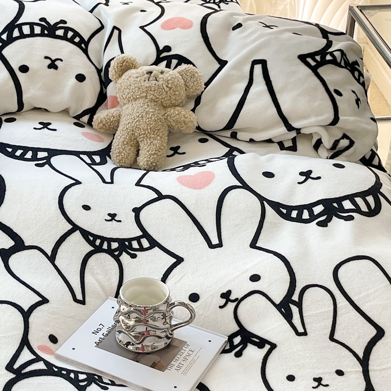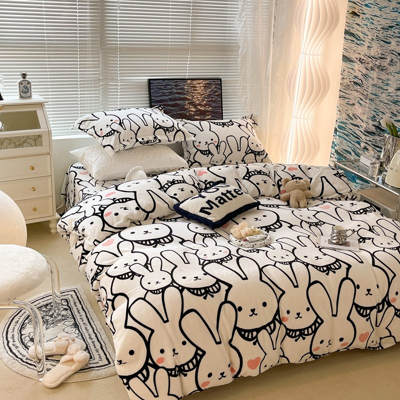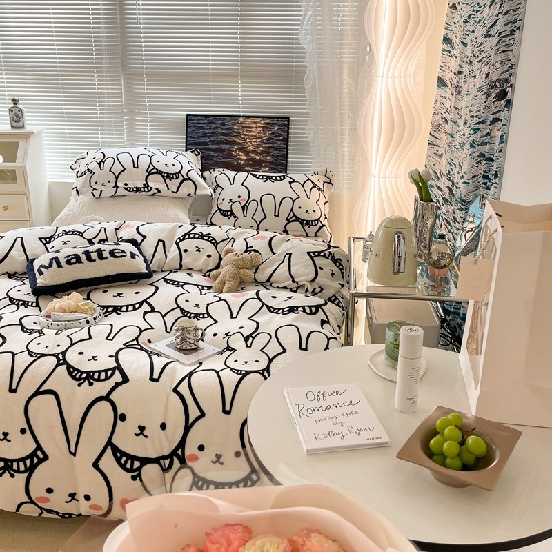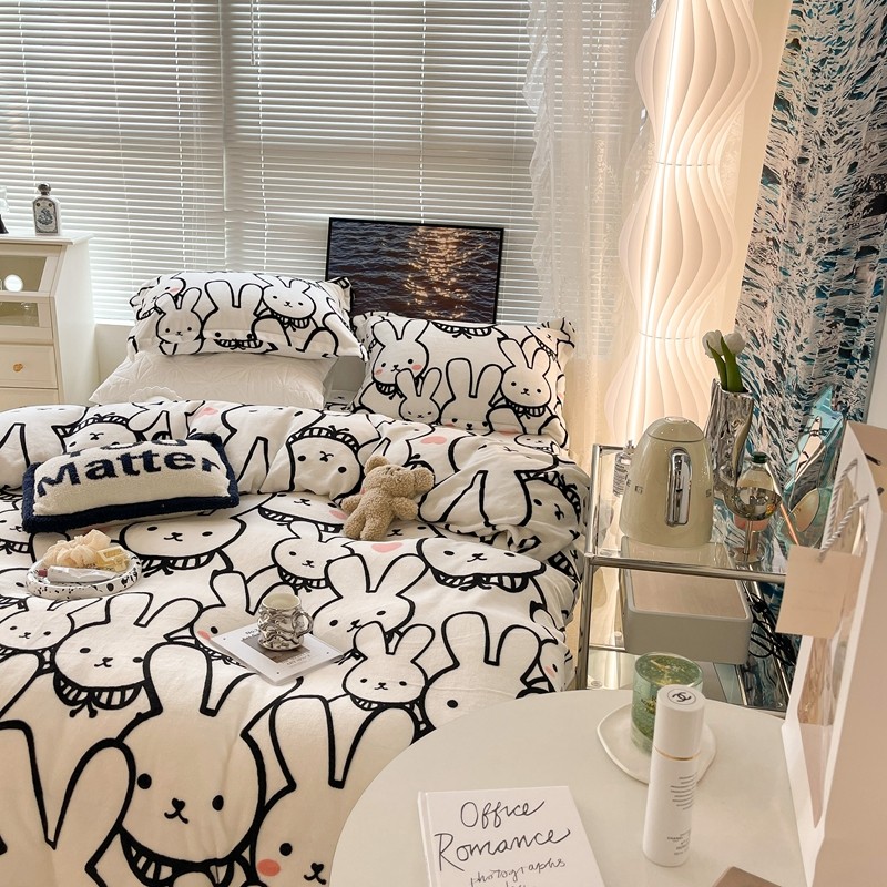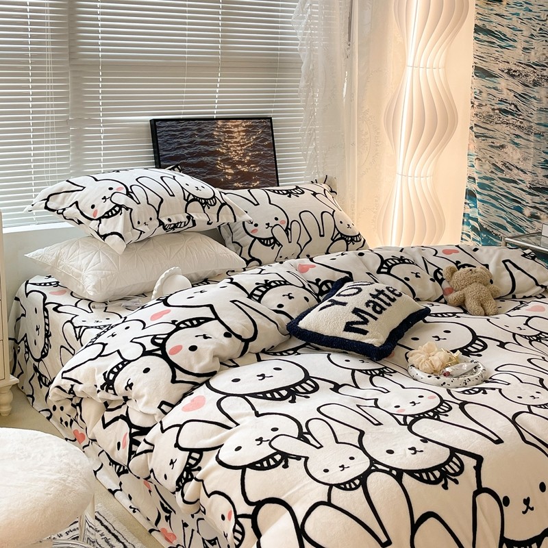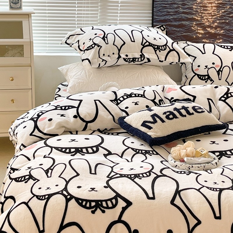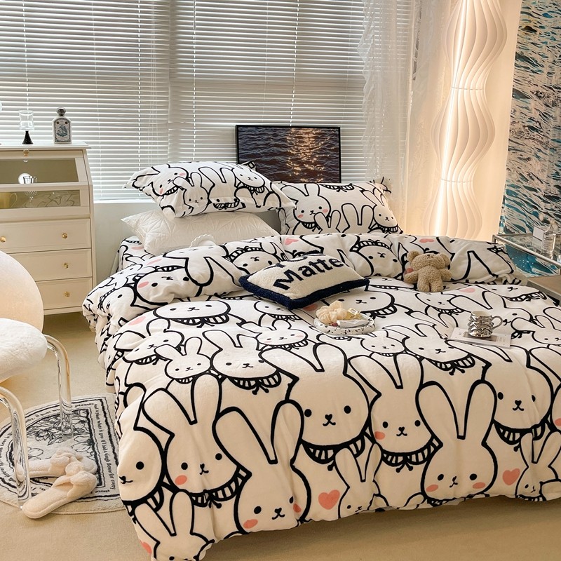昔可家纺 2021新款牛奶绒四件套-一批 简笔兔兔