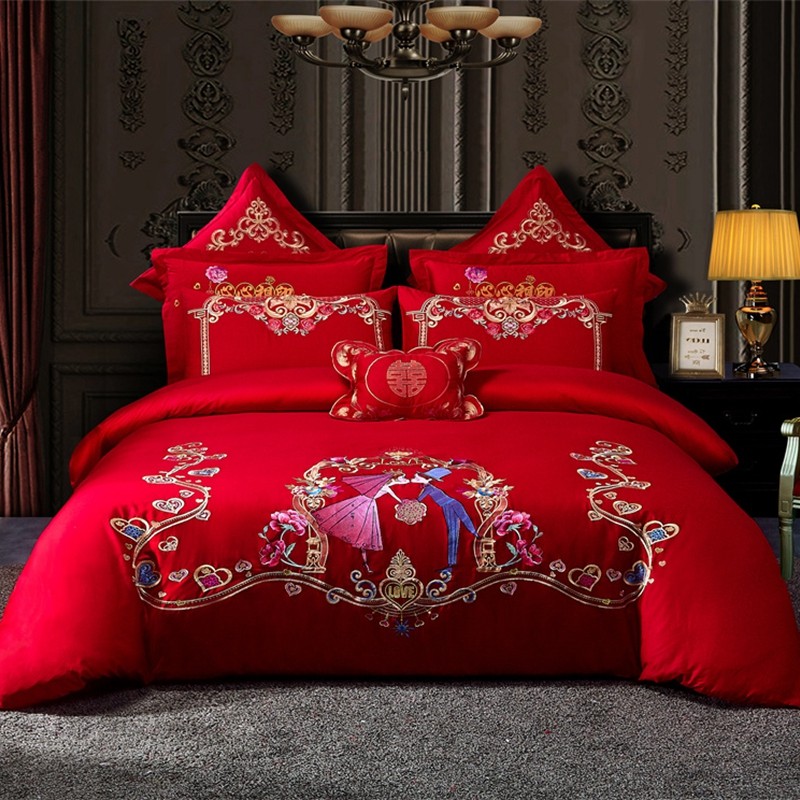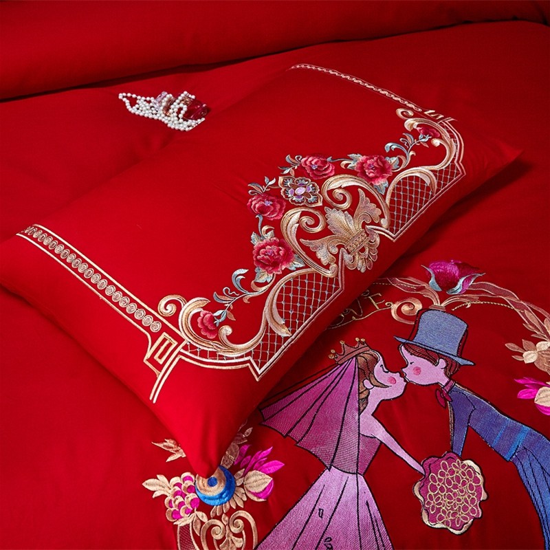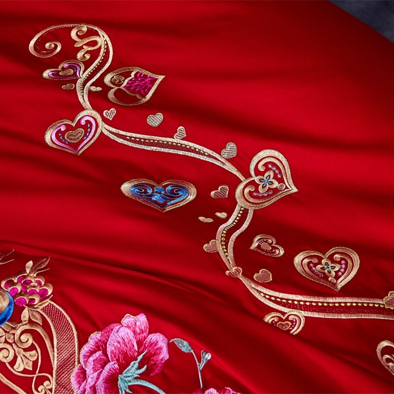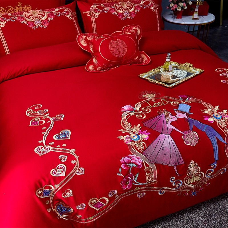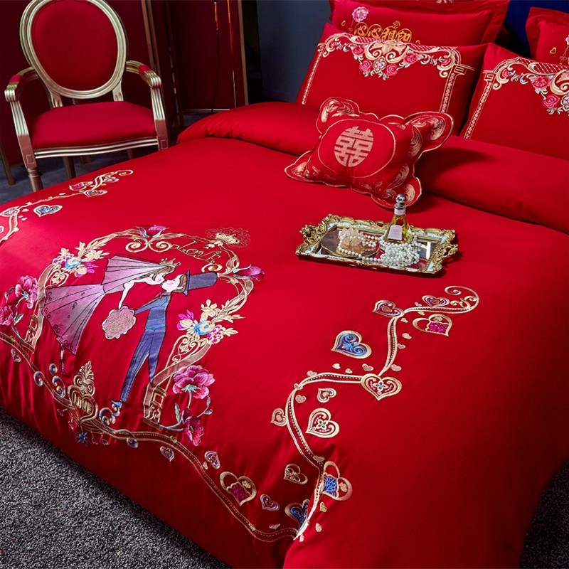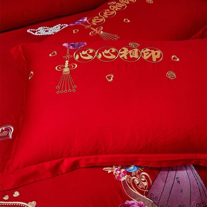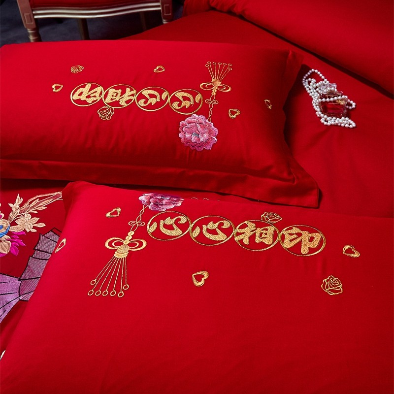 当前位置: 91家纺网 > 商品网购 > 床品套件 > 四件套 > 全棉普通四件套 > 布乐意 2025新款全棉绣花大红婚庆四件套多件套直播爱在一起