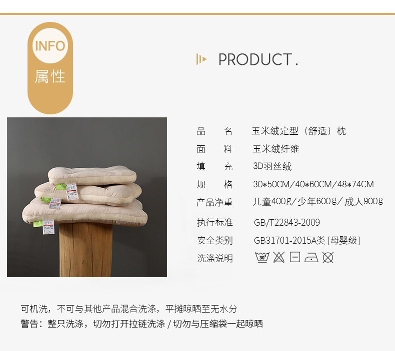 商品名称:加厚玉米绒面料酒店羽丝绒枕头助眠简约日式成人护颈定型单人枕芯
