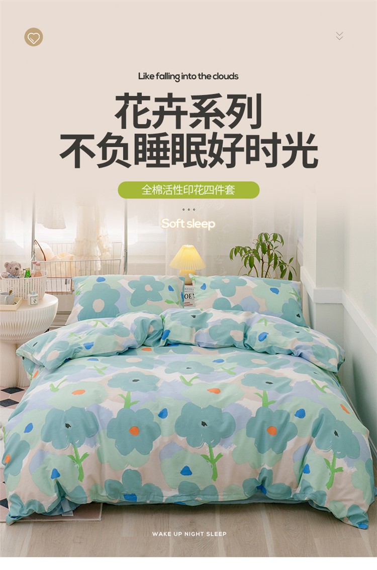 窝米 2022新款全棉印花活性四件套花卉系列 绿藤