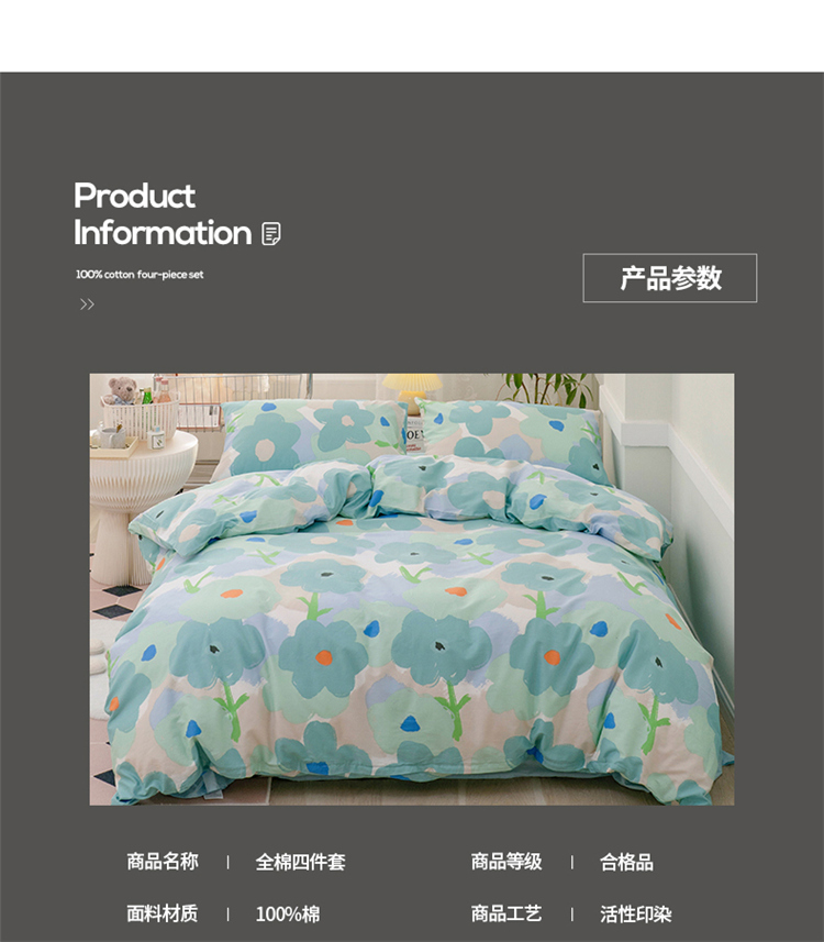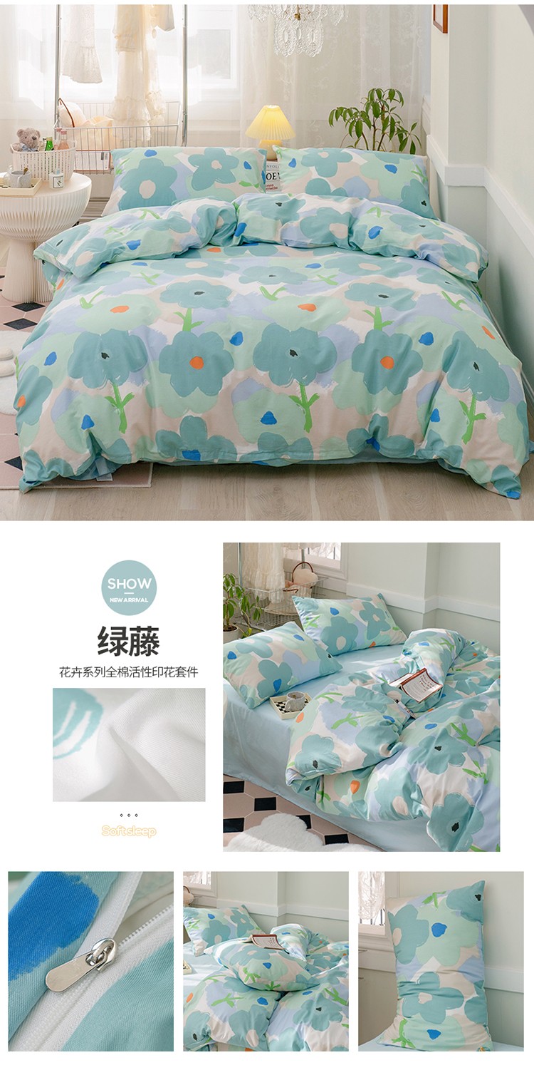 商品名称:窝米 2022新款全棉印花活性四件套花卉系列 绿藤