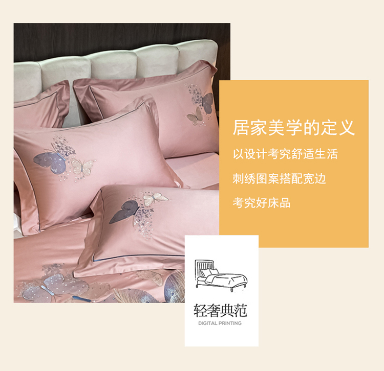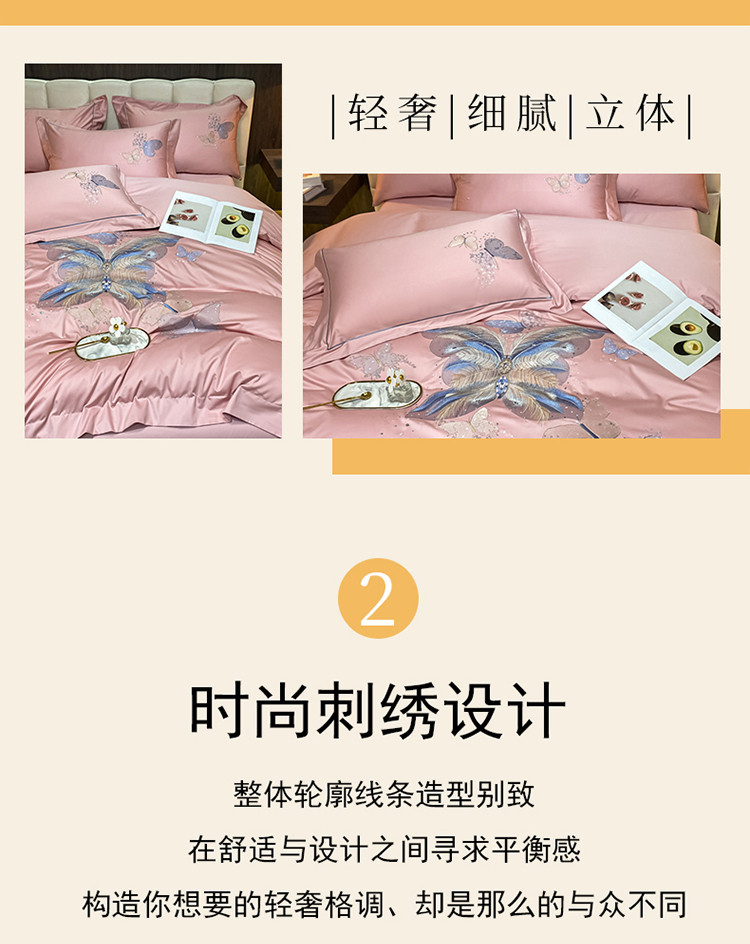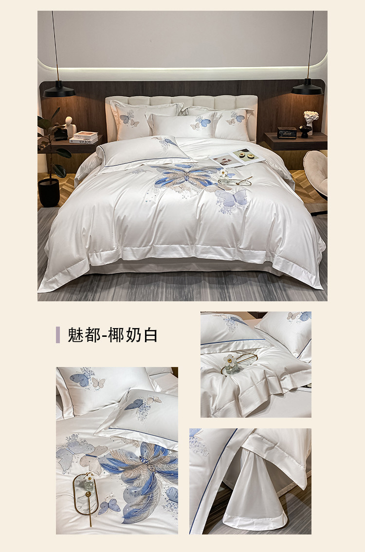 商品名称:总魅都2新款100支阿克苏长绒棉刺绣轻奢风四件套 彩蝶