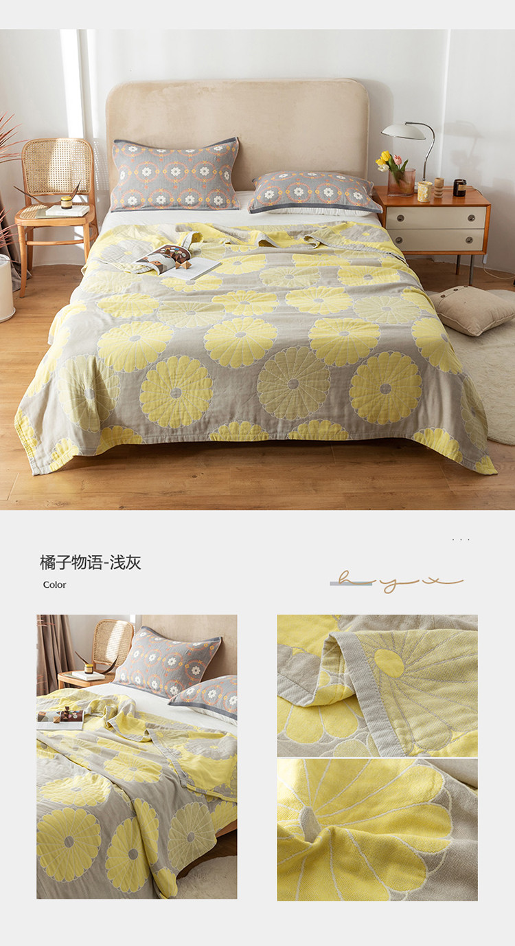 商品名称:朴尔家纺 2022新款四层韩版碎花风全棉纱布毛巾被 橘子物语-浅灰