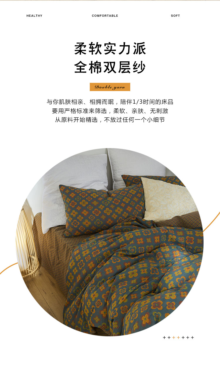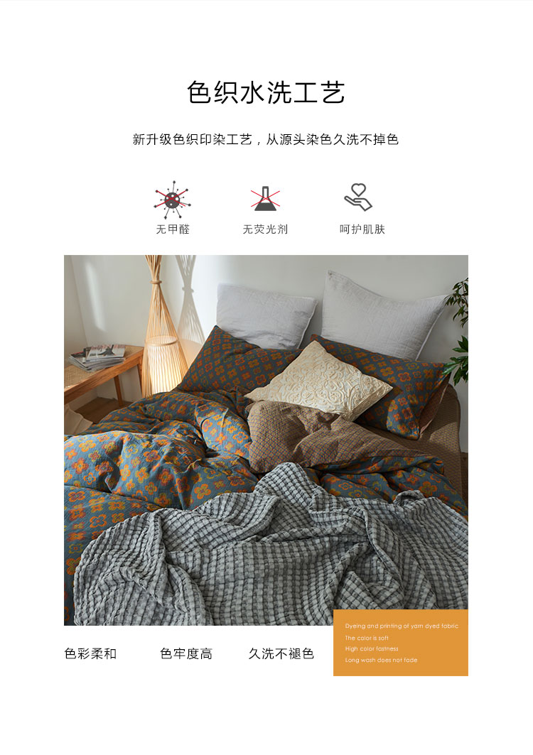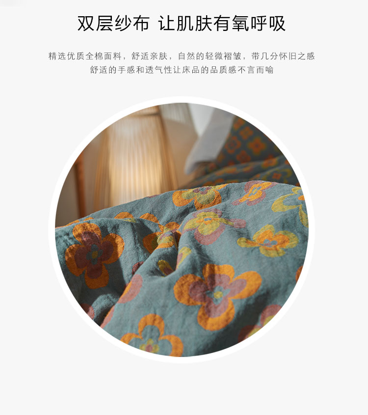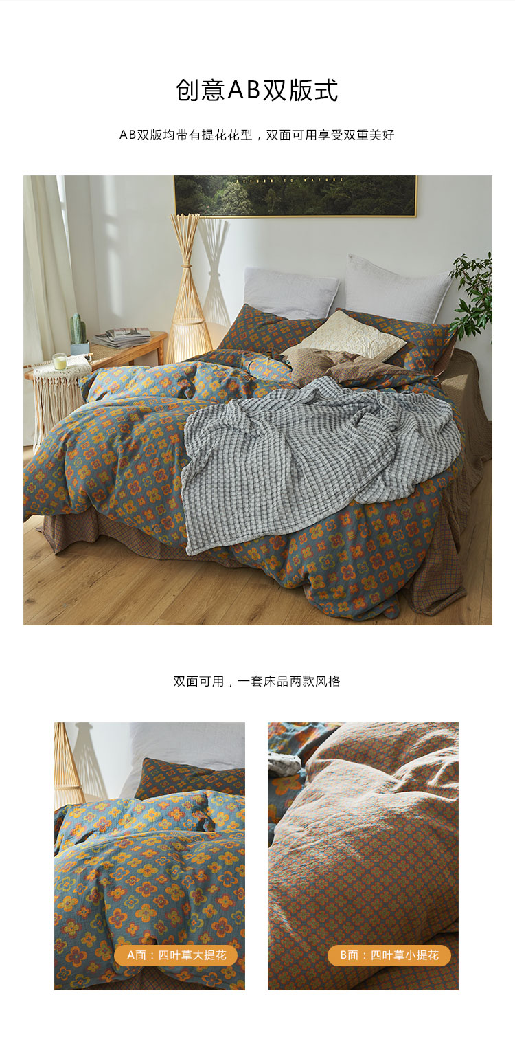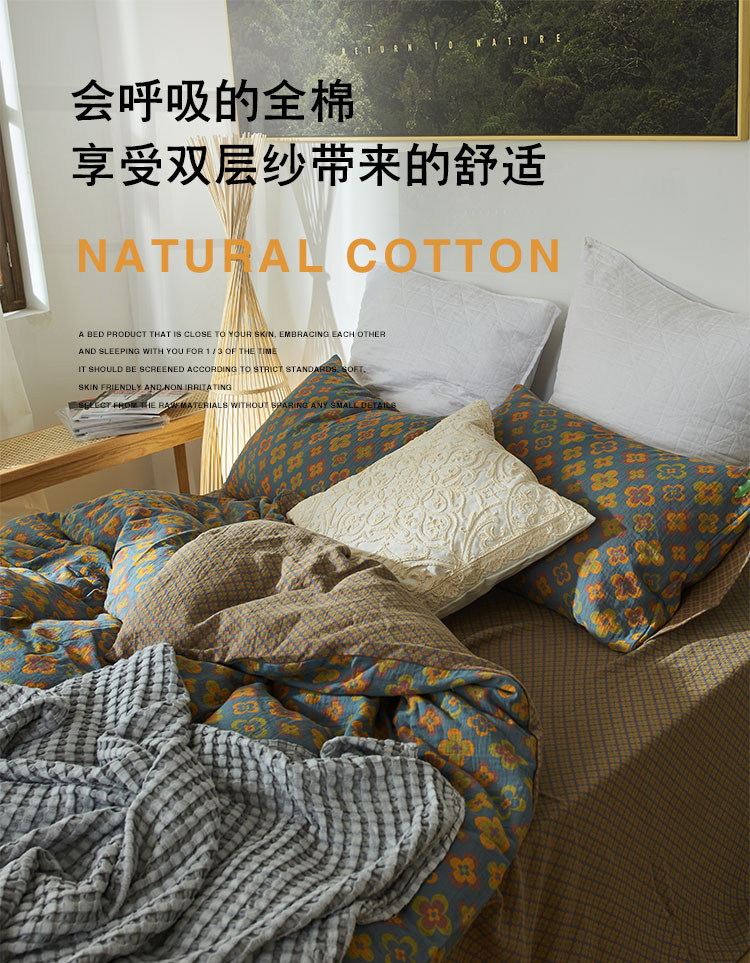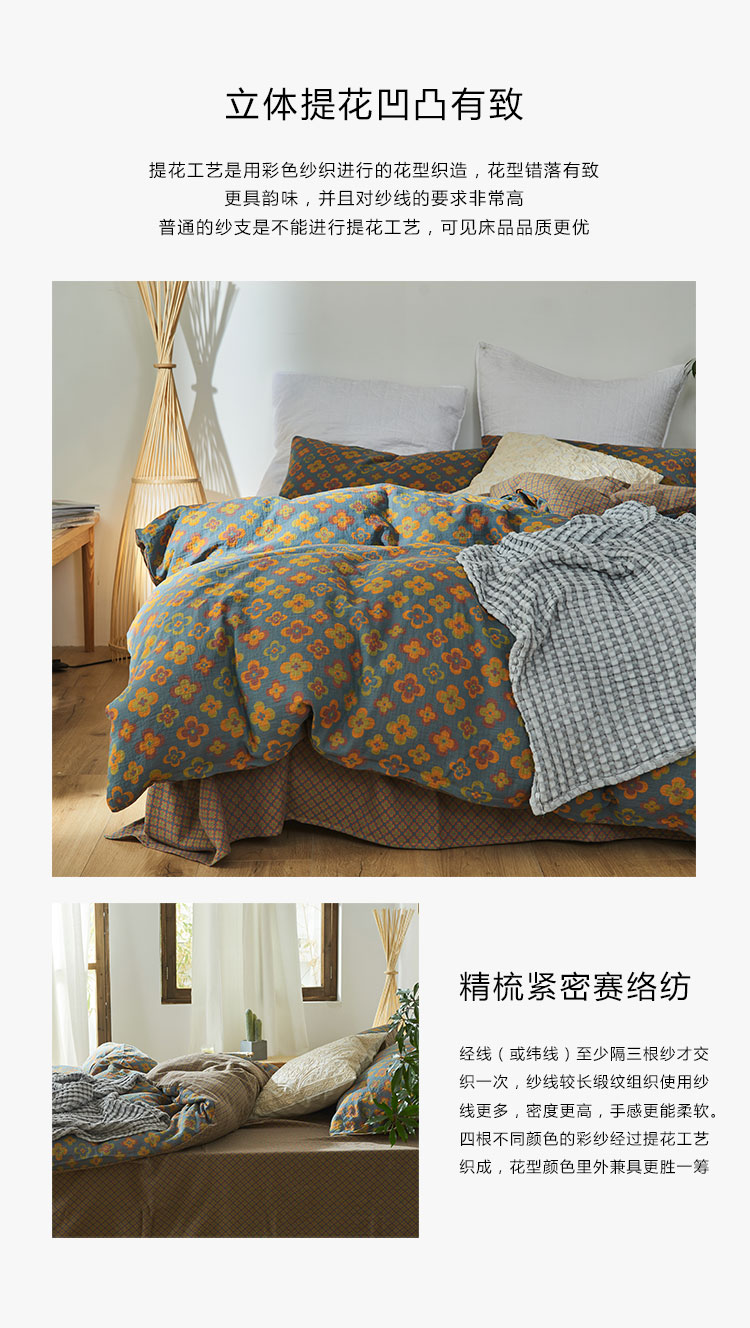 2022新款色织提花全棉双层纱四件套 春田花花-蓝