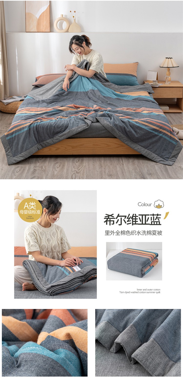总 鸣升全棉色织水洗棉花水洗棉夏被四件套纯棉空调被夏凉被