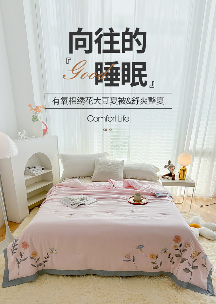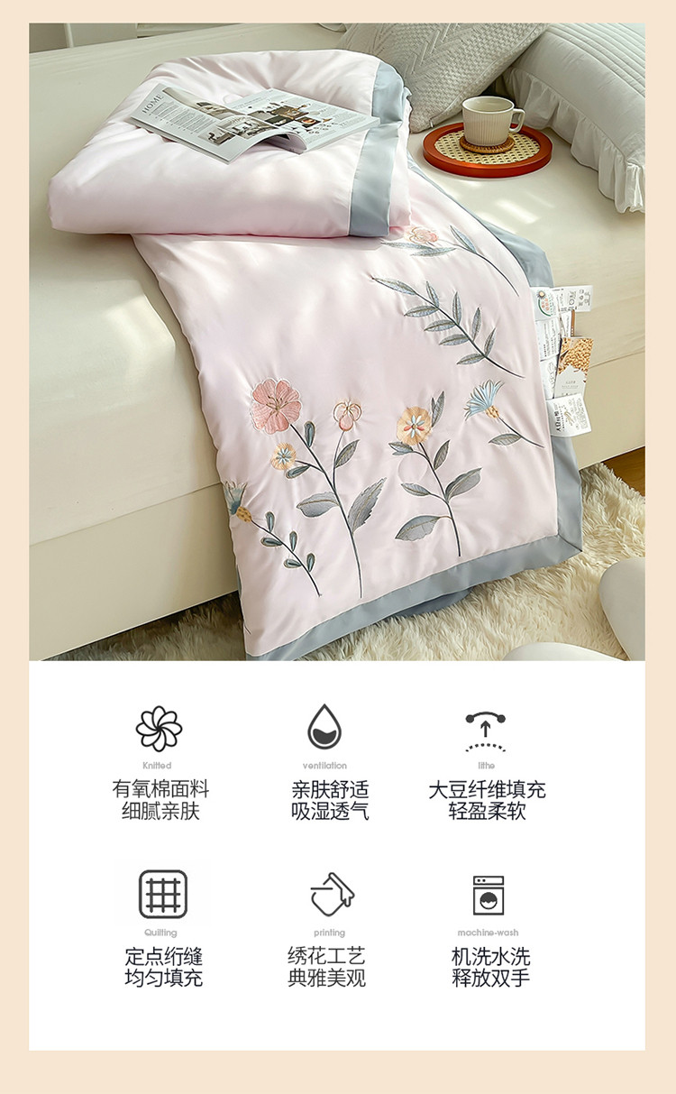 澳洲羽 水氧棉刺绣拼角大豆夏凉被直播爆款空调被子 向阳花-粉