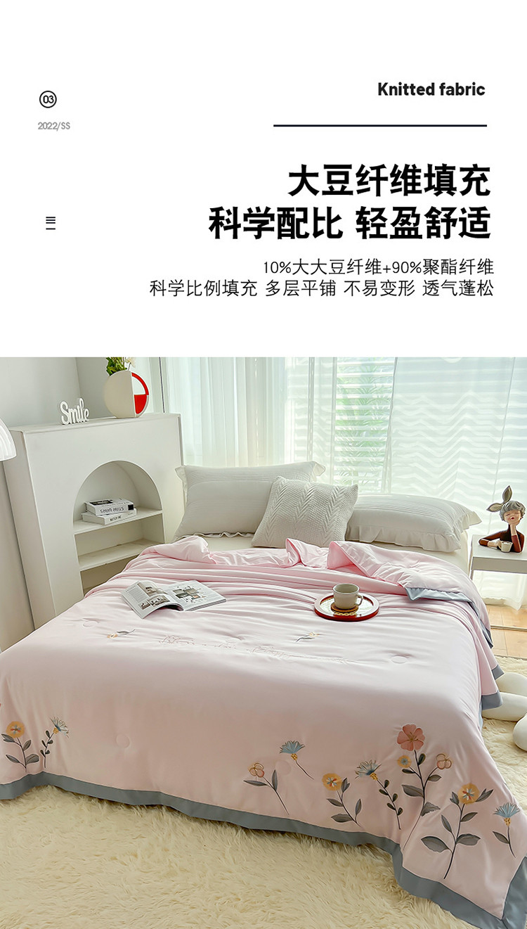 商品名称:澳洲羽 水氧棉刺绣拼角大豆夏凉被直播爆款空调被子 向阳花-粉