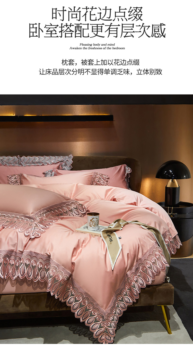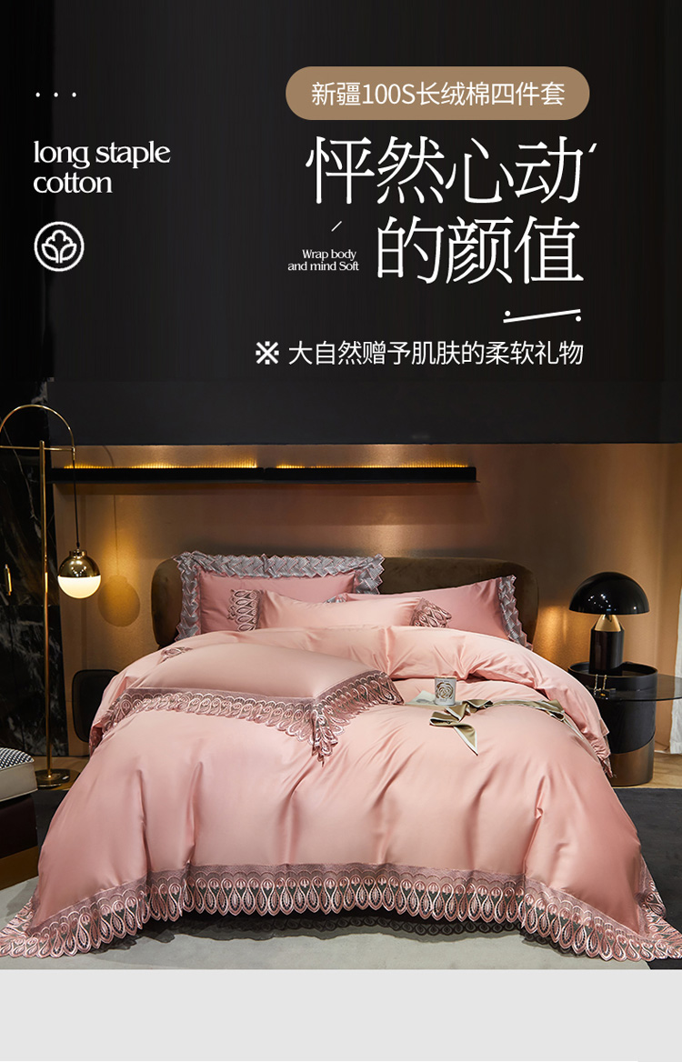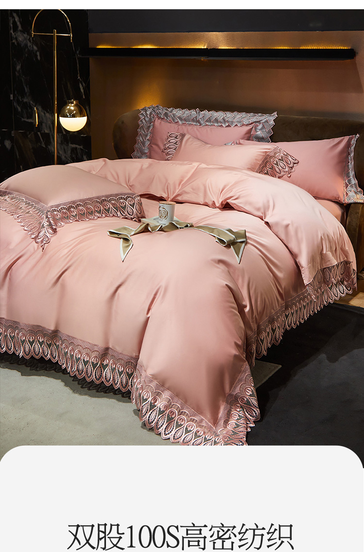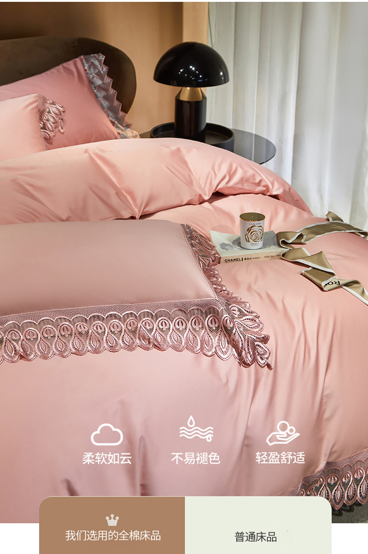商品名称:2023名品优仓直播爆款奥黛丽系列100s长绒棉四件套 奥黛丽 粉玉