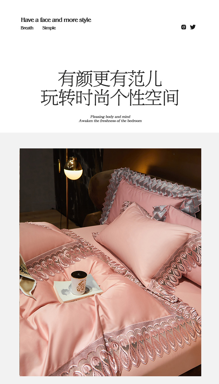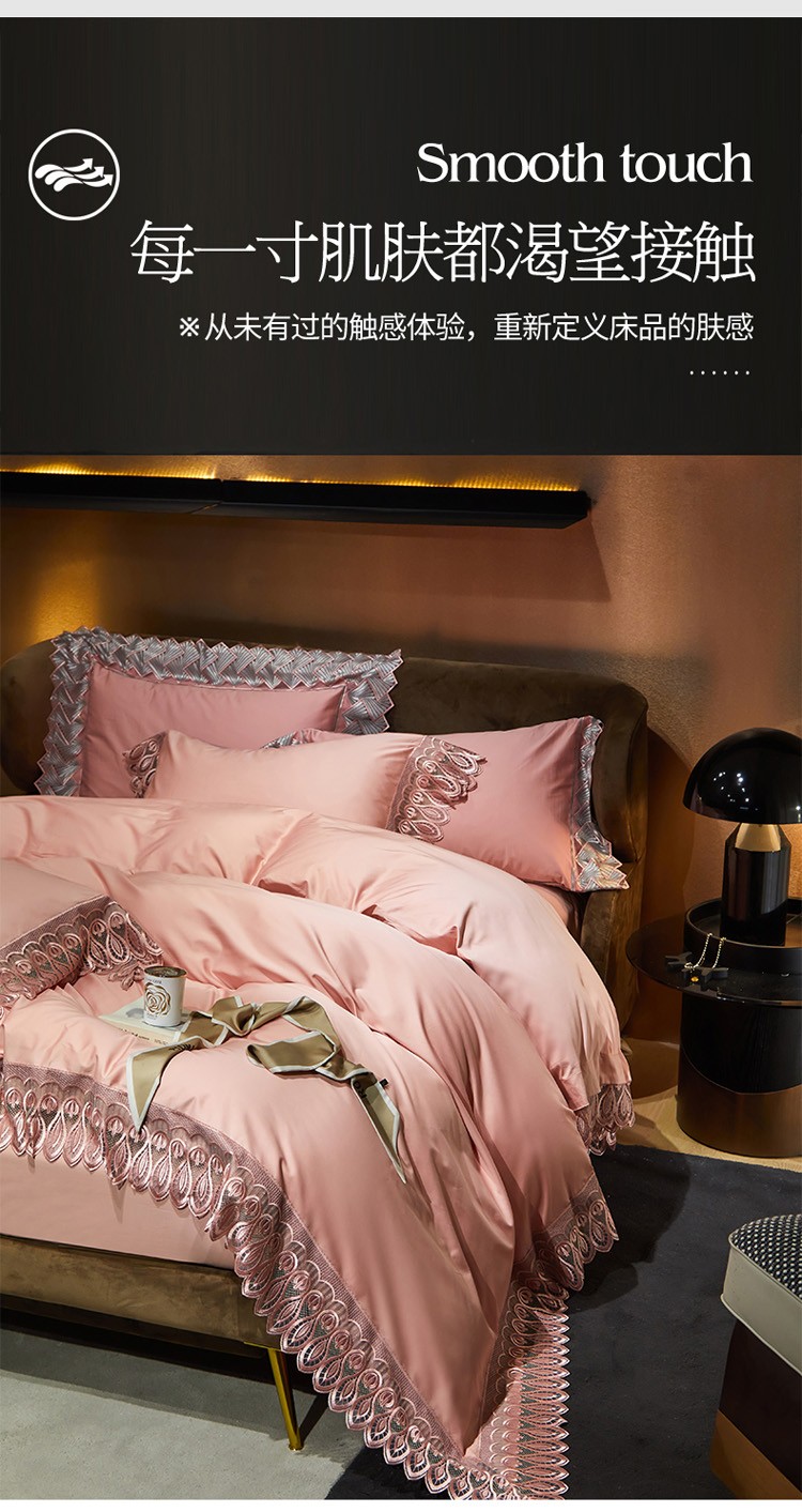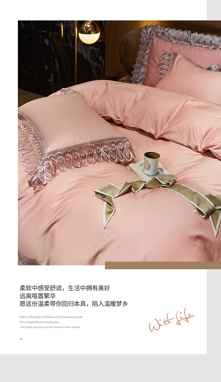 商品名称:2023名品优仓直播爆款奥黛丽系列100s长绒棉四件套 奥黛丽 粉玉