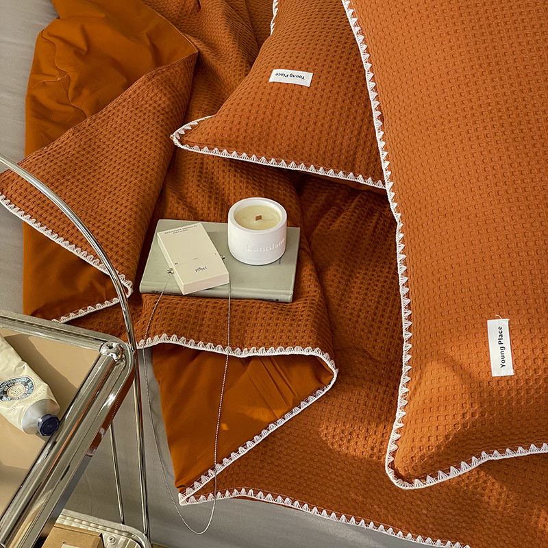 (总)洋铭区 2022新款全棉华夫格四件套,丛林绿,焦糖色,麦苗绿,米杏色,蜜桃粉,牛仔蓝,香雪米,岩石灰