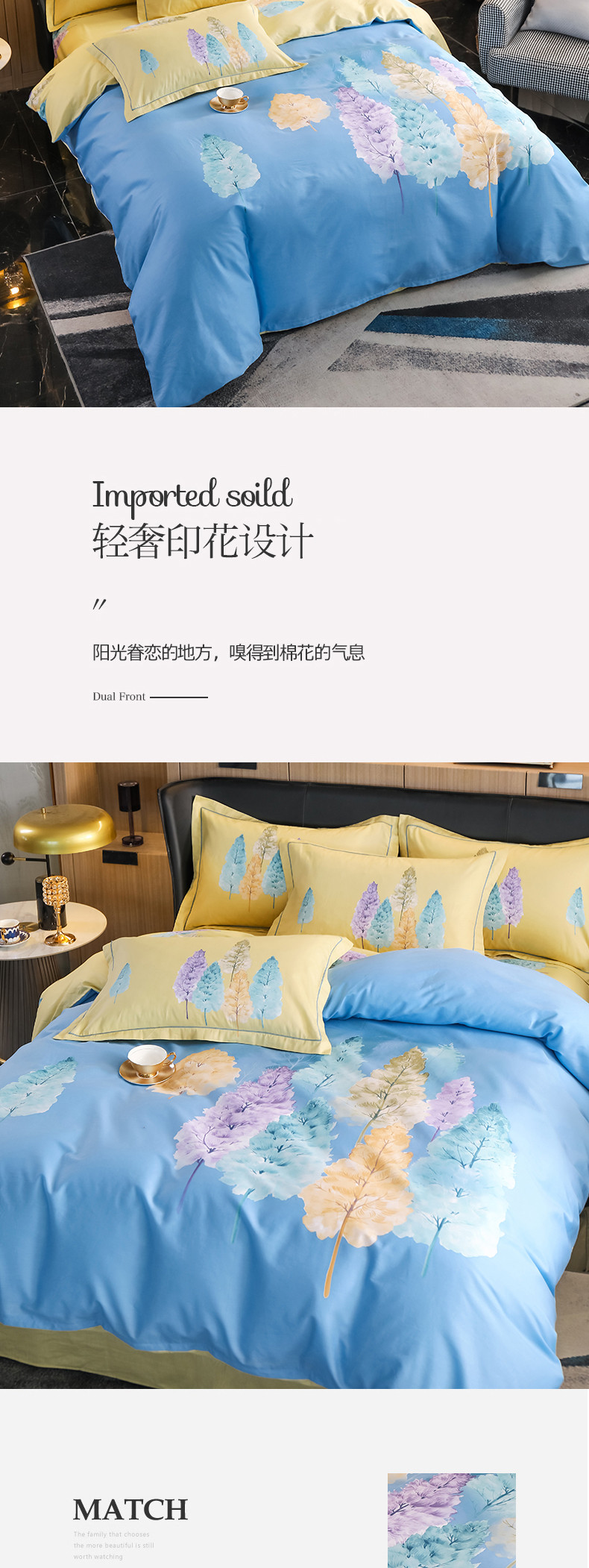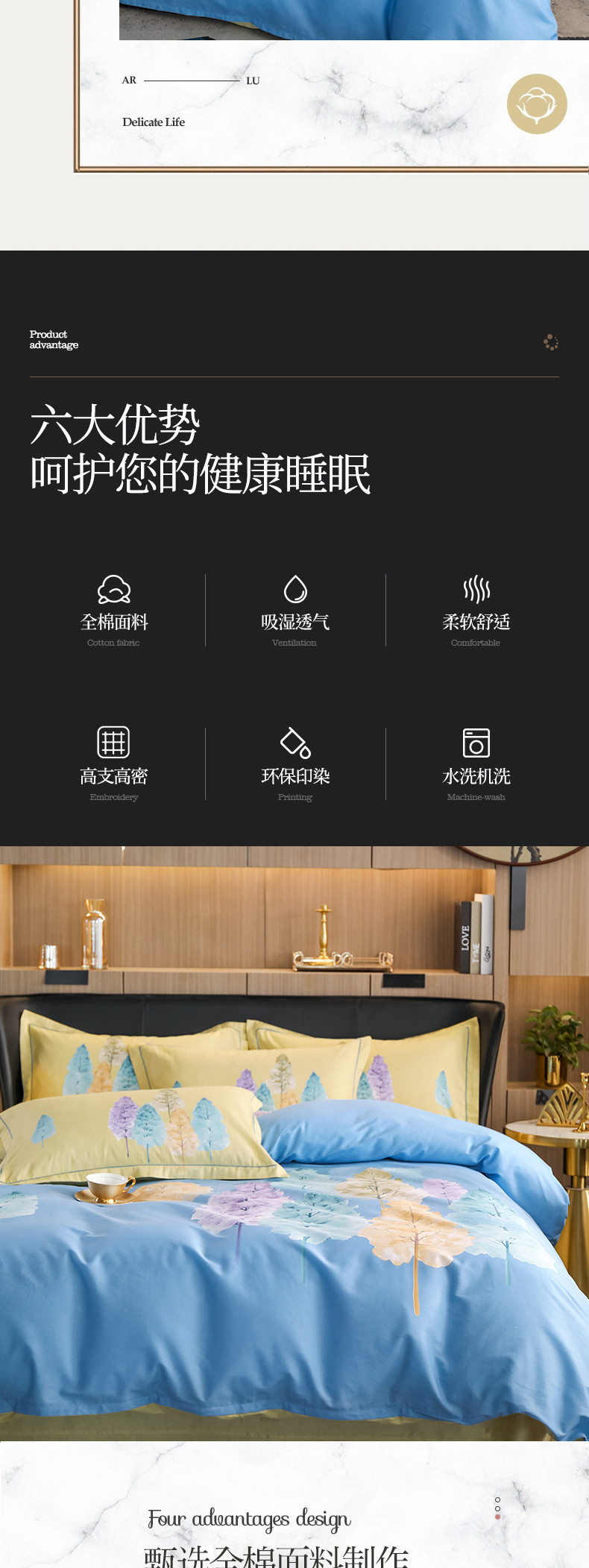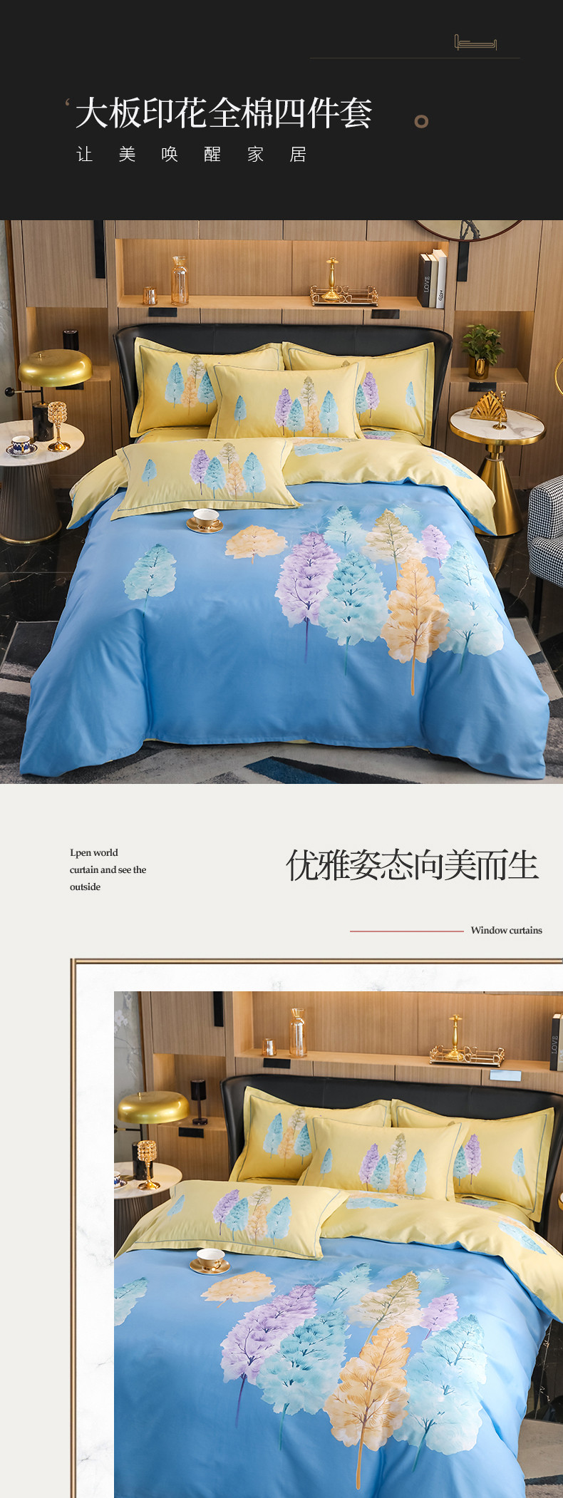 商品名称:雲归梦 2022新款全棉大版四件套 花卉花型 夏木之梦-蓝