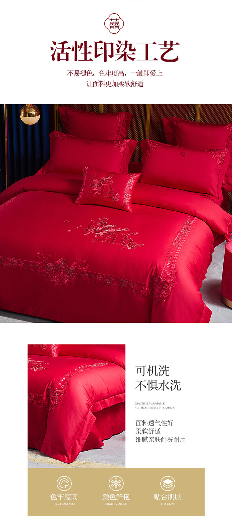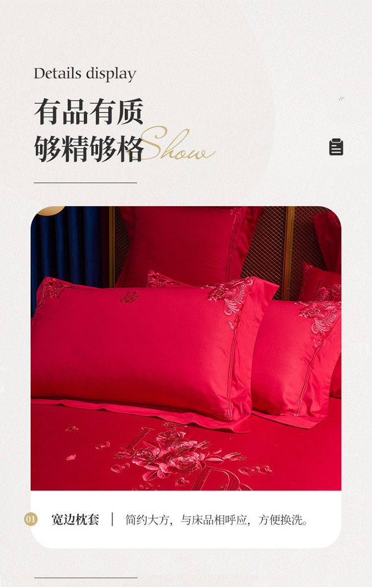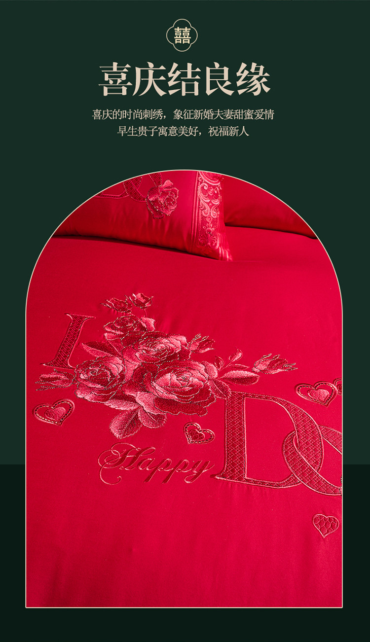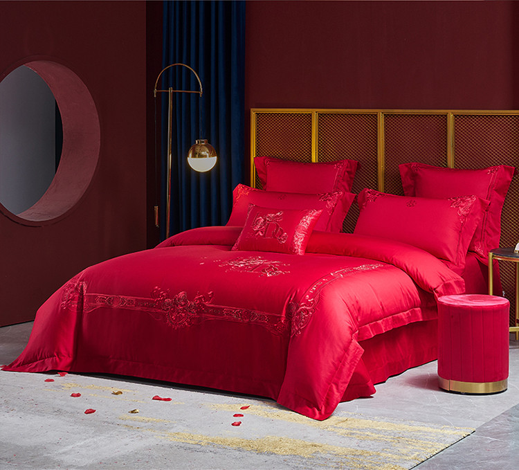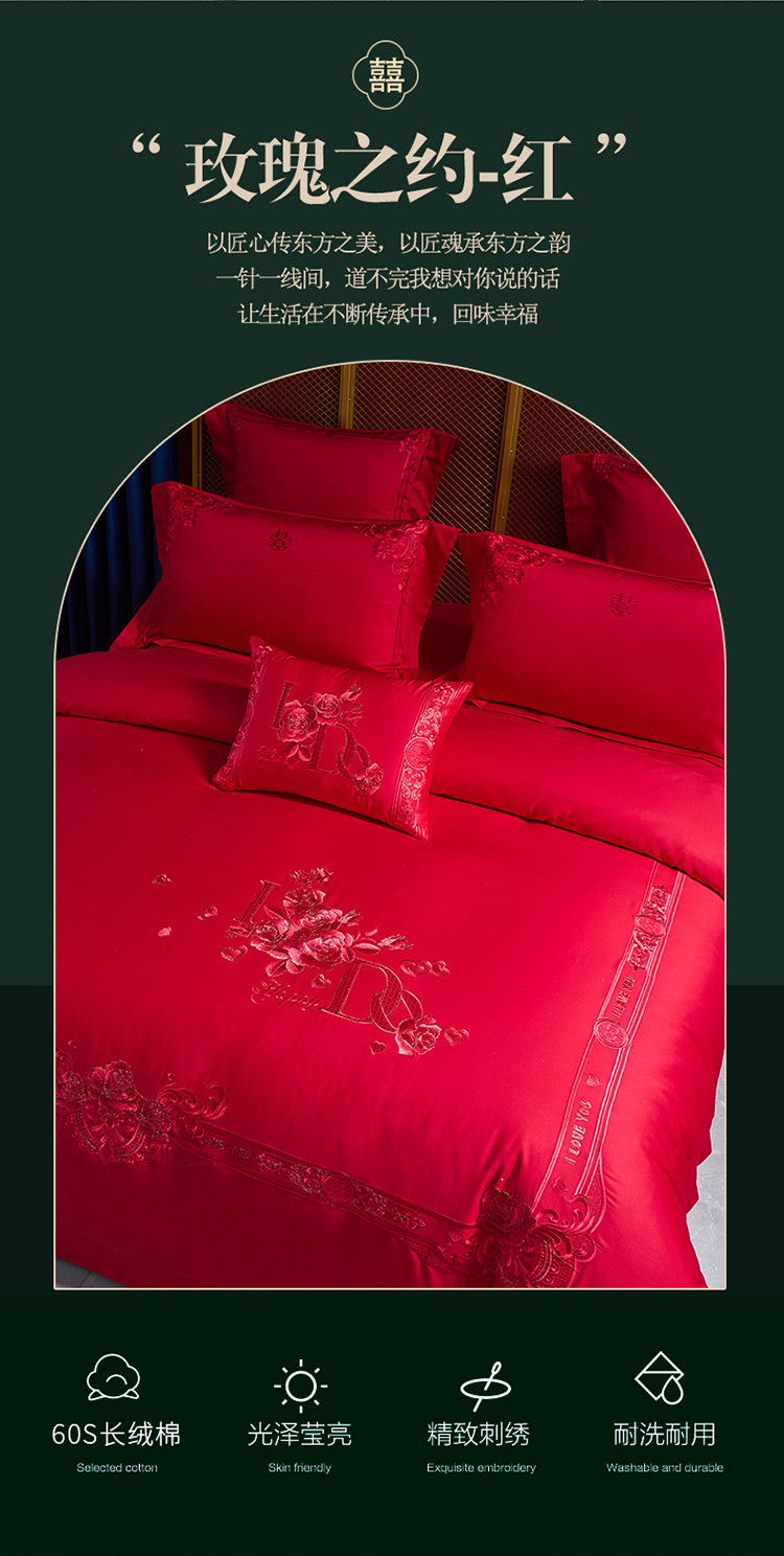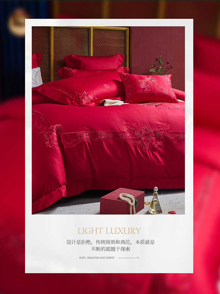 当前位置: 91家纺网 > 商品网购 > 床品套件 > 多件套 > 高大尚 2022新款60s长绒棉时尚婚庆套件-玫瑰之约红
