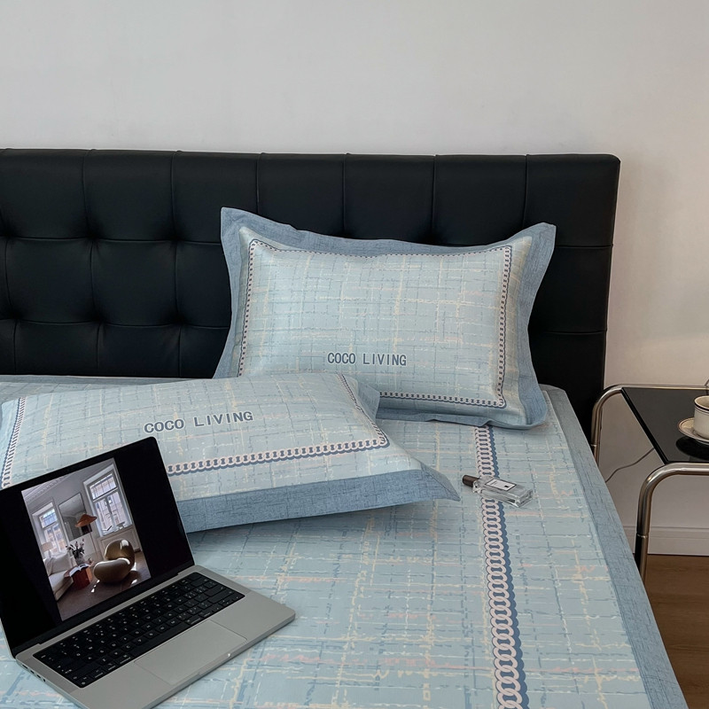 商品名称:本希 2022新款数码印花水洗冰丝席床席款-小香风轻奢系列 天空蓝