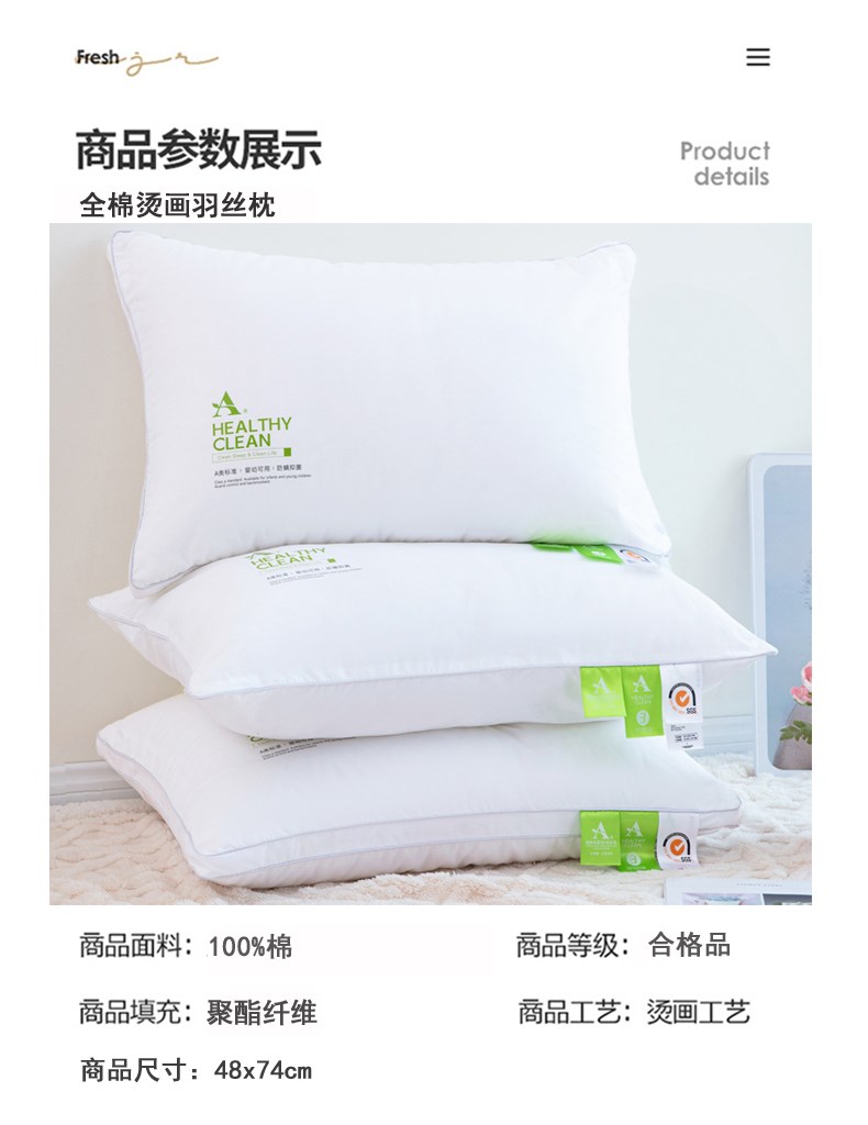 商品名称:兴丝露枕芯 全棉酒店枕 羽丝枕 烫画枕 枕芯 枕头