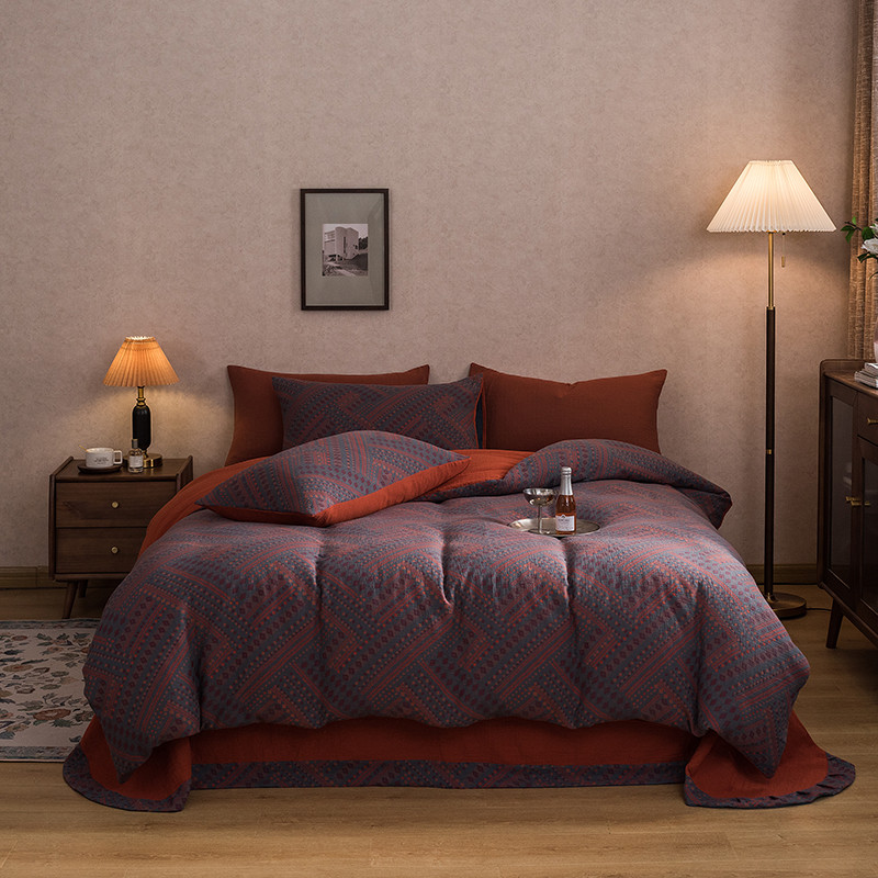 (总)黛馨 2025春夏新款全棉纯棉A类双层纱工艺款夏被夏凉被空调被四件套双花边款,白茶,半岛红茶,豆蔻,蓝风铃,梨泰院