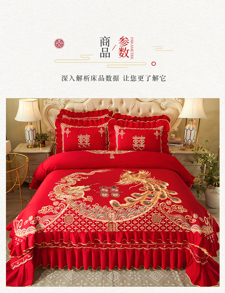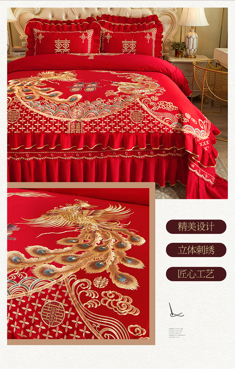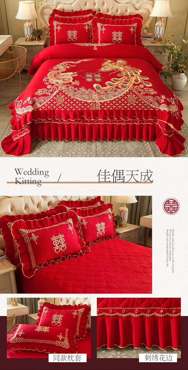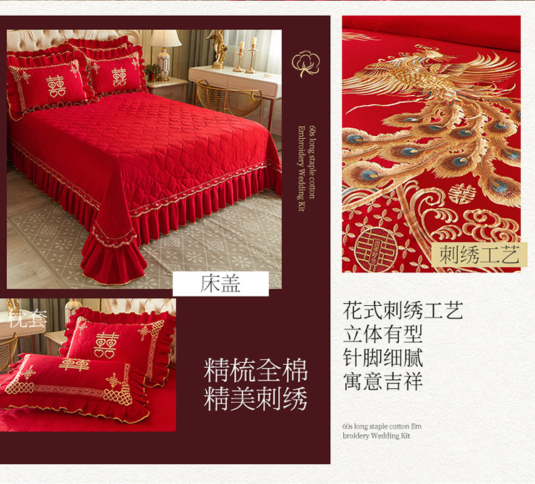 商品名称:宜凡 2022新款绣花婚庆全棉夹棉床盖款四件套 佳偶天成