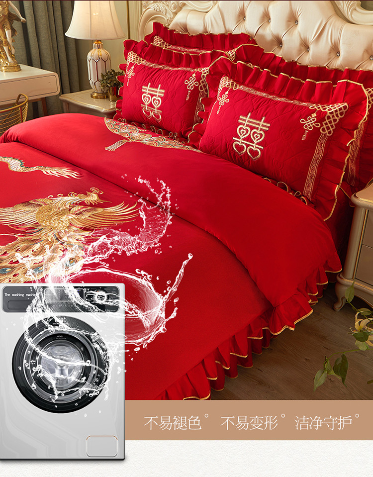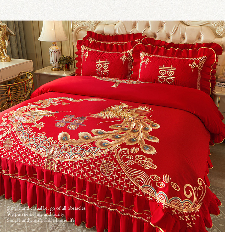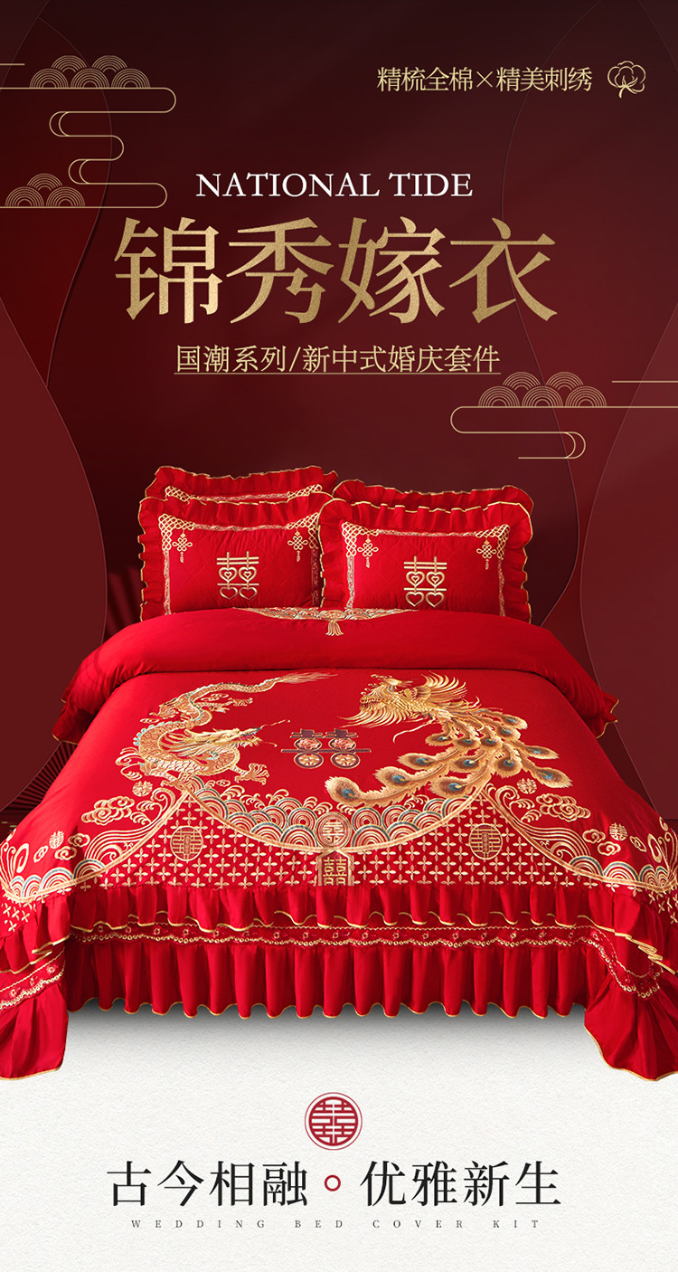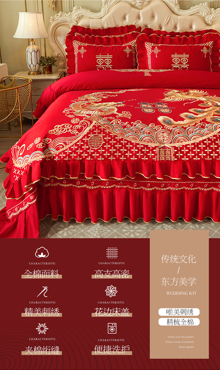 商品名称:宜凡 2022新款绣花婚庆全棉夹棉床盖款四件套 佳偶天成